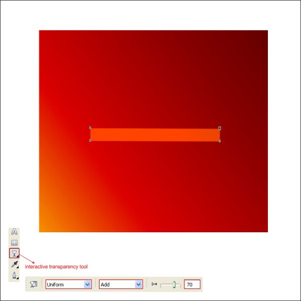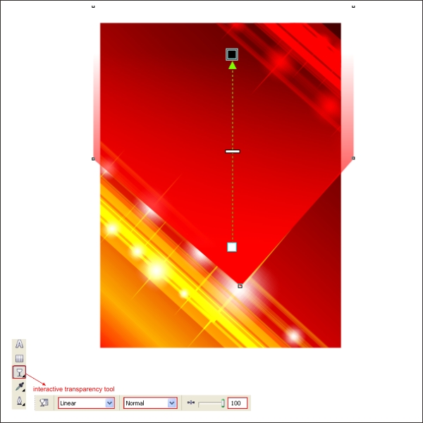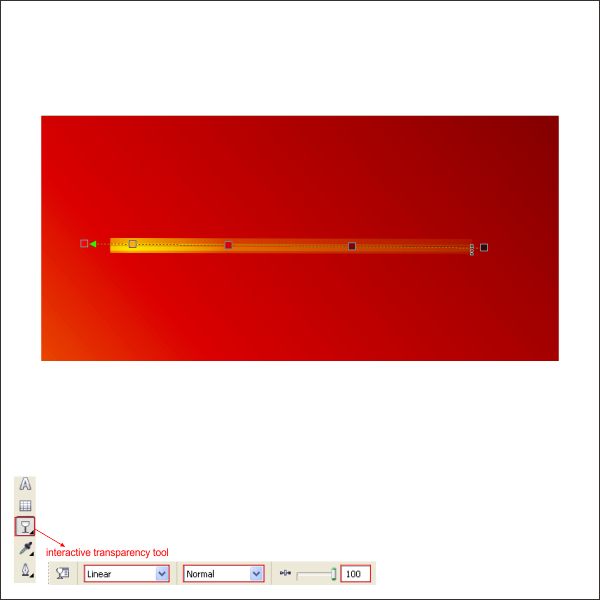 Put red color on the custom shape and go to the ” Interactive Transparency Tool “, appy the value below to create similar work.