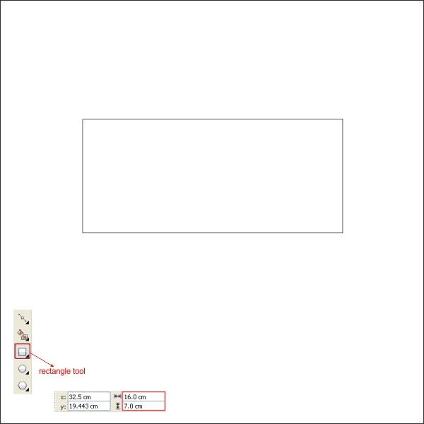 After that create a box shape using ” Rectangle Tool “, and resize it into 16 x 7 cm.