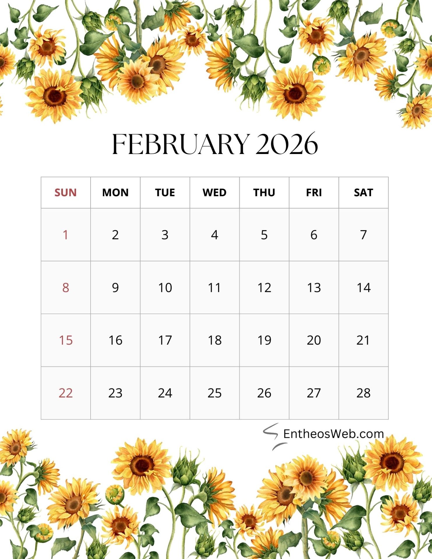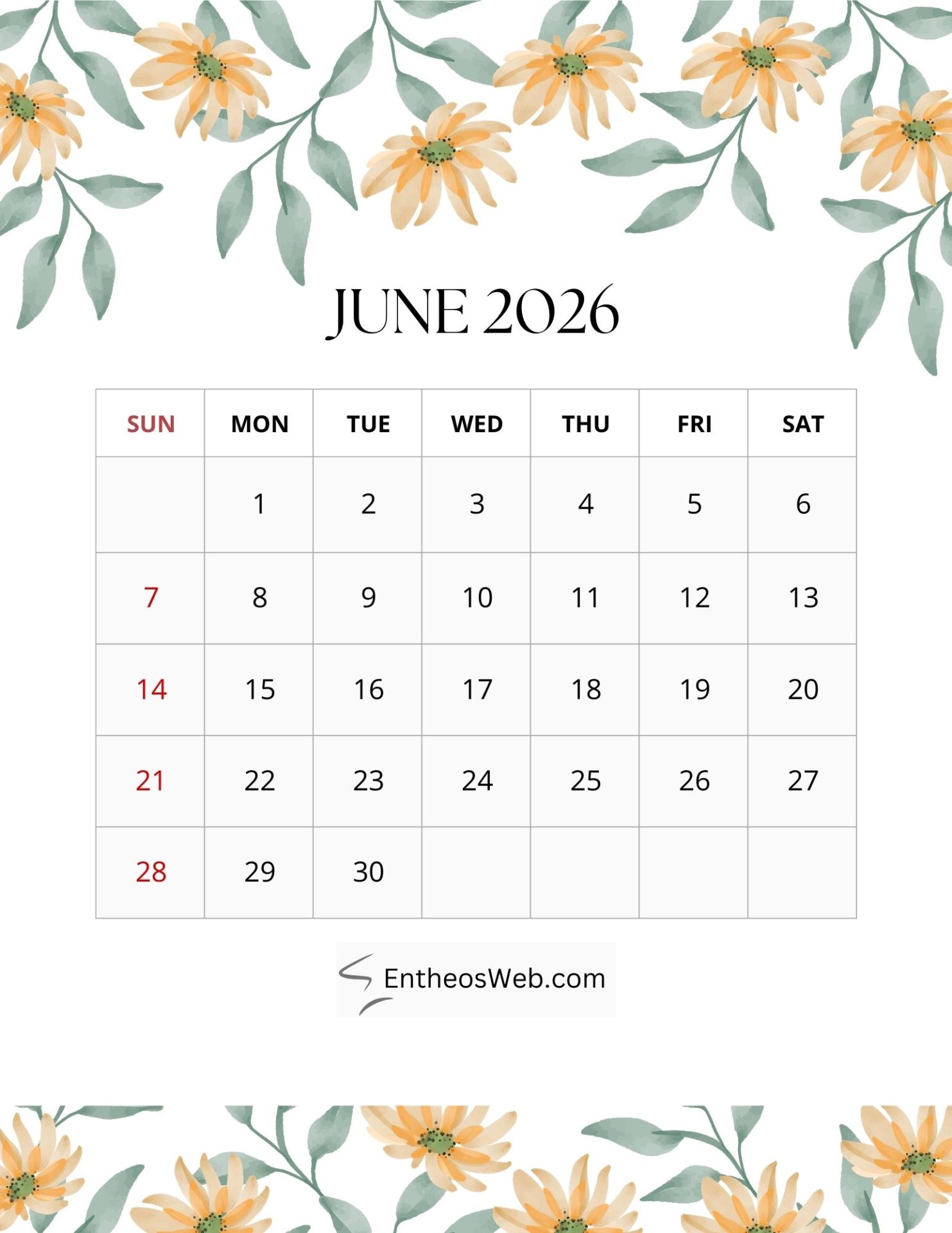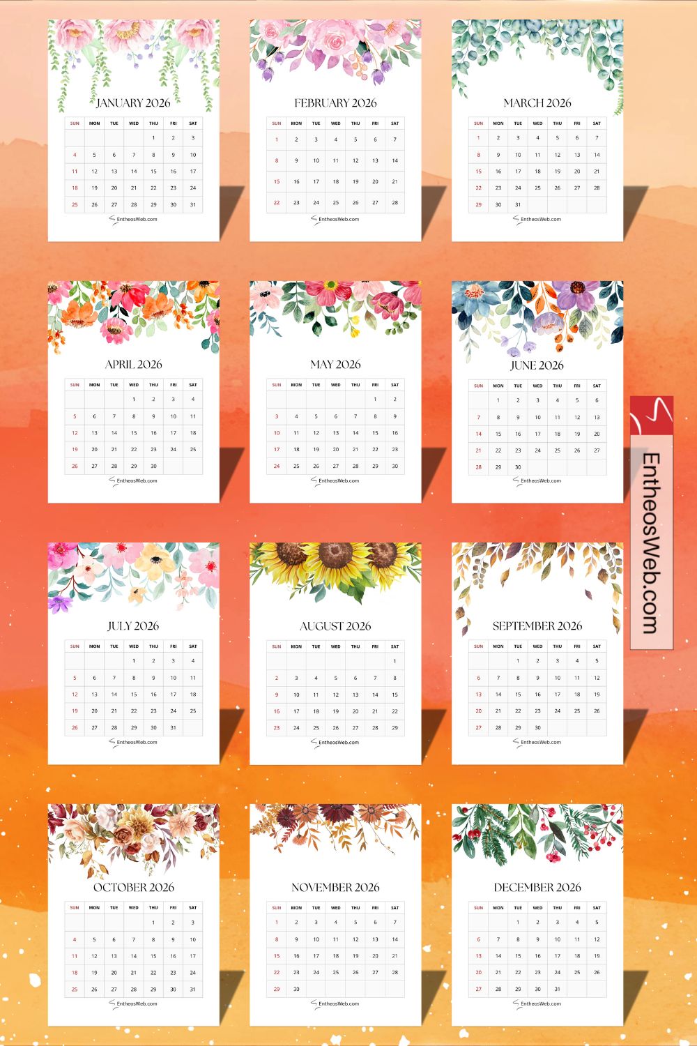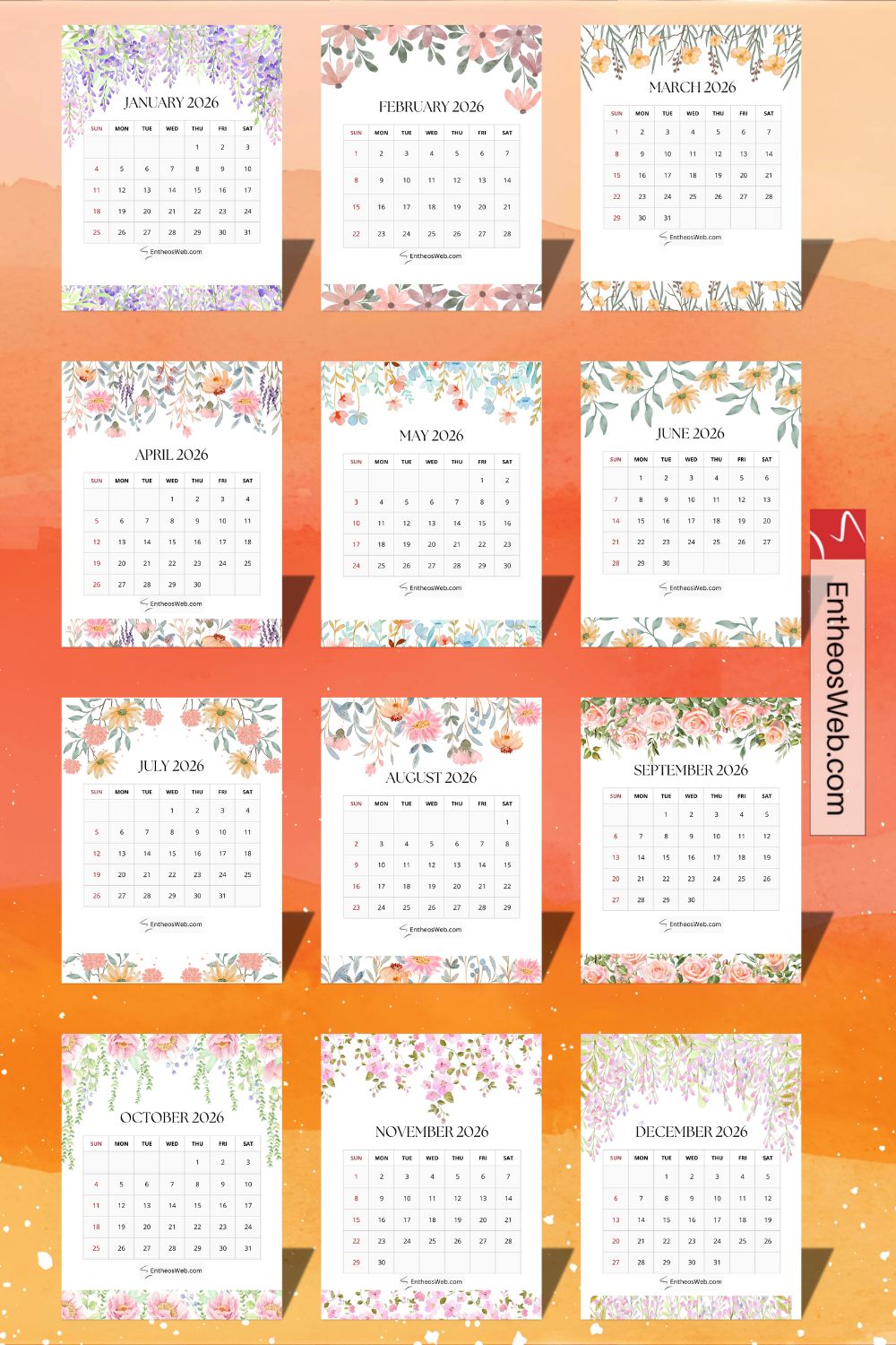 2026 Printable Calendars for each Month