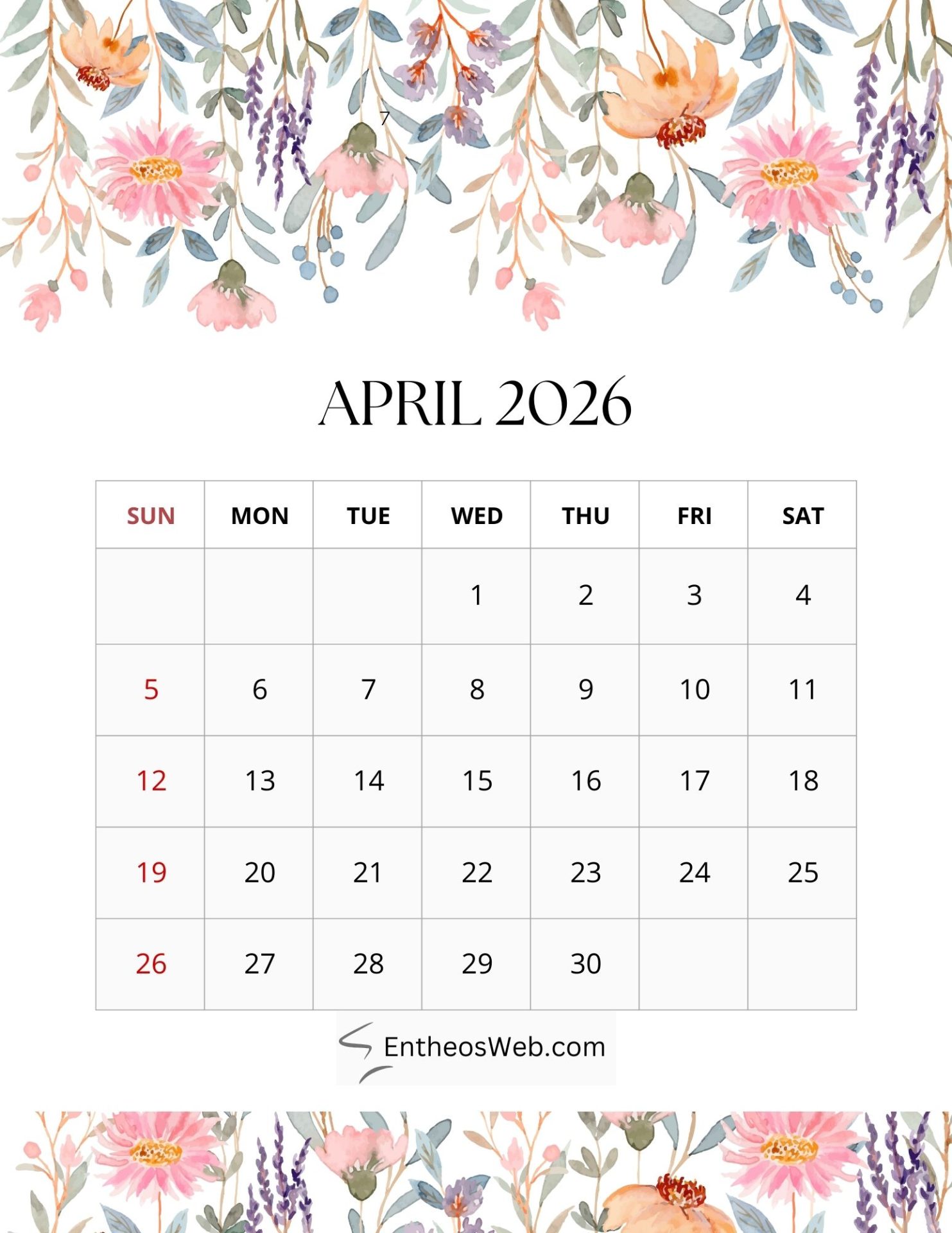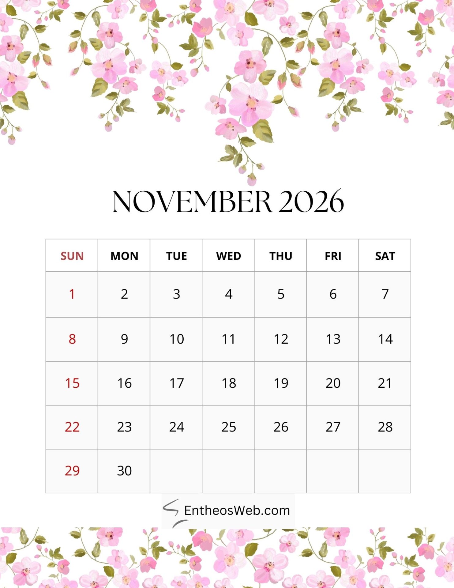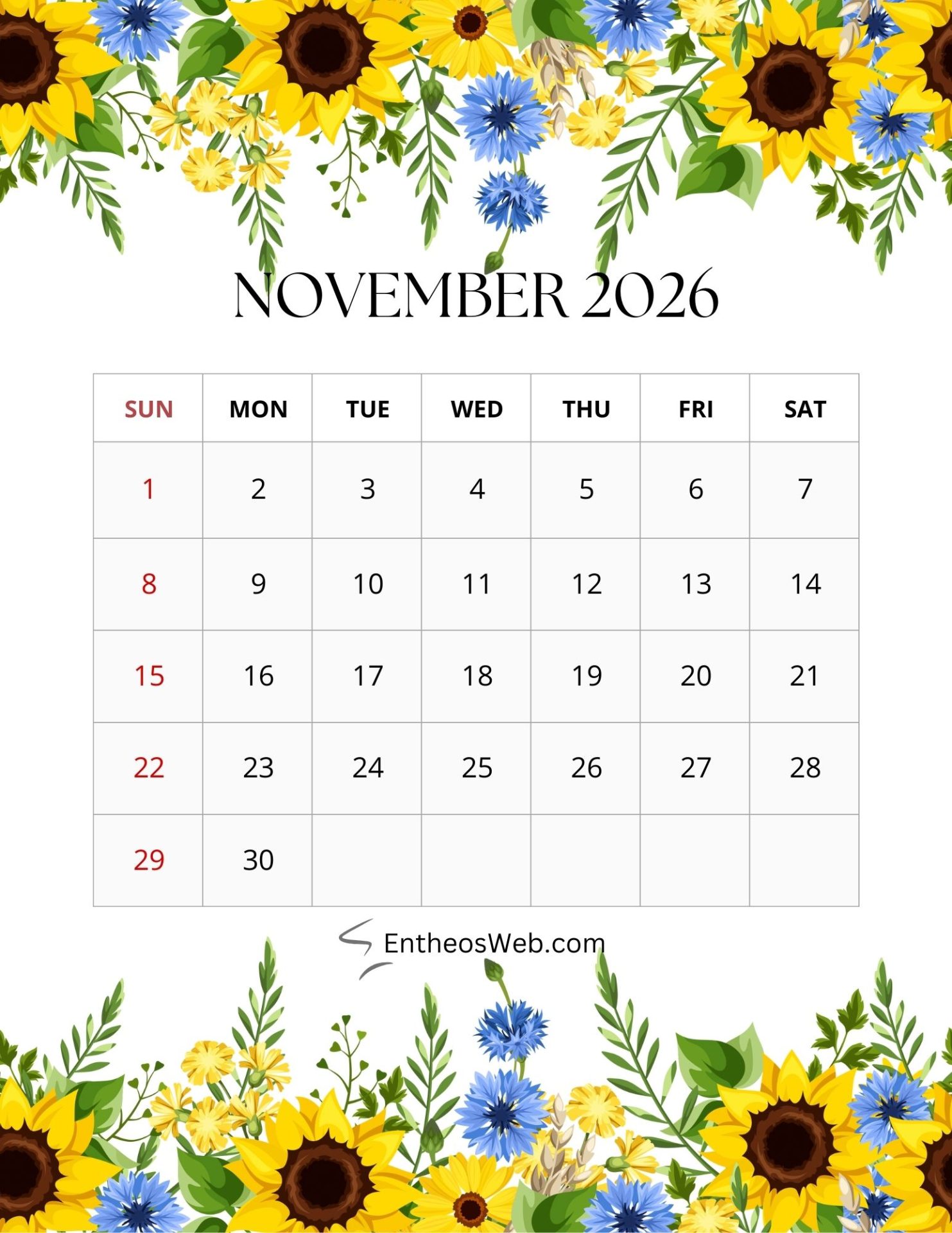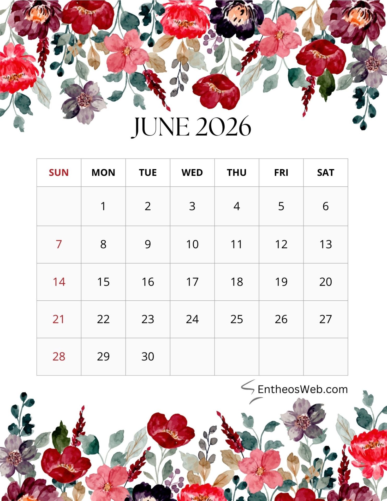 2026 Printable Calendars for each Month