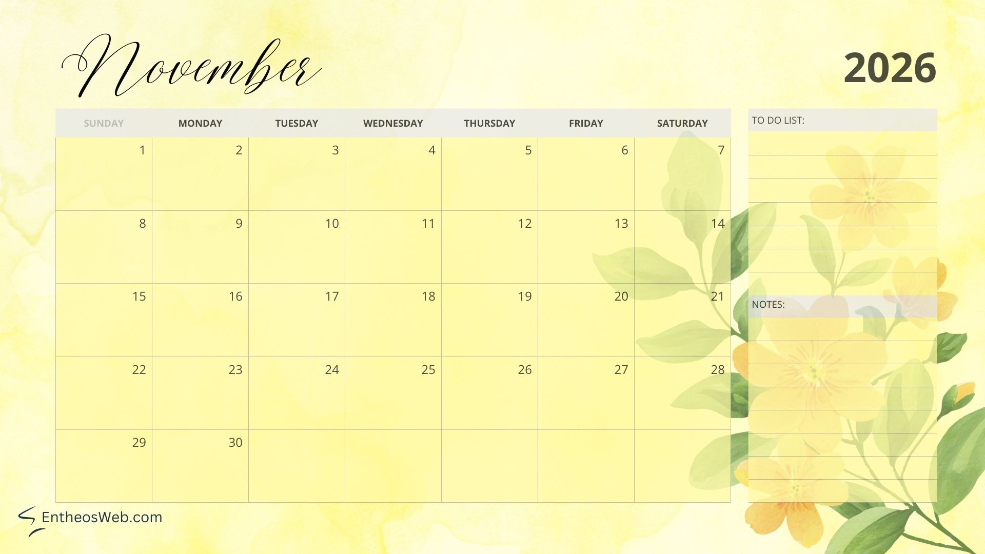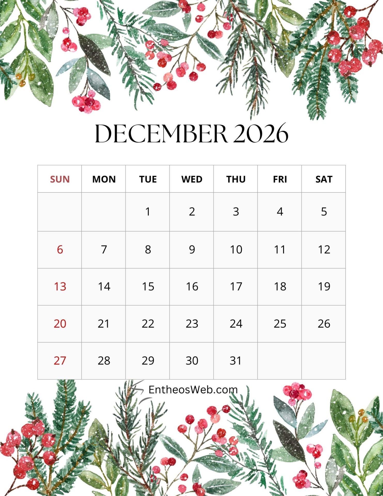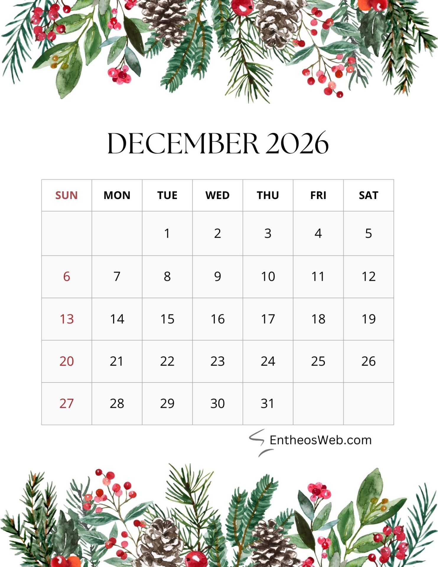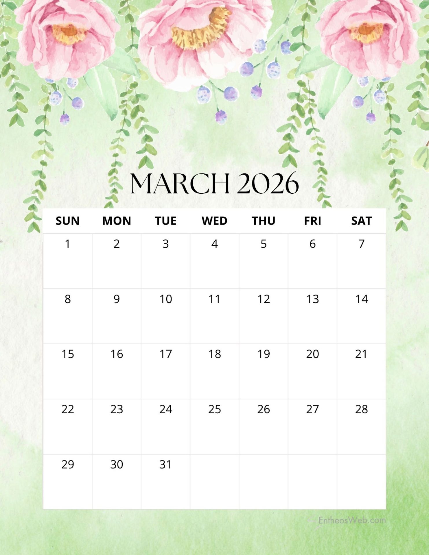 2026 Printable Calendars for each Month