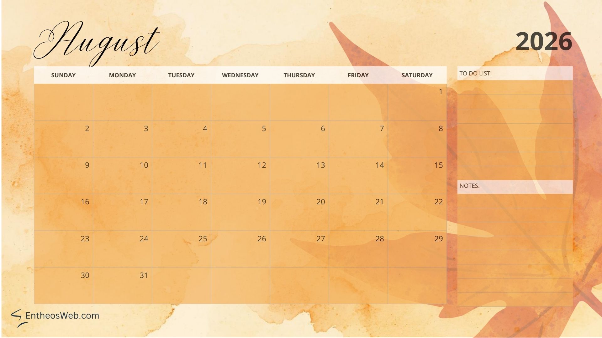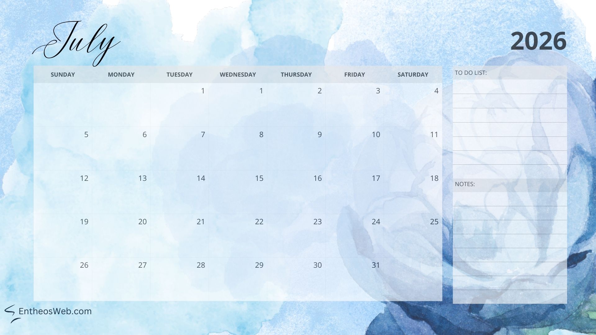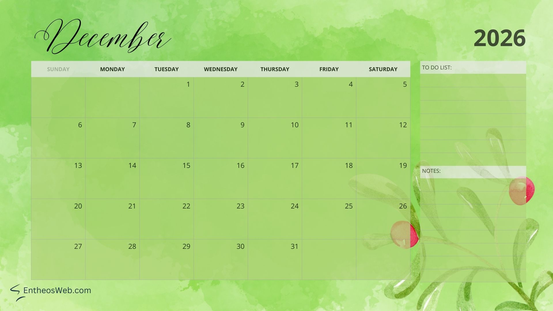 Full Year 2026 Calendar Desktop Wallpaper