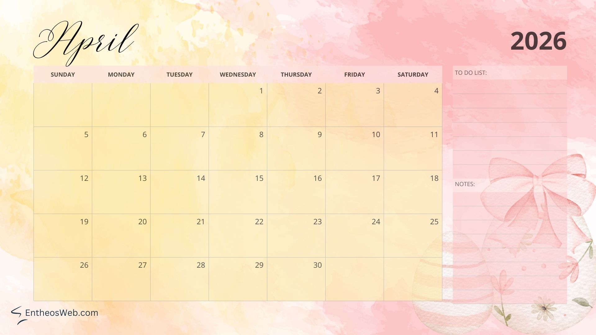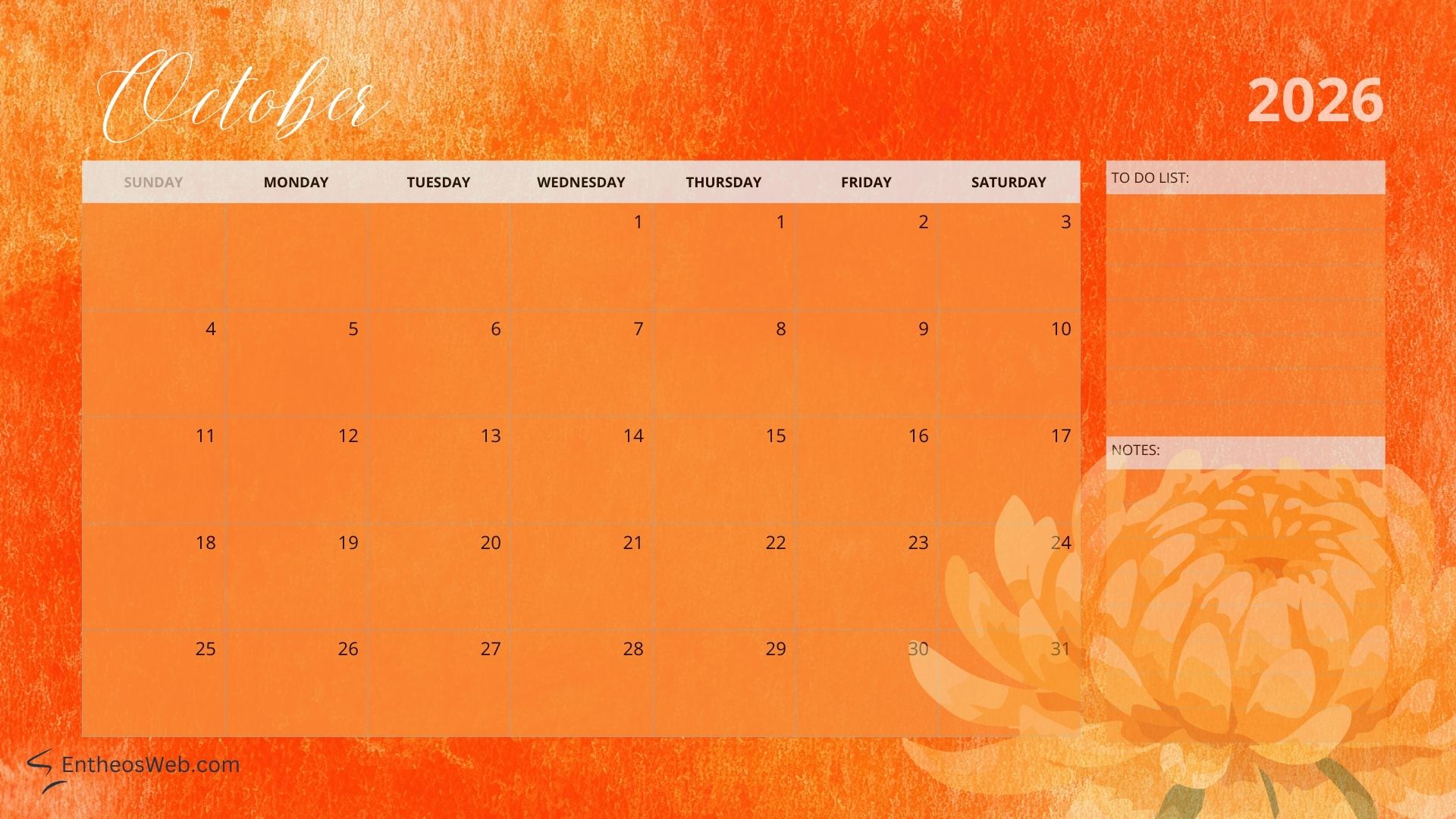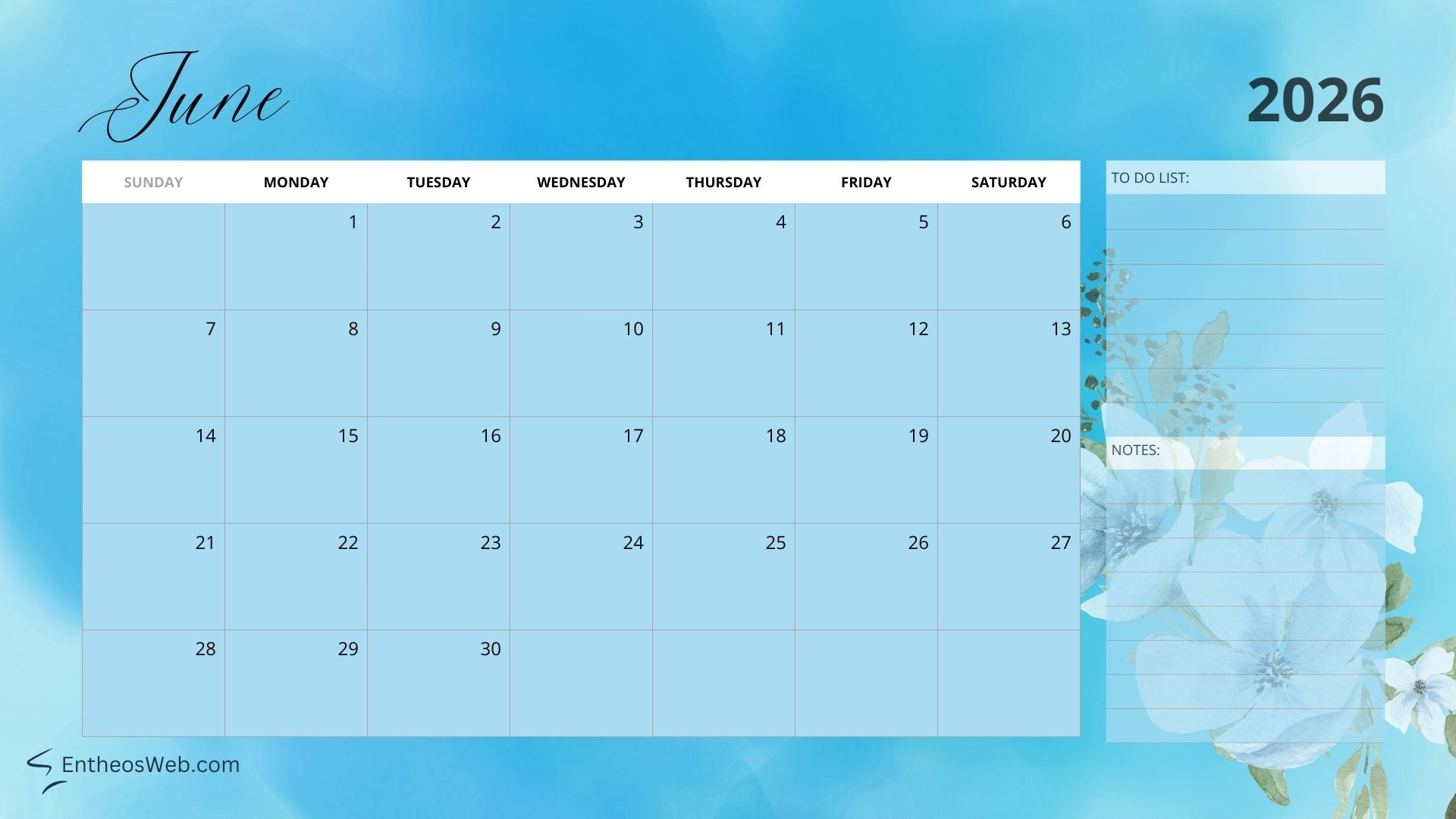 Full Year 2026 Calendar Desktop Wallpaper