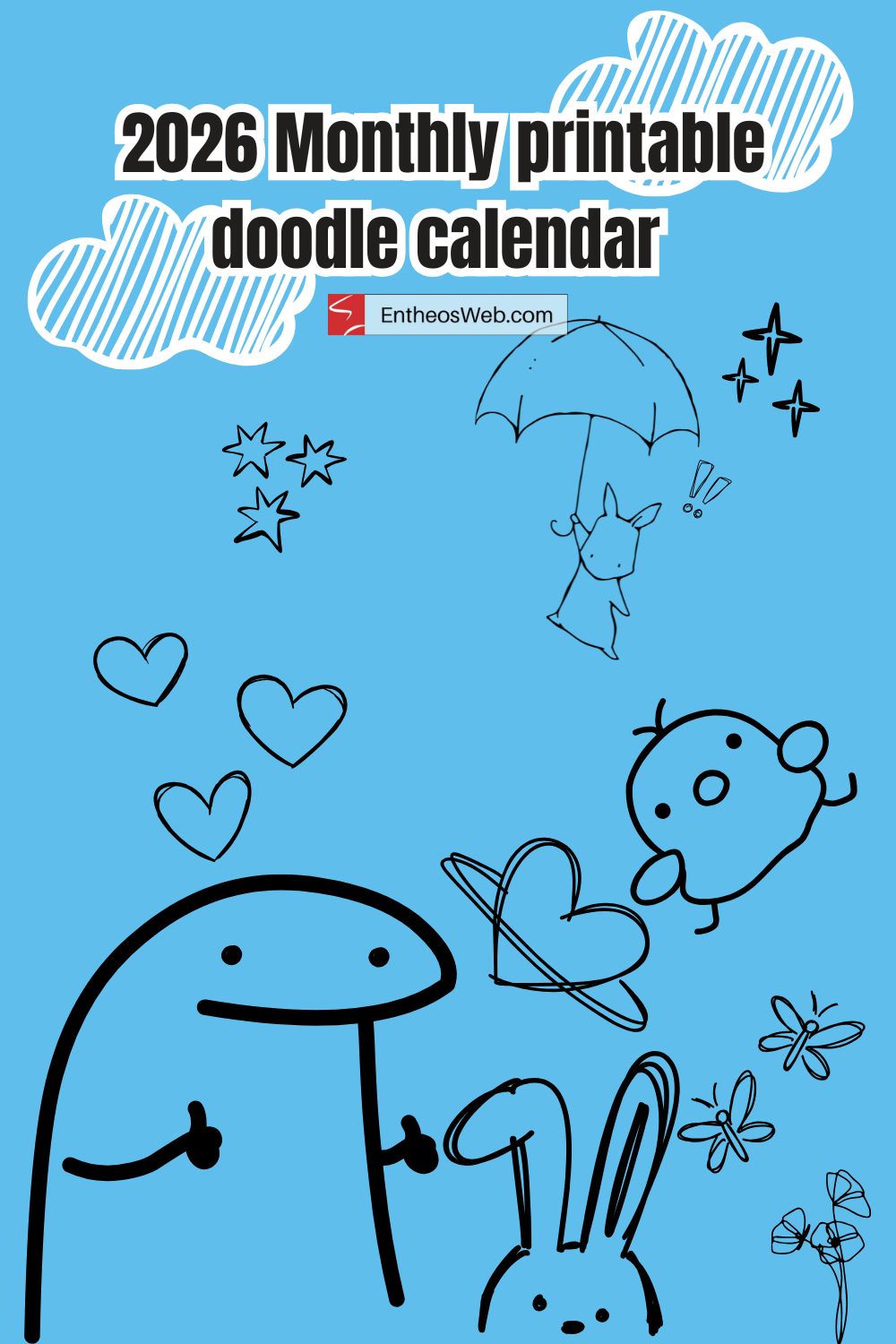 Get organized in style with the 2026 Monthly Printable Doodle Calendar by EntheosWeb! Each month features fun, doodles that add creativity and charm to your planning routine. Weekends are highlighted in blue making it perfect for students, professionals, and families looking for a cheerful way to plan their year. Print, personalize, and enjoy a year filled with inspiration!