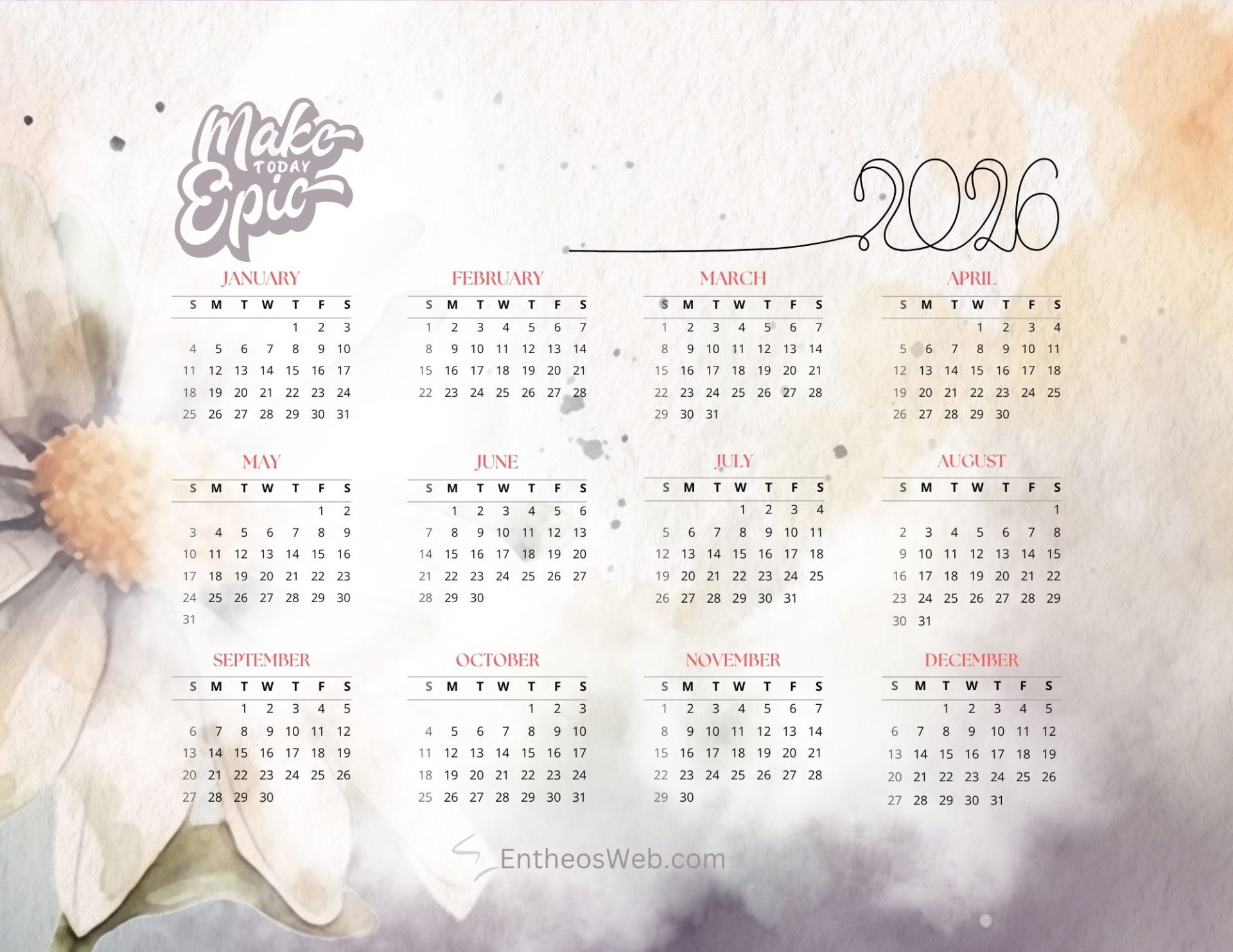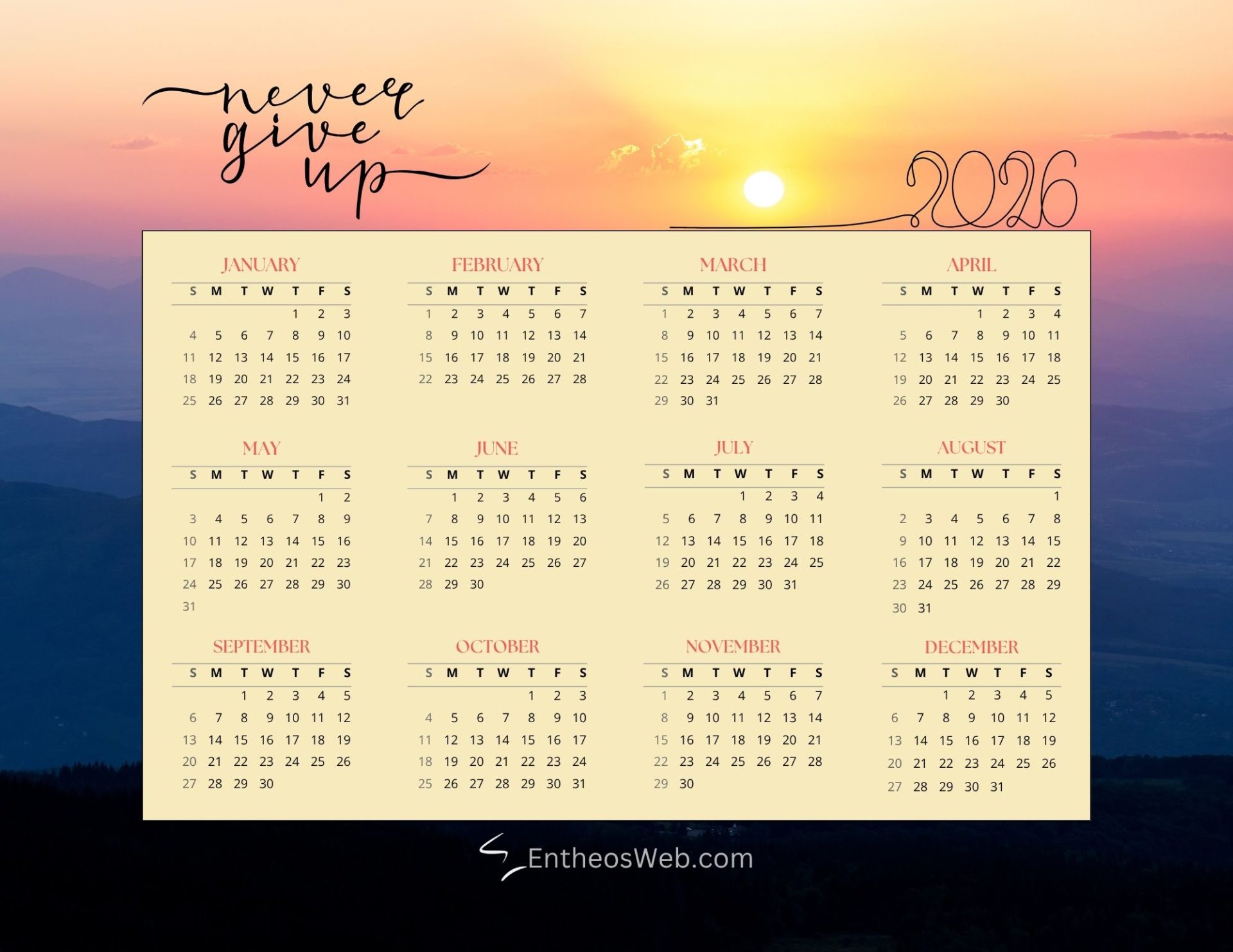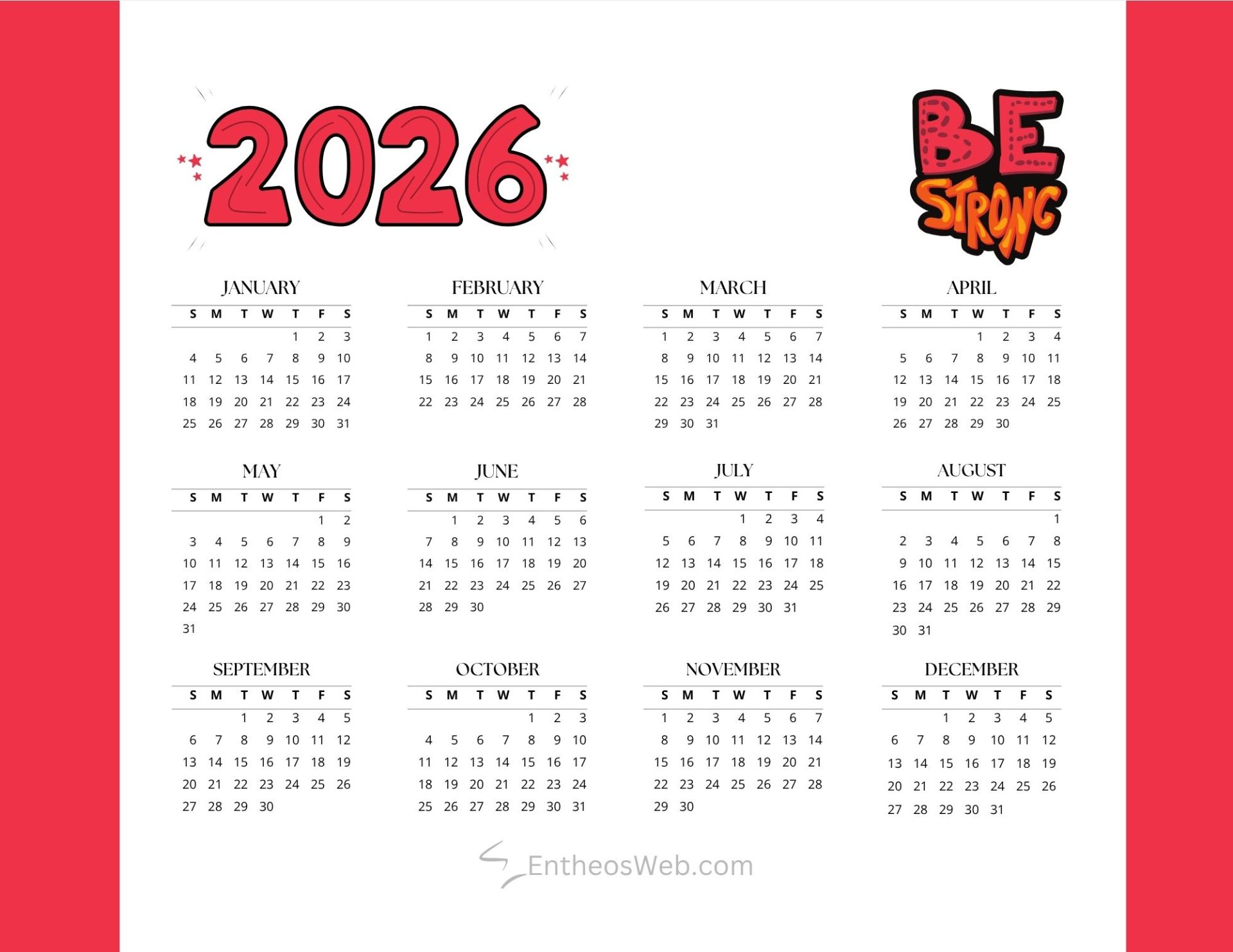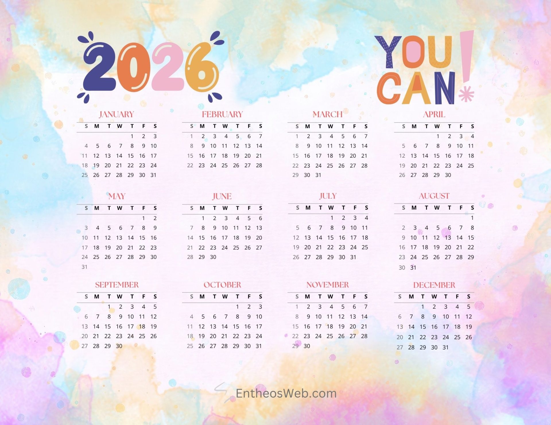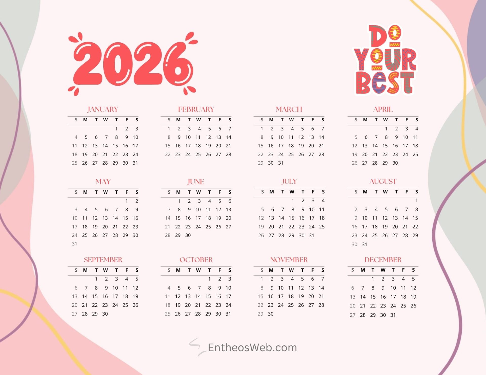 Get ready to stay positive and productive all year with our Full Year 2026 Motivational Printable Calendars, thoughtfully designed by EntheosWeb and available for free download in PDF and JPG formats. Each calendar showcases inspiring quotes and motivational messages to lift your spirit and keep you focused on your goals throughout the year. Ideal for personal, home, or office use, these printable calendars combine organization and inspiration in one beautifully designed layout. Download your free Full Year 2026 Motivational Calendar today and let encouragement guide you every month of the year!