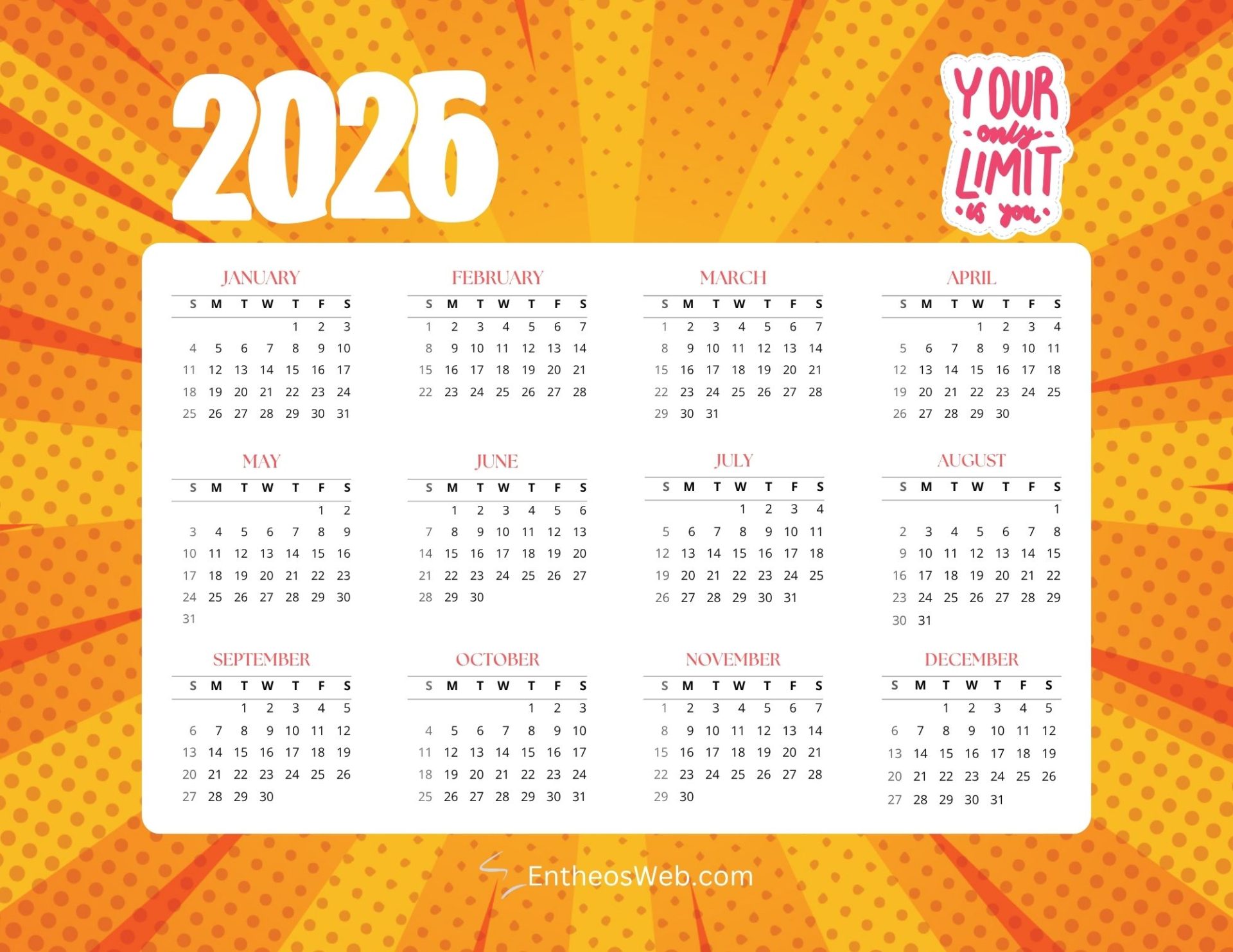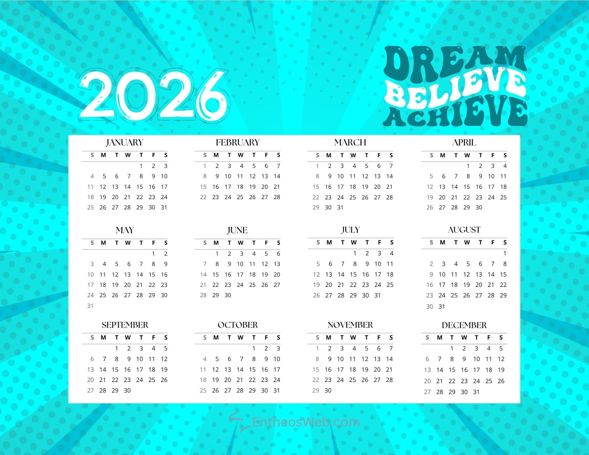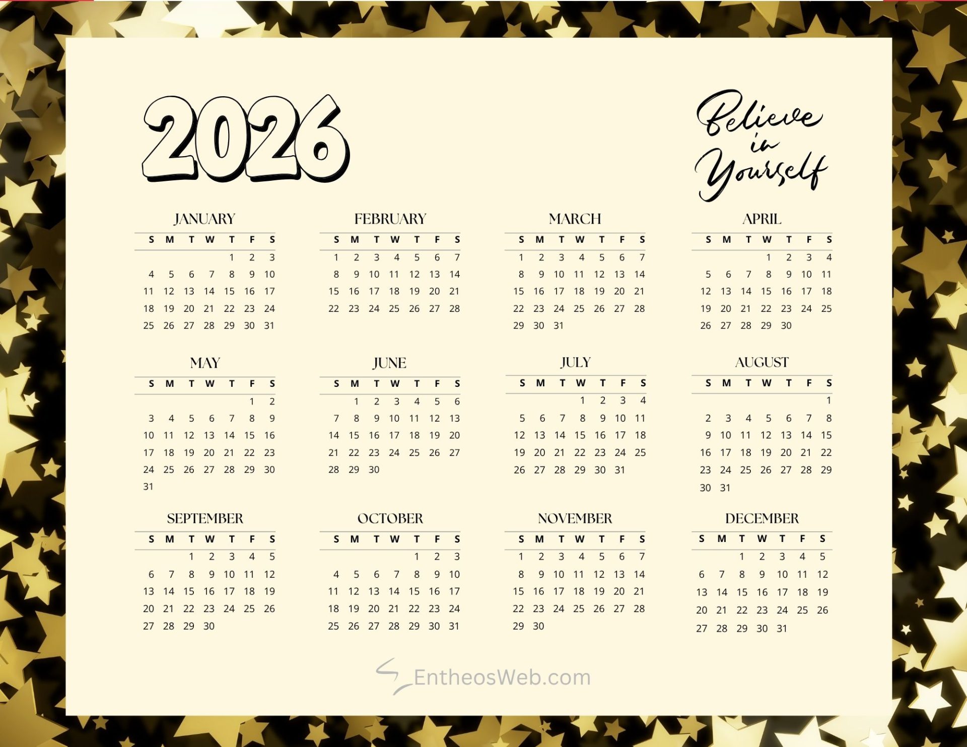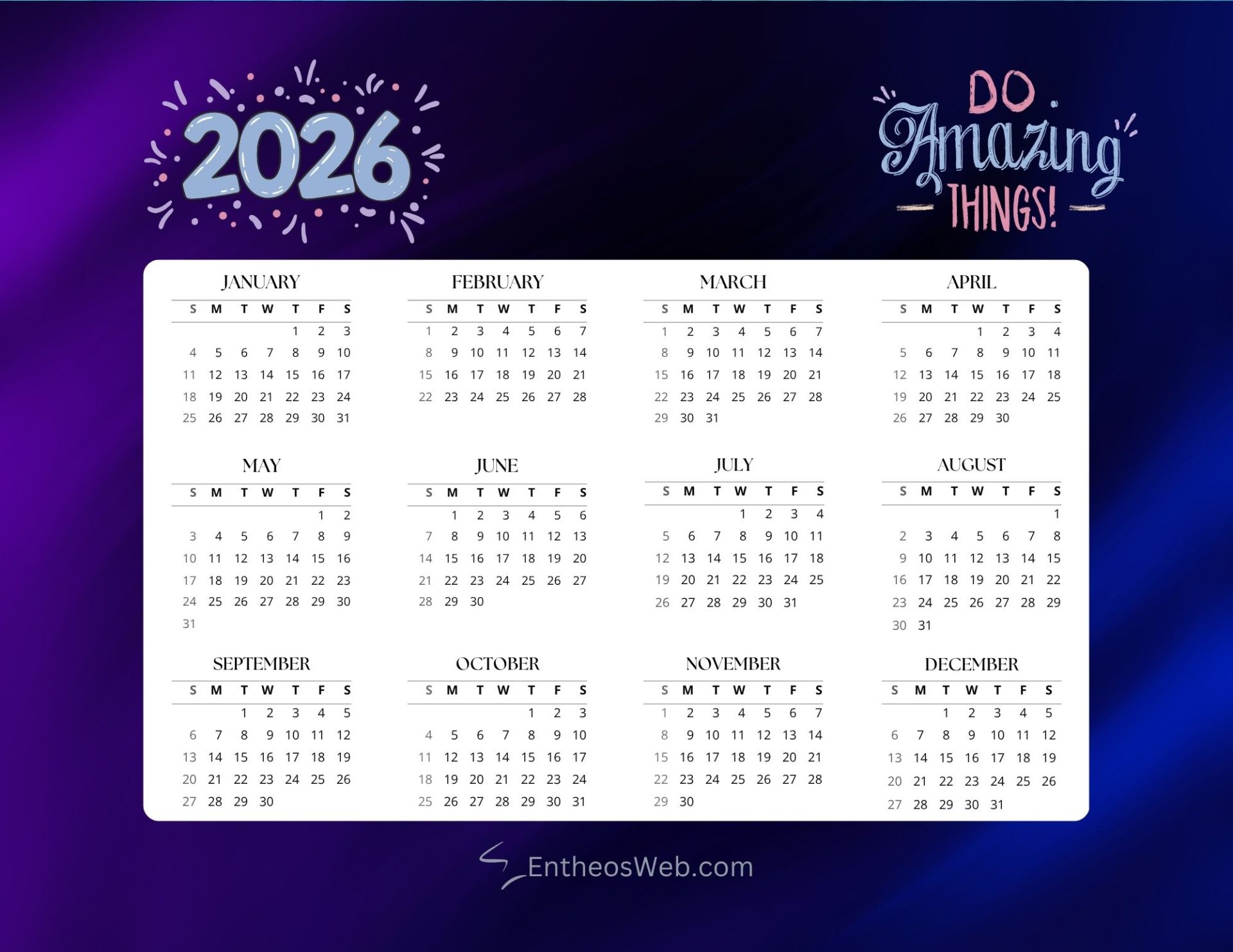 Get ready to stay positive and productive all year with our Full Year 2026 Motivational Printable Calendars, thoughtfully designed by EntheosWeb and available for free download in PDF and JPG formats. Each calendar showcases inspiring quotes and motivational messages to lift your spirit and keep you focused on your goals throughout the year. Ideal for personal, home, or office use, these printable calendars combine organization and inspiration in one beautifully designed layout. Download your free Full Year 2026 Motivational Calendar today and let encouragement guide you every month of the year!