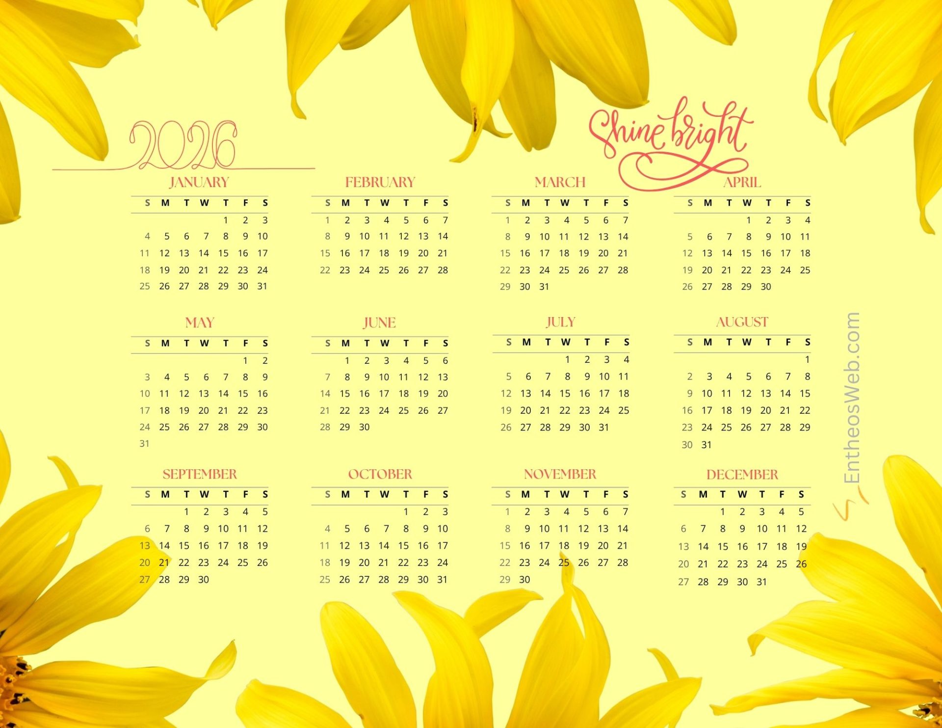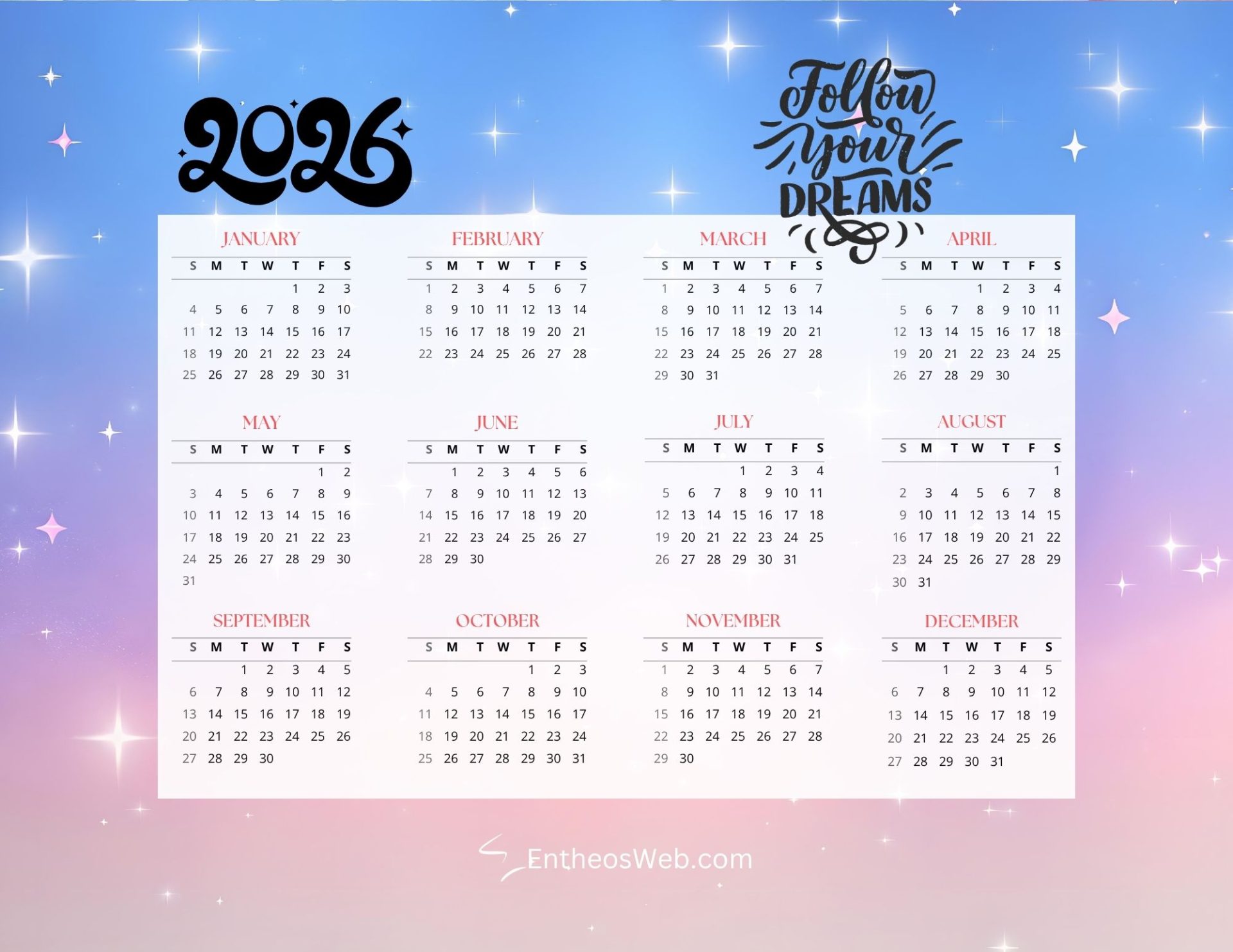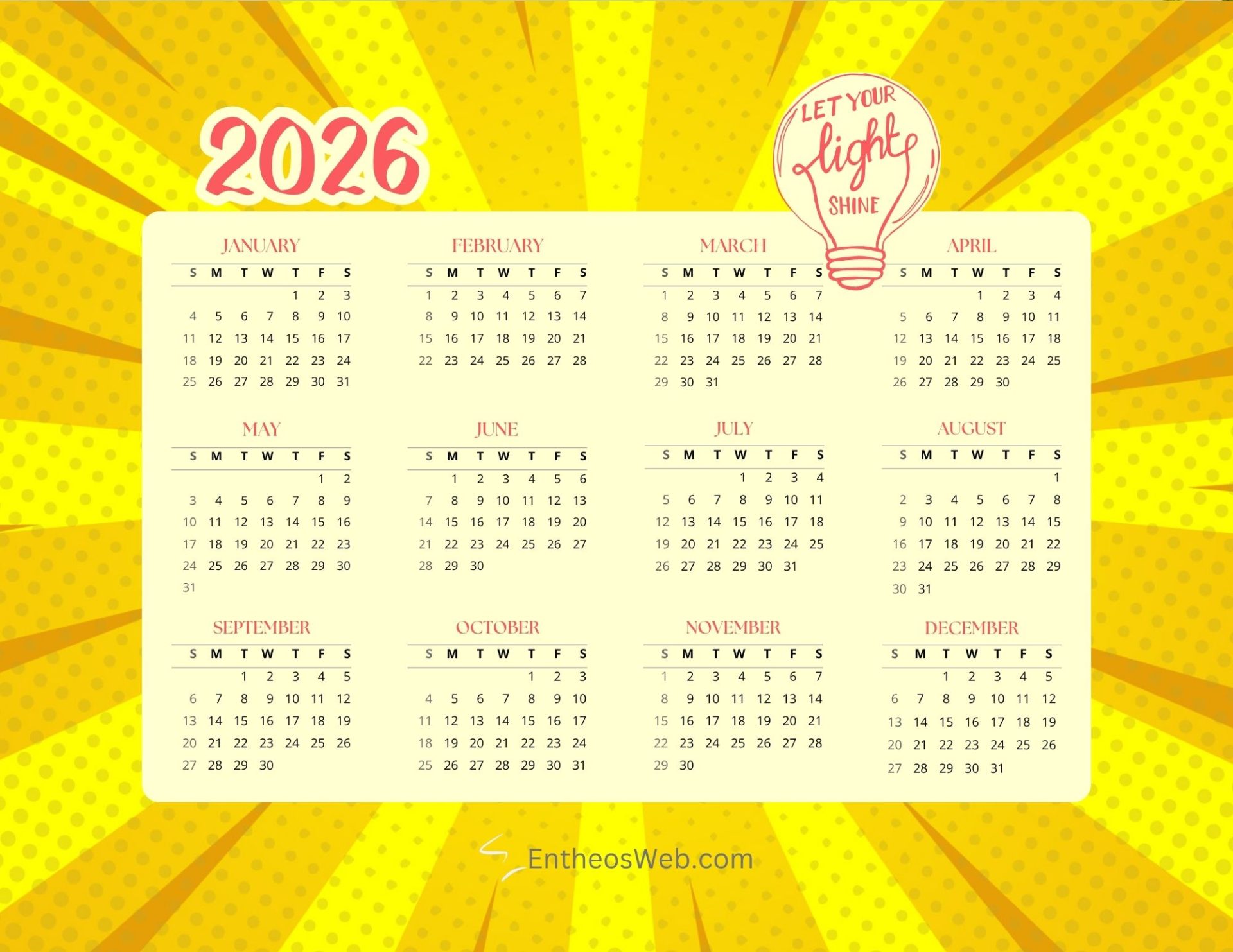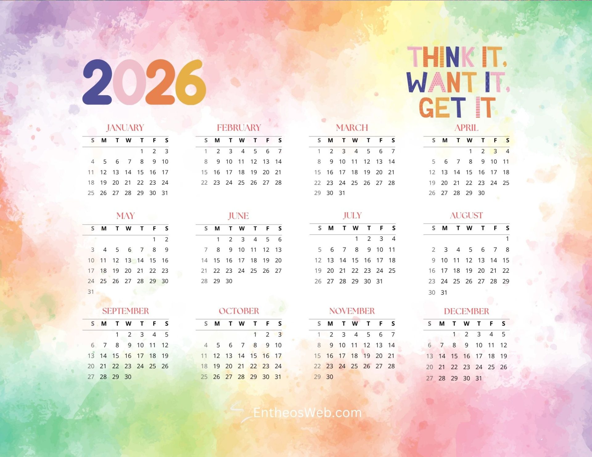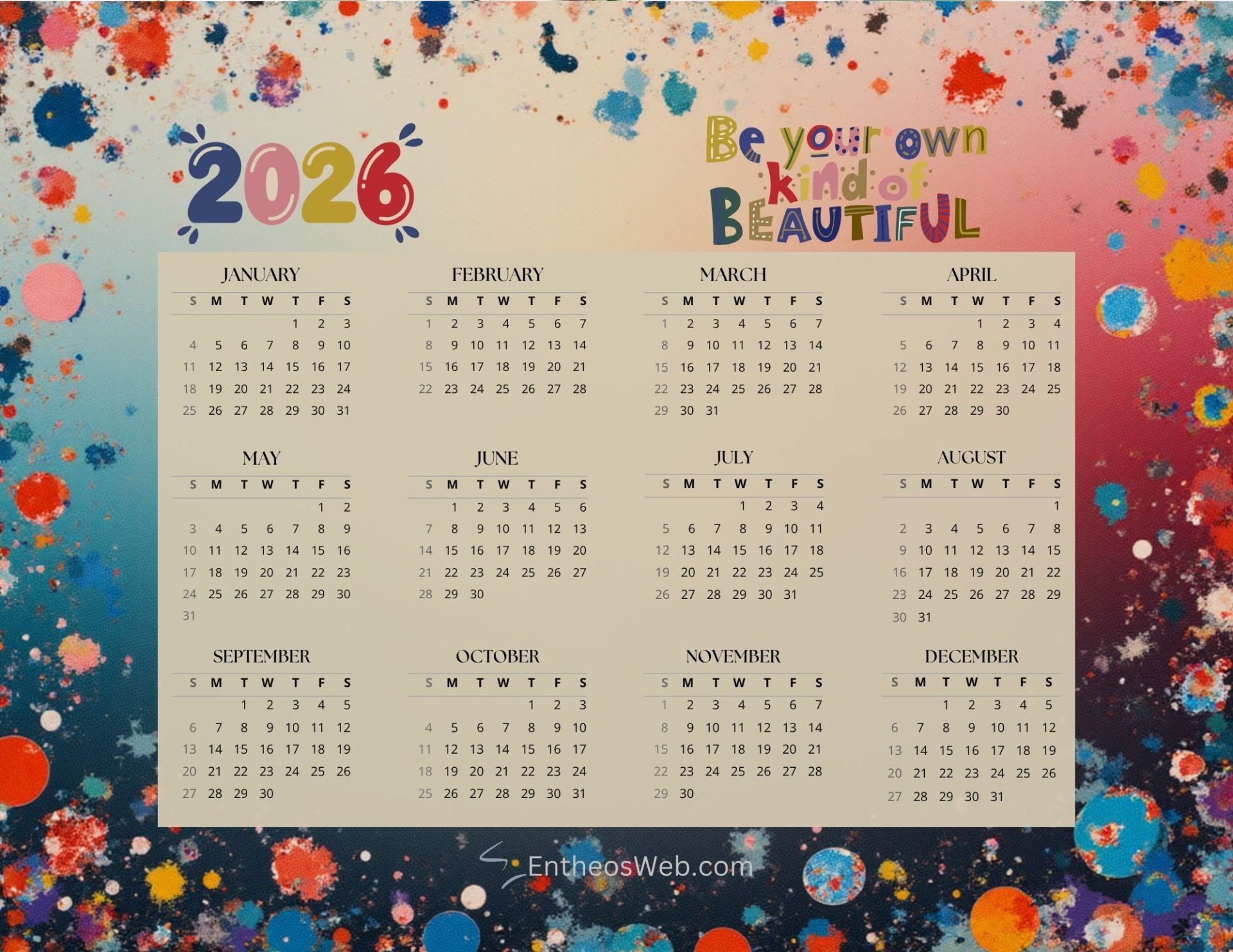 Get ready to stay positive and productive all year with our Full Year 2026 Motivational Printable Calendars, thoughtfully designed by EntheosWeb and available for free download in PDF and JPG formats. Each calendar showcases inspiring quotes and motivational messages to lift your spirit and keep you focused on your goals throughout the year. Ideal for personal, home, or office use, these printable calendars combine organization and inspiration in one beautifully designed layout. Download your free Full Year 2026 Motivational Calendar today and let encouragement guide you every month of the year!