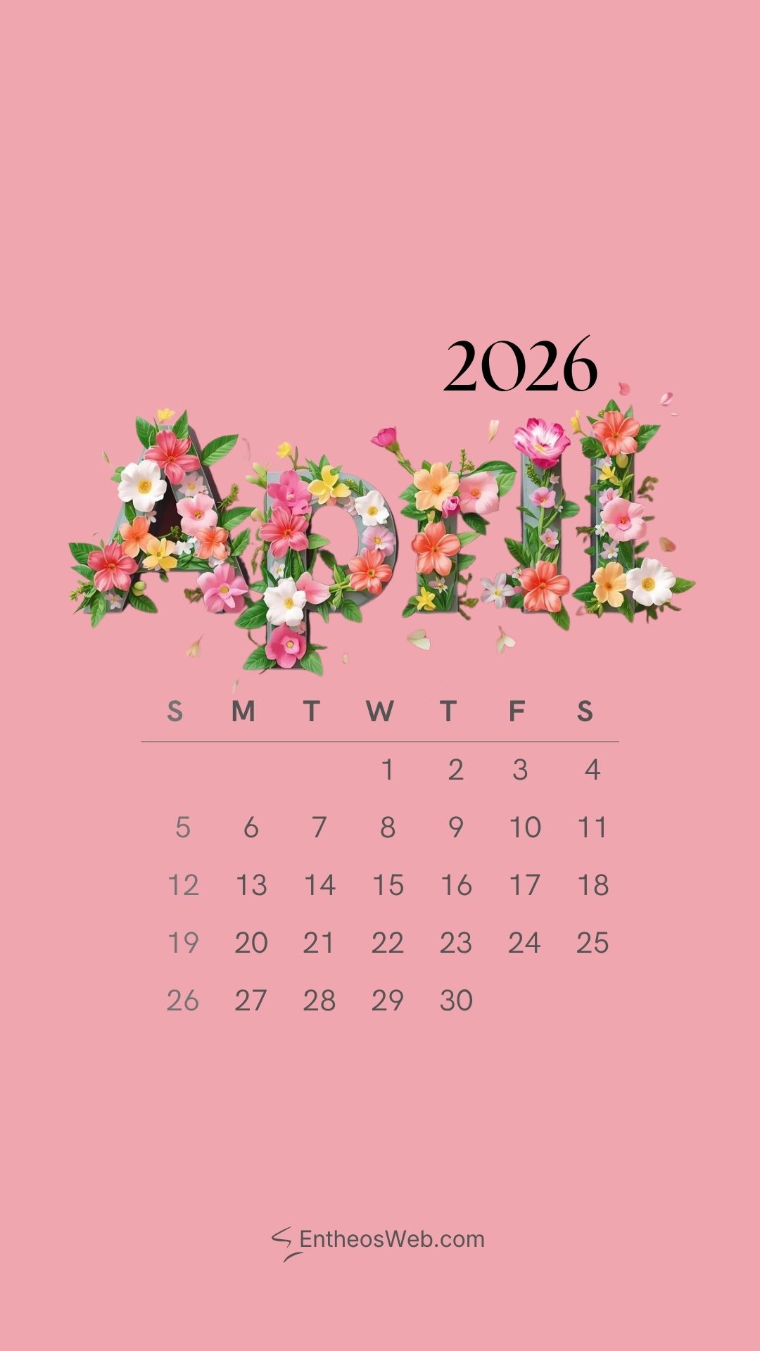 Stay organized on the go with the April 2026 Phone Wallpaper Calendar. Designed to fit mobile screens perfectly, this clean and stylish calendar wallpaper lets you view your month at a glance while adding a fresh, seasonal look to your phone. Ideal for everyday planning throughout April 2026.