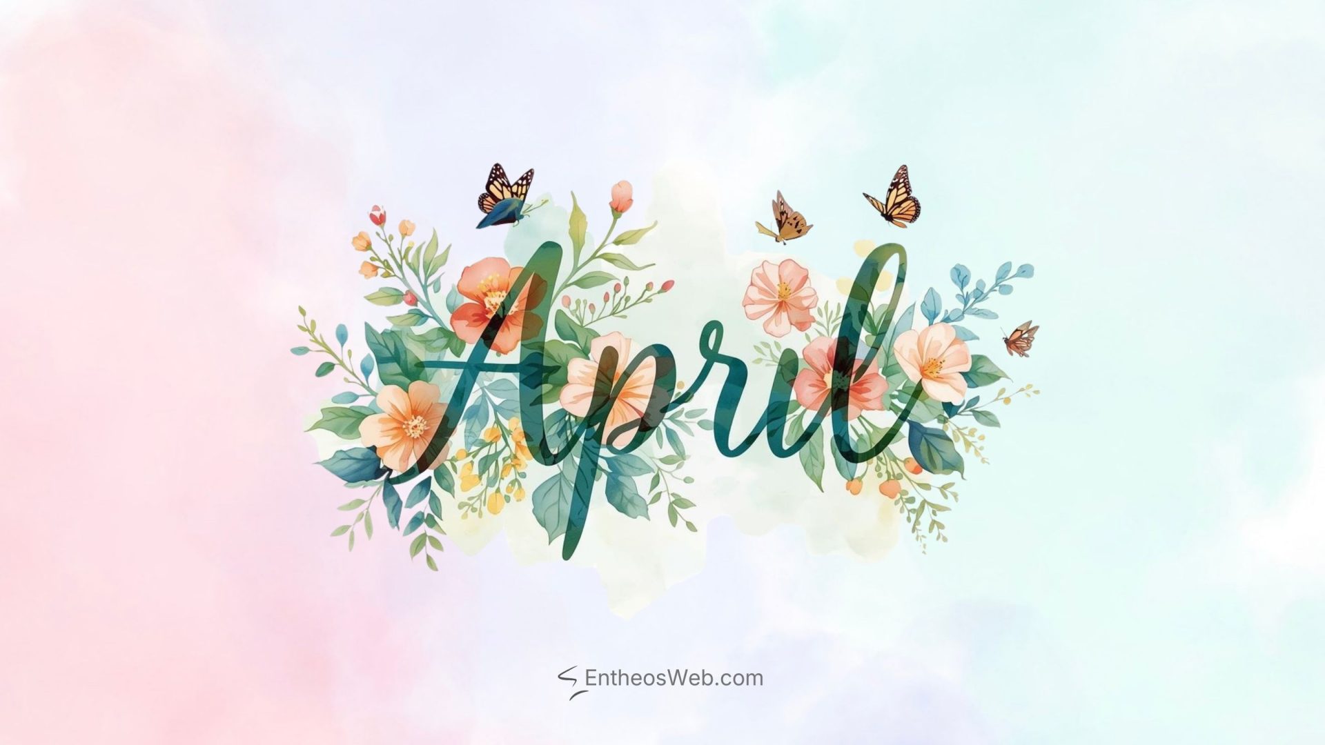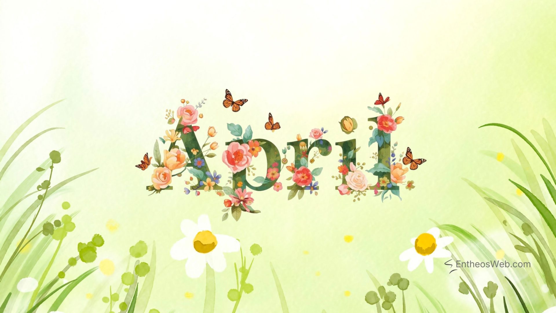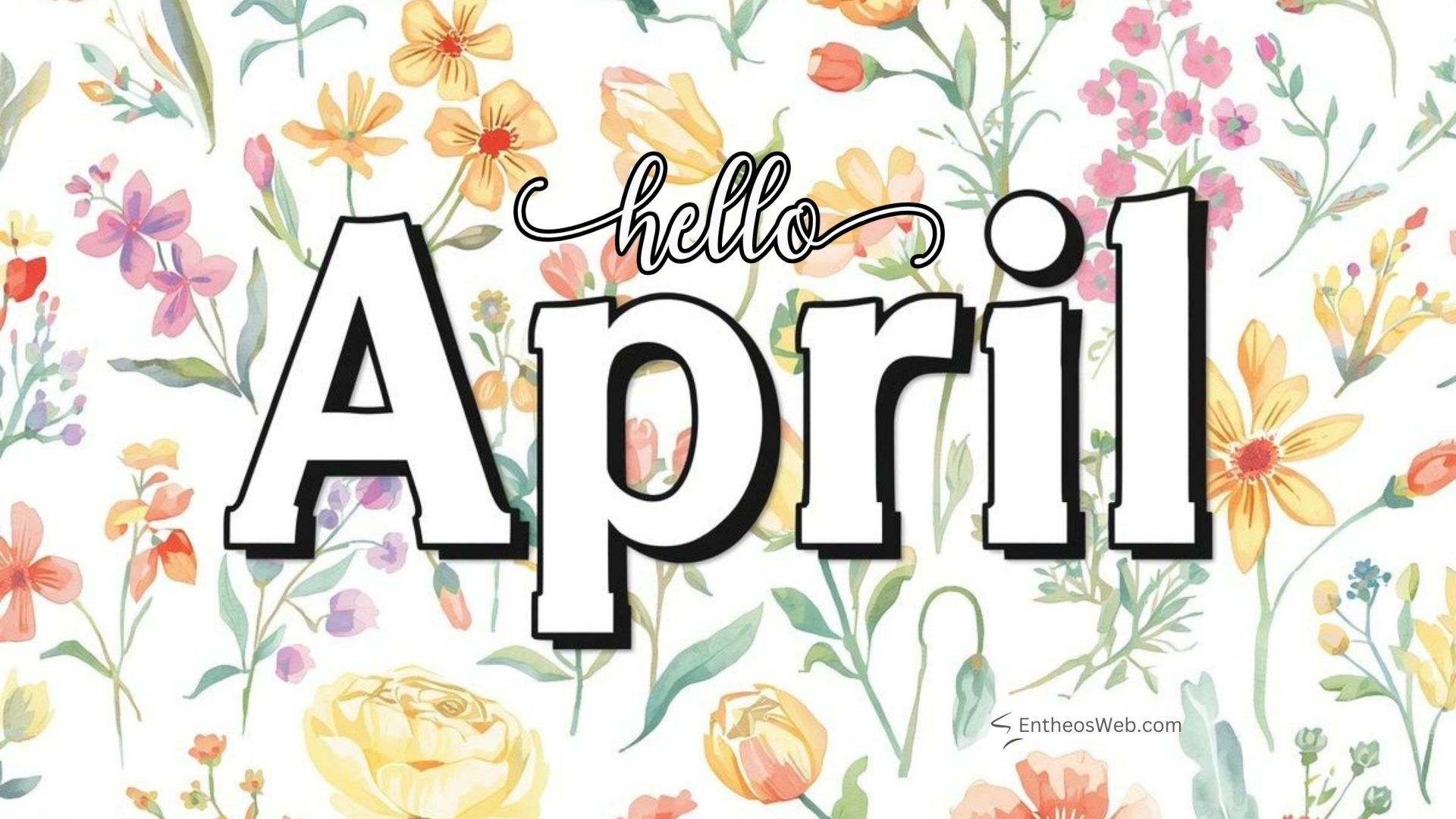 April Desktop Wallpaper Watercolor Floral Frame