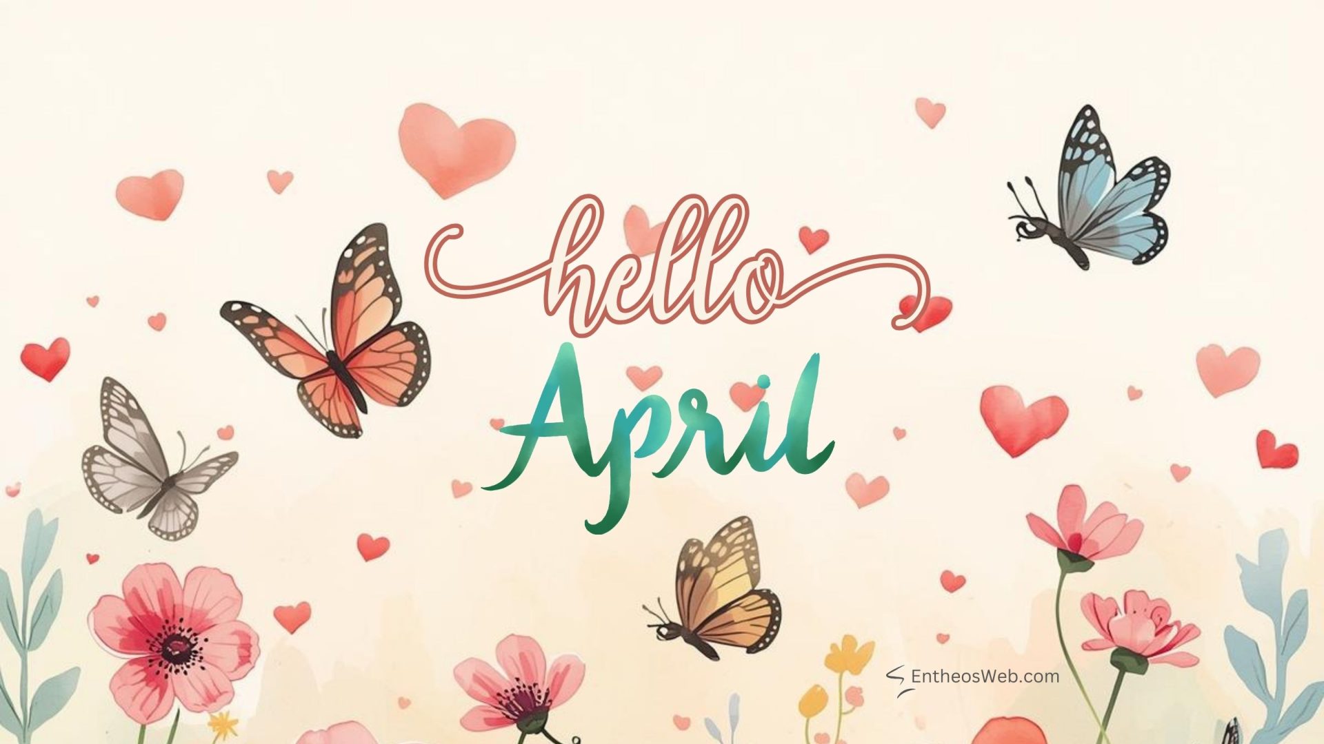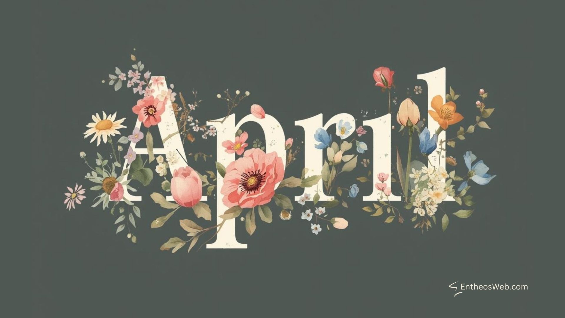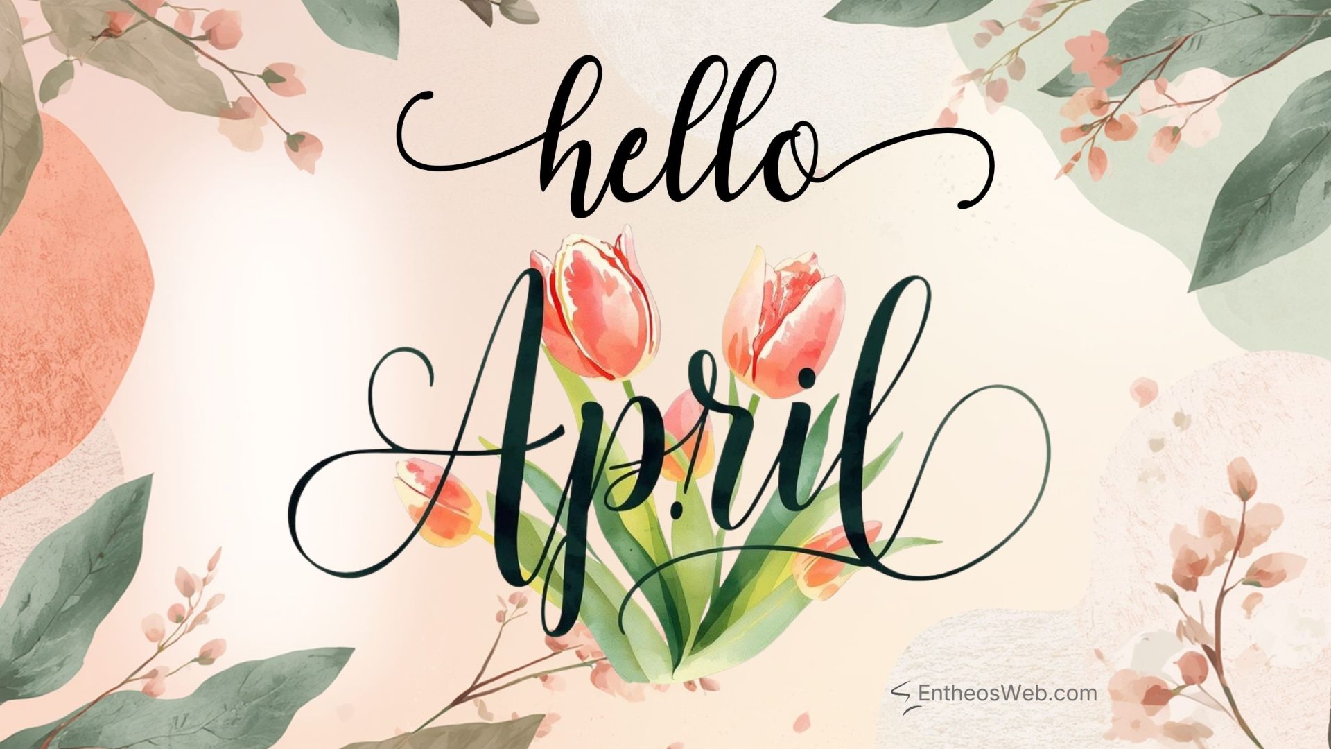 April Desktop Wallpaper Watercolor Floral Frame