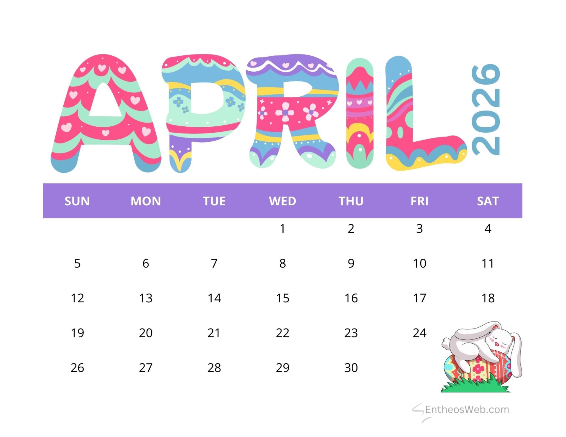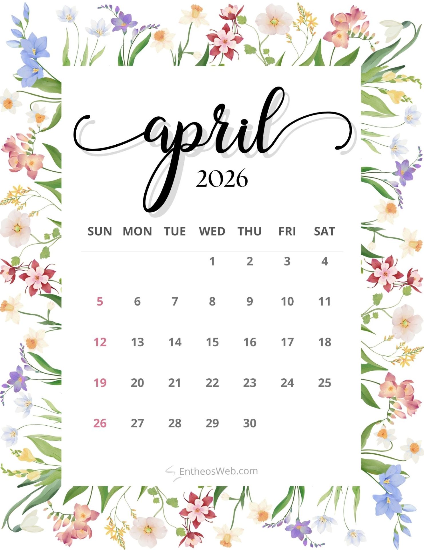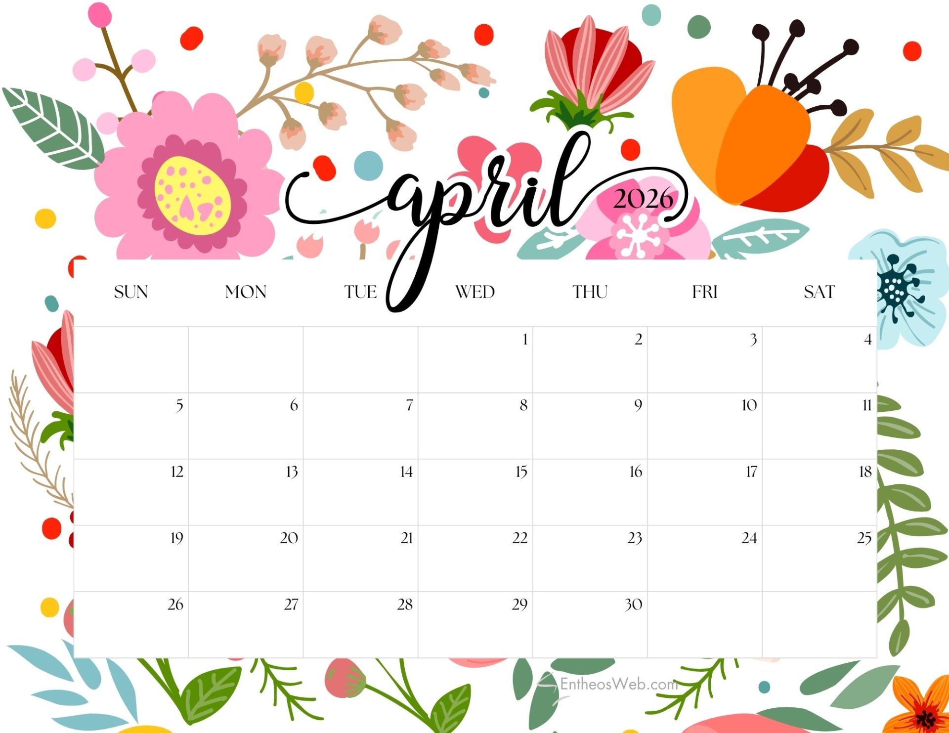 Stay organized this spring with our April 2026 Printable Calendar. Featuring a clean and easy-to-use monthly layout, this calendar is perfect for planning appointments, events, and daily tasks at home, school, or work. Simply download, print, and enjoy stress-free planning throughout April 2026.