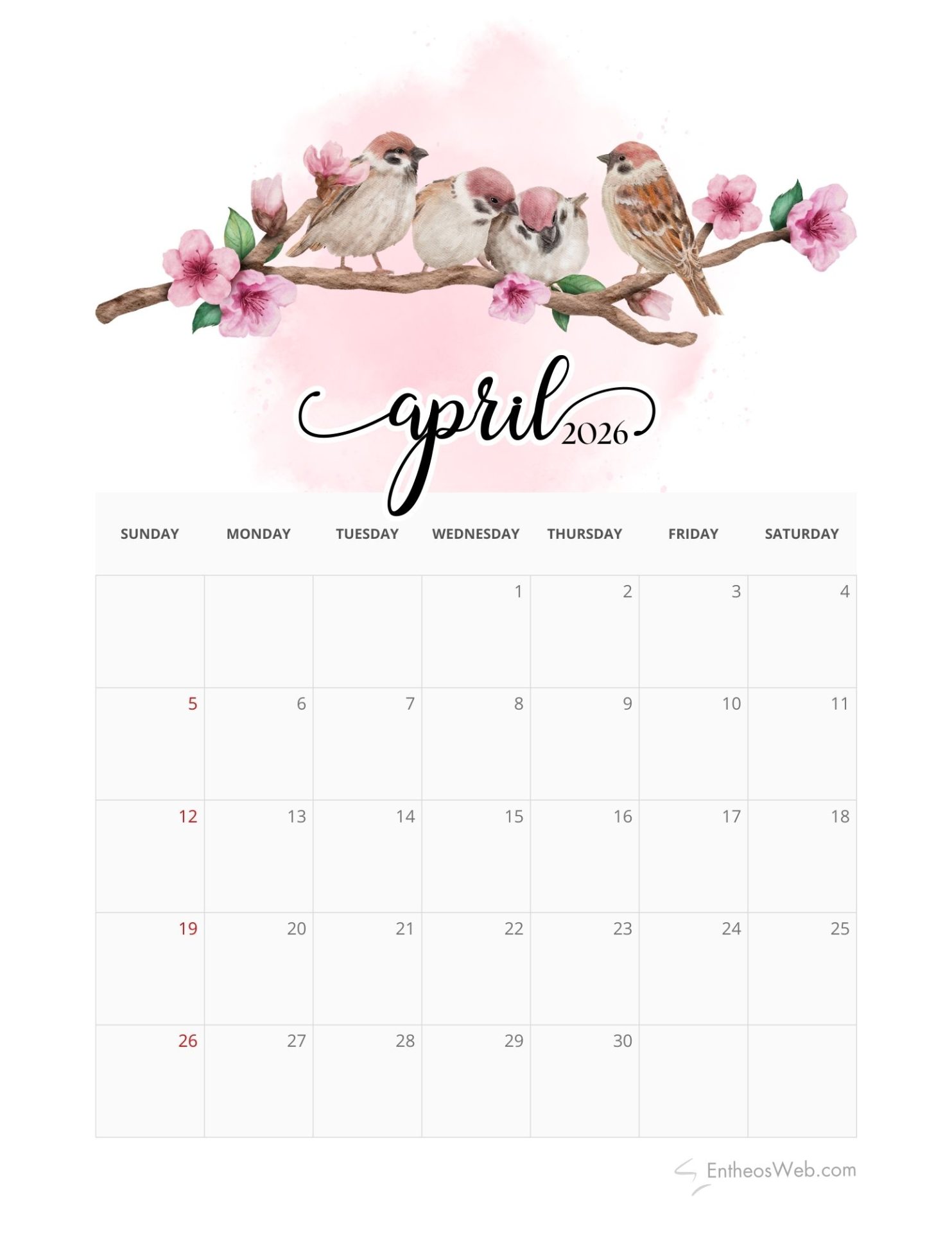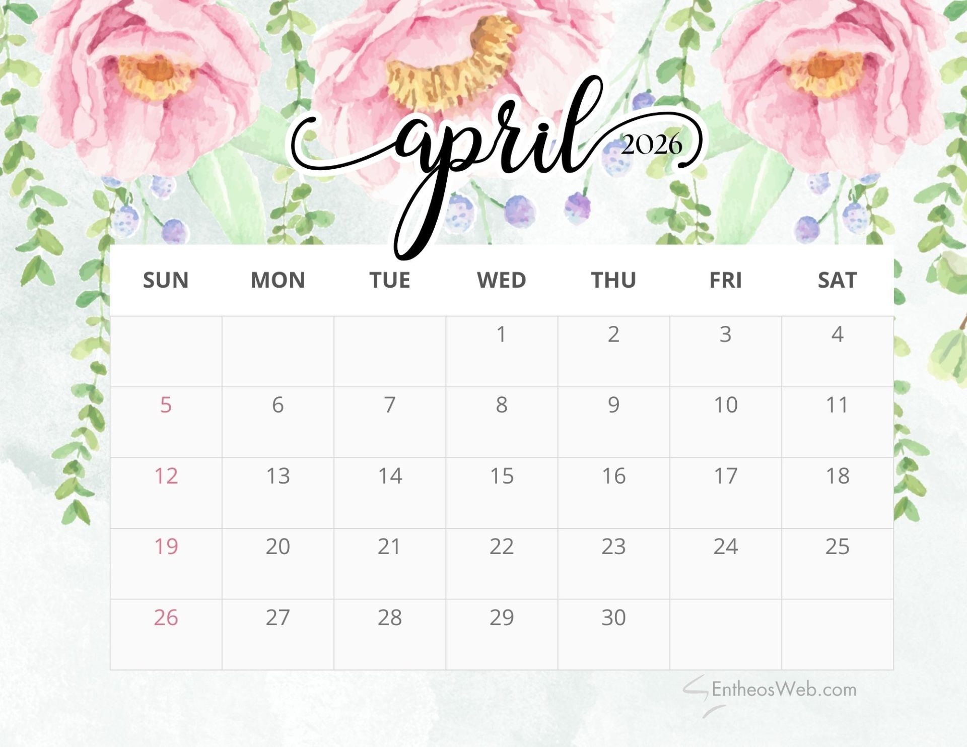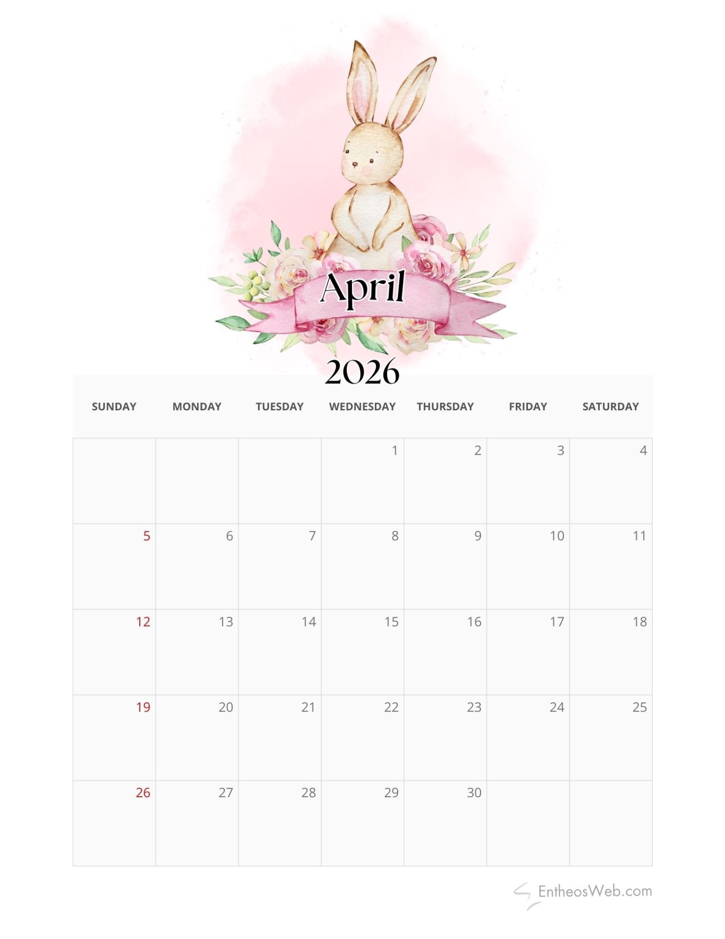 Stay organized this spring with our April 2026 Printable Calendar. Featuring a clean and easy-to-use monthly layout, this calendar is perfect for planning appointments, events, and daily tasks at home, school, or work. Simply download, print, and enjoy stress-free planning throughout April 2026.