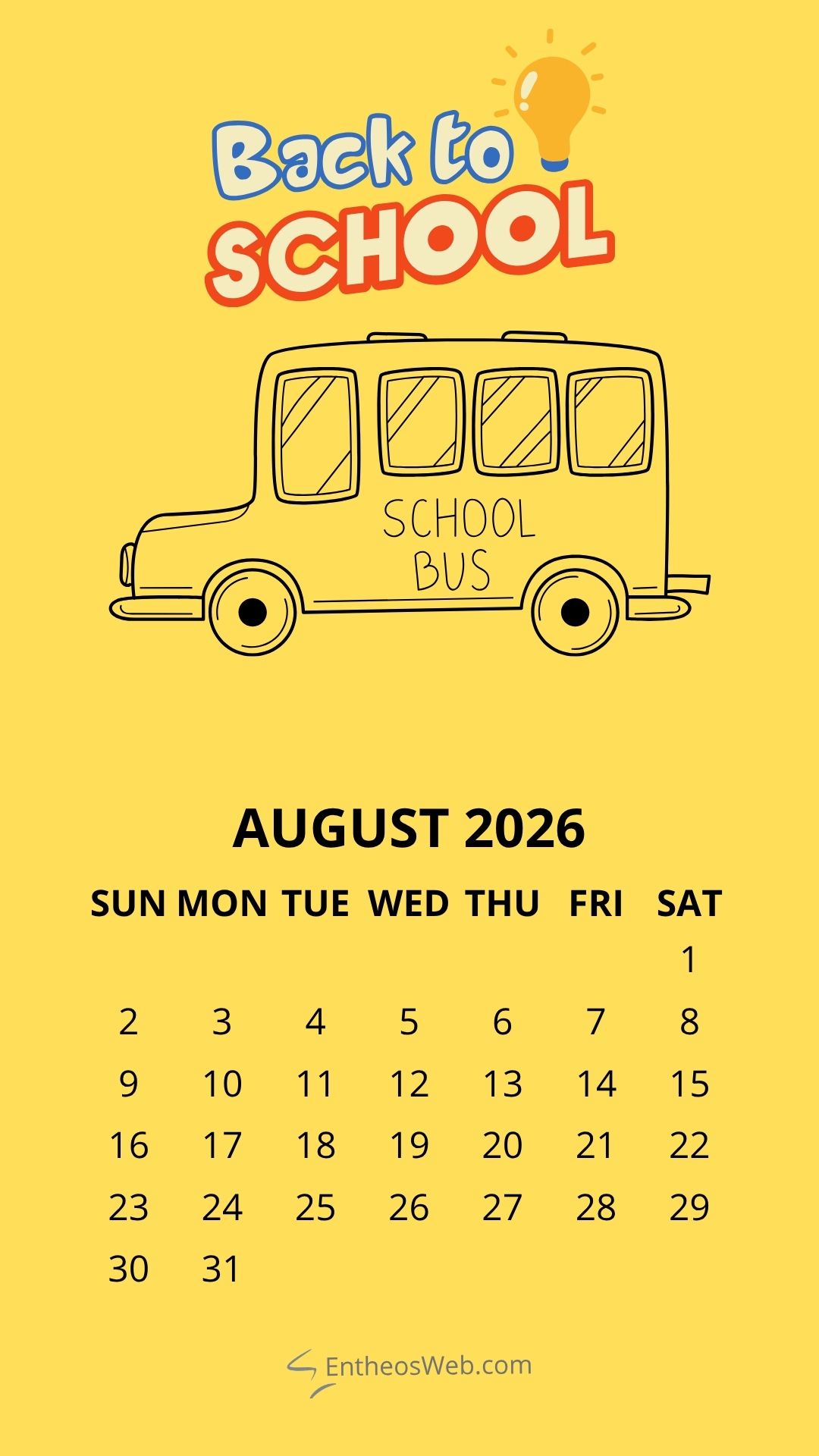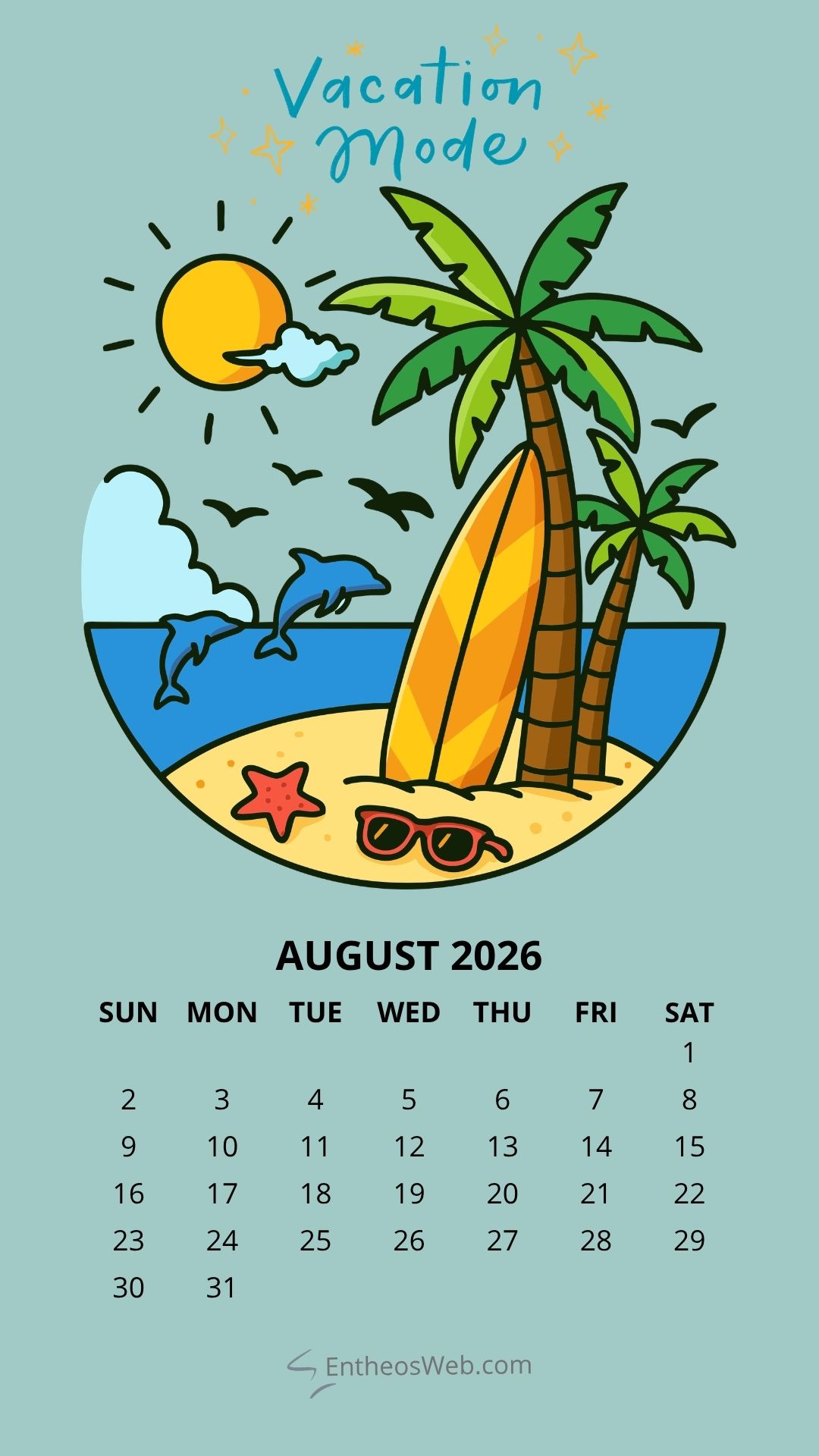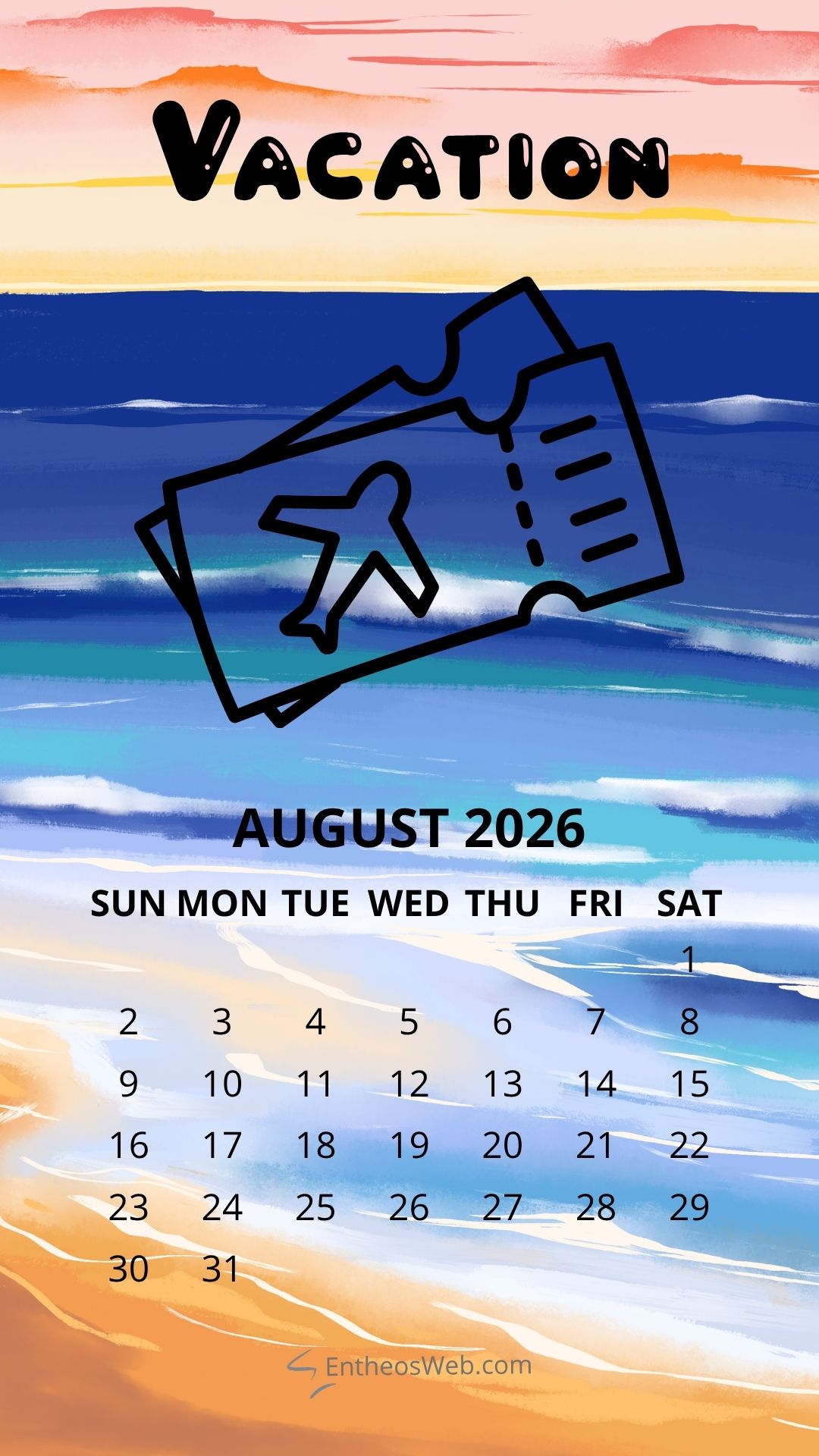Stay organized wherever you go with the August 2026 Calendar Phone Wallpaper. Perfectly sized for mobile screens, this stylish and easy-to-read calendar background lets you check your schedule at a glance while adding a fresh late-summer touch to your phone. A simple and practical way to plan throughout August 2026.