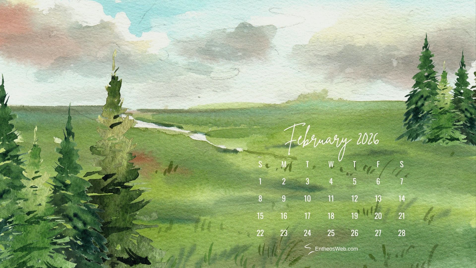 Download and use free February 2025 desktop wallpaper calendars designed by EntheosWeb.