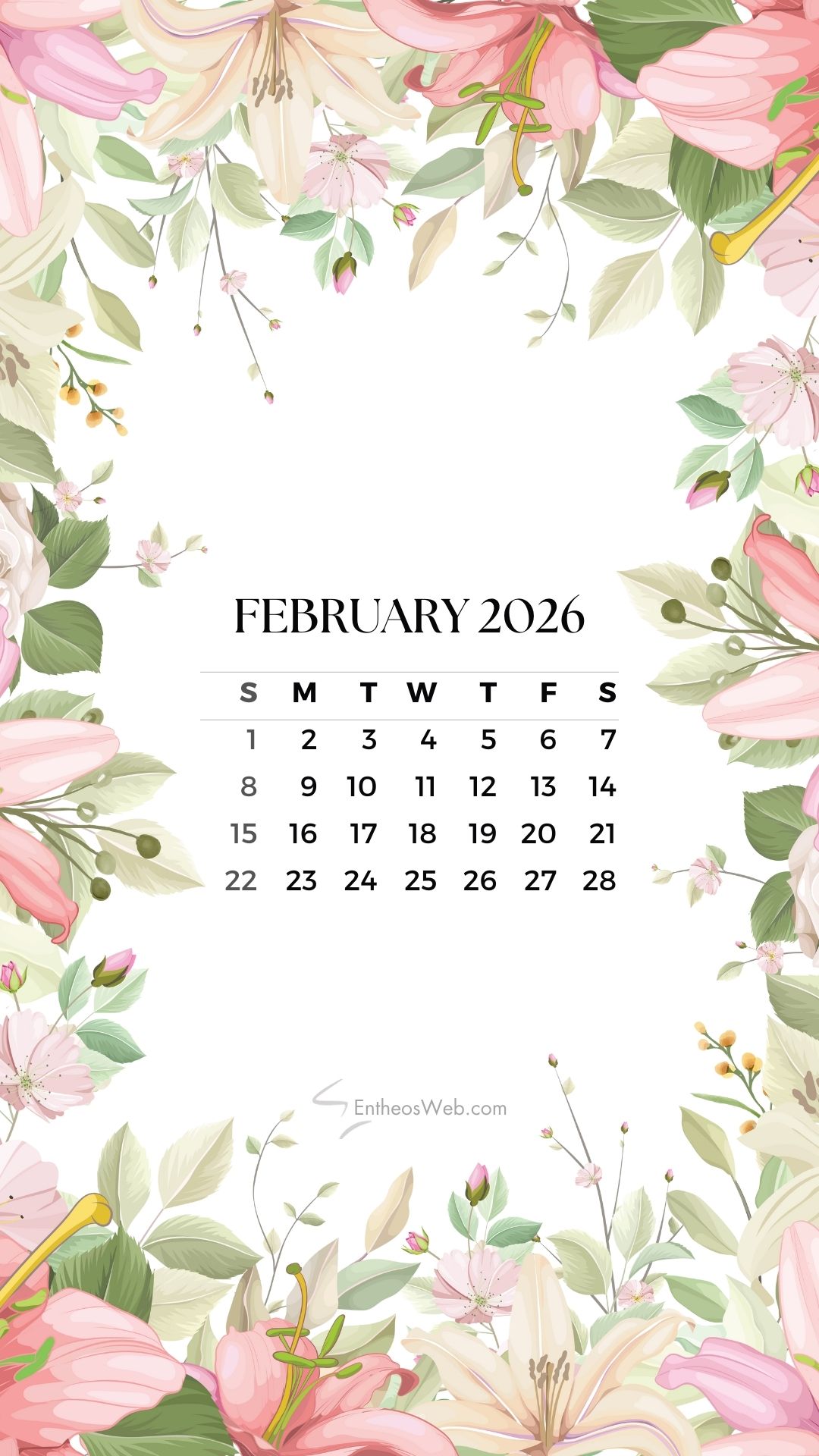 Stay organized on the go with the February 2026 Phone Wallpaper Calendar. Designed to fit perfectly on mobile screens, this clean and stylish calendar wallpaper lets you check your month at a glance anytime, anywhere. Download it to your phone and enjoy a practical yet aesthetic background for February 2026.