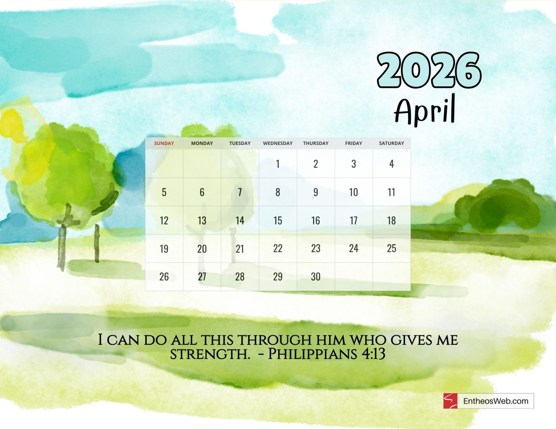 Welcome to our exclusive collection of beautifully designed free April 2026 printable calendars, available for free download. Created by the talented team at EntheosWeb, these letter-sized printable PDFs are perfect for helping you stay organized and on track throughout the month. Simply download and print your favorite design to enjoy a seamless blend of functionality and aesthetics. Get ready to plan your April with ease and elegance!
