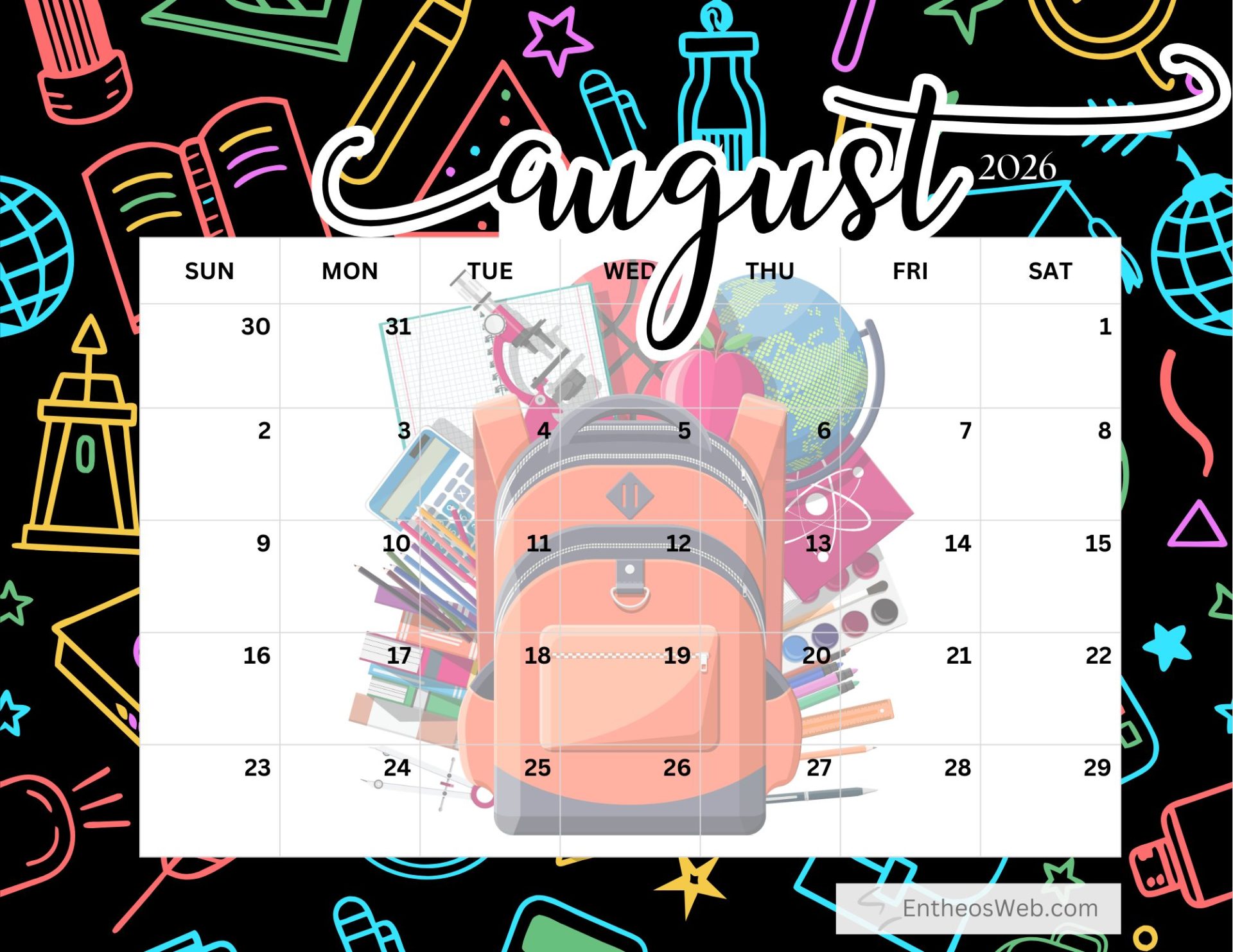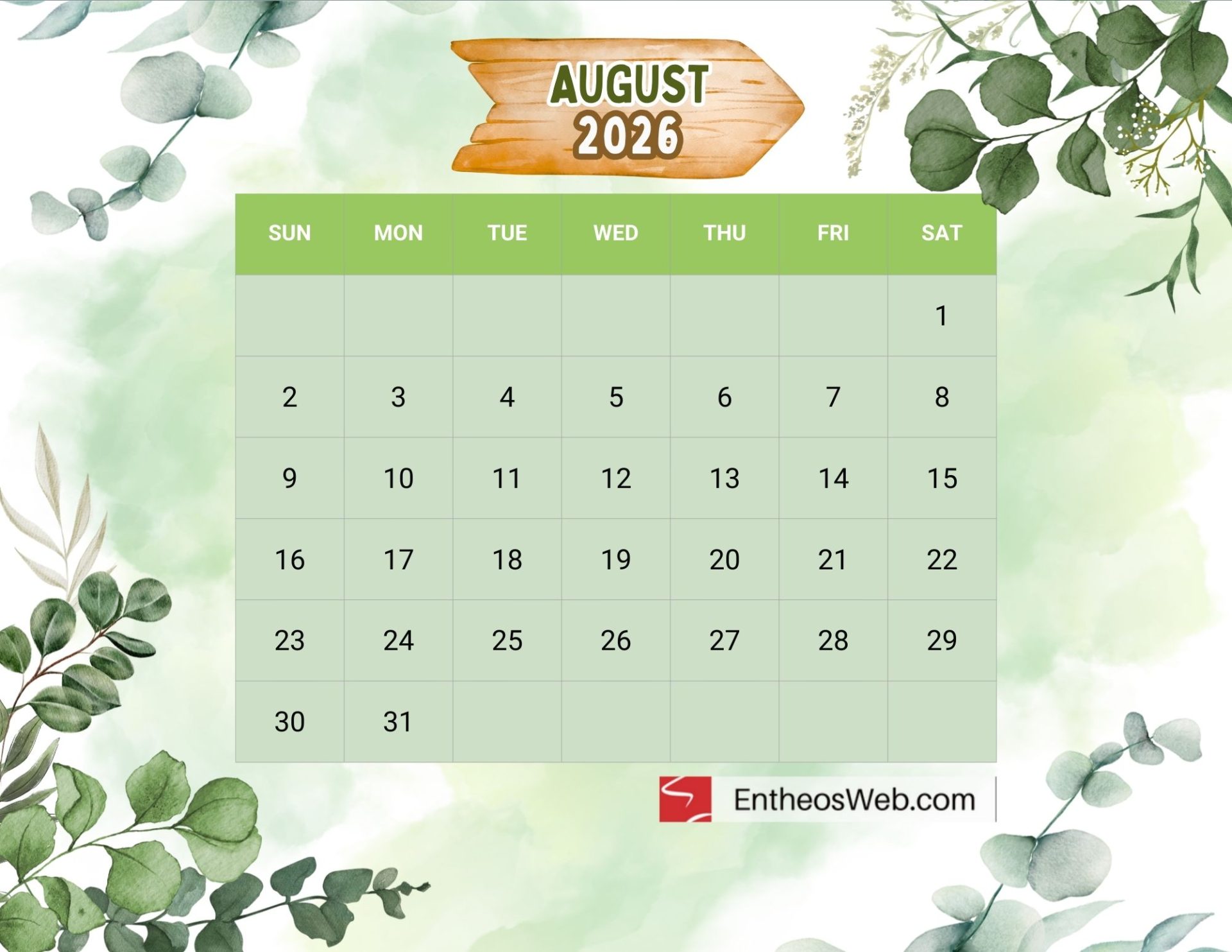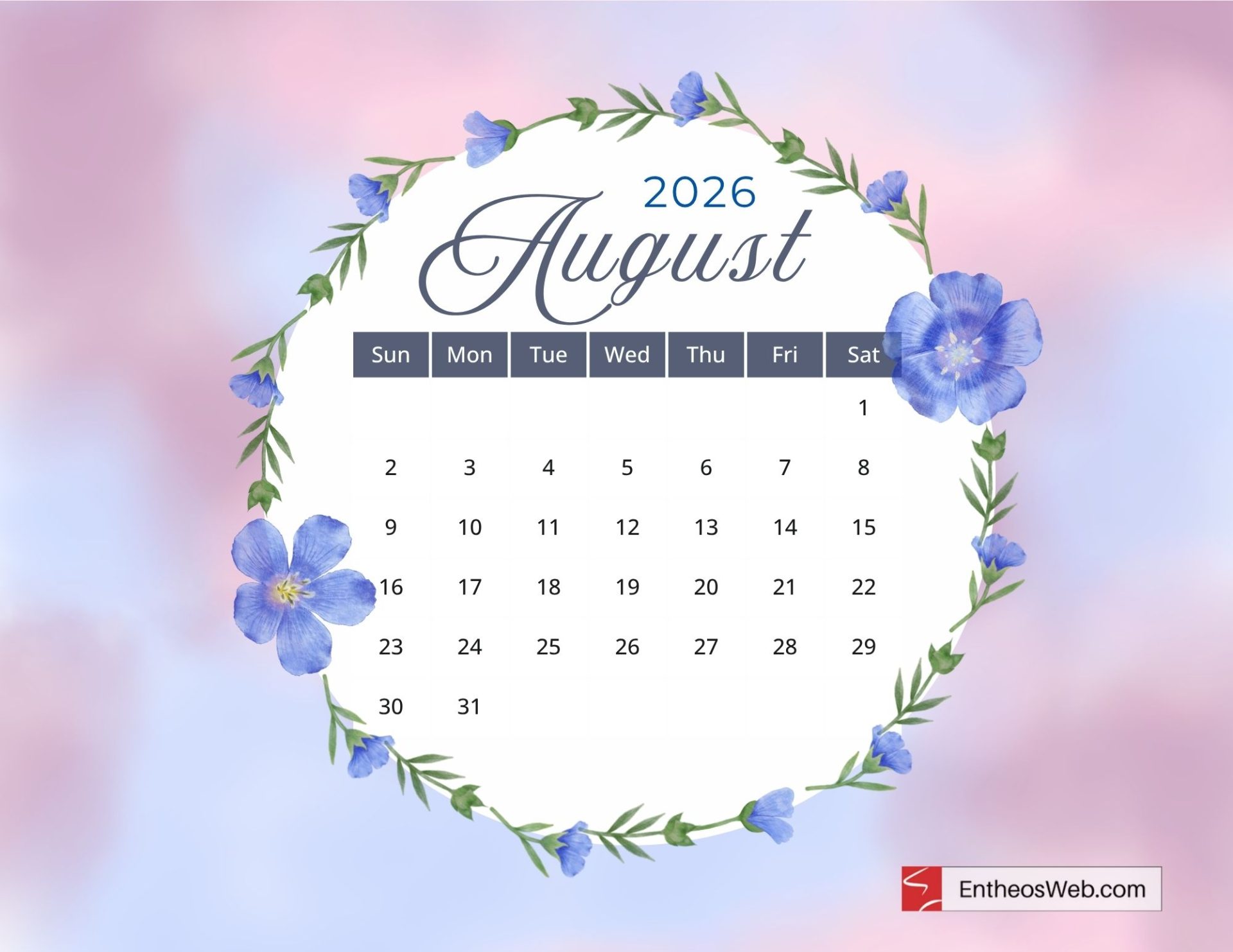 Stay organized and plan ahead with our beautifully designed free printable August 2026 calendars, available in convenient letter-size formats. This web page offers a collection of printable PDF and JPG calendar images, crafted by EntheosWeb, that you can easily download and use at home, in the office, or for personal projects. Whether you need a calendar for scheduling, tracking important dates, or simply adding a stylish touch to your workspace, these free printable calendars are both practical and visually appealing. Download your favorite design today and enjoy a simple, functional, and elegant way to manage your month.