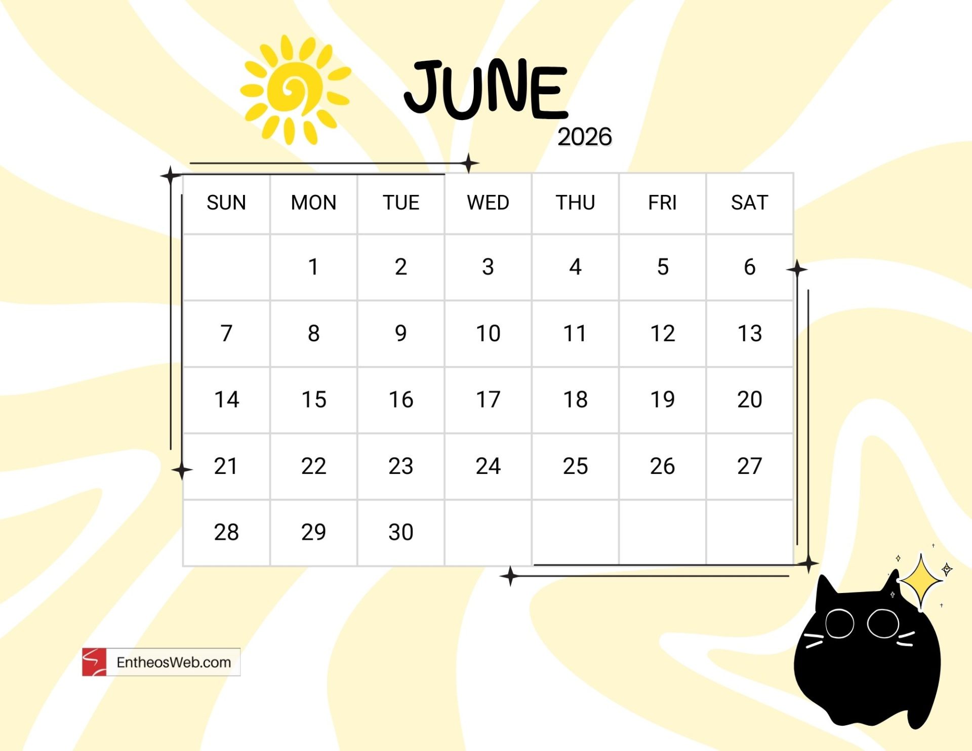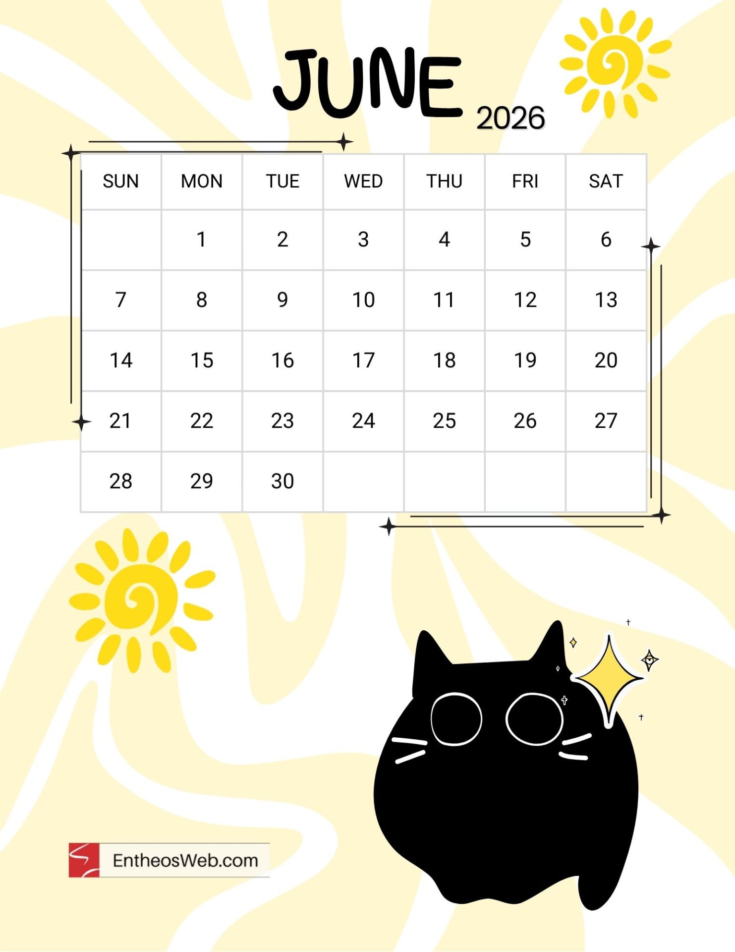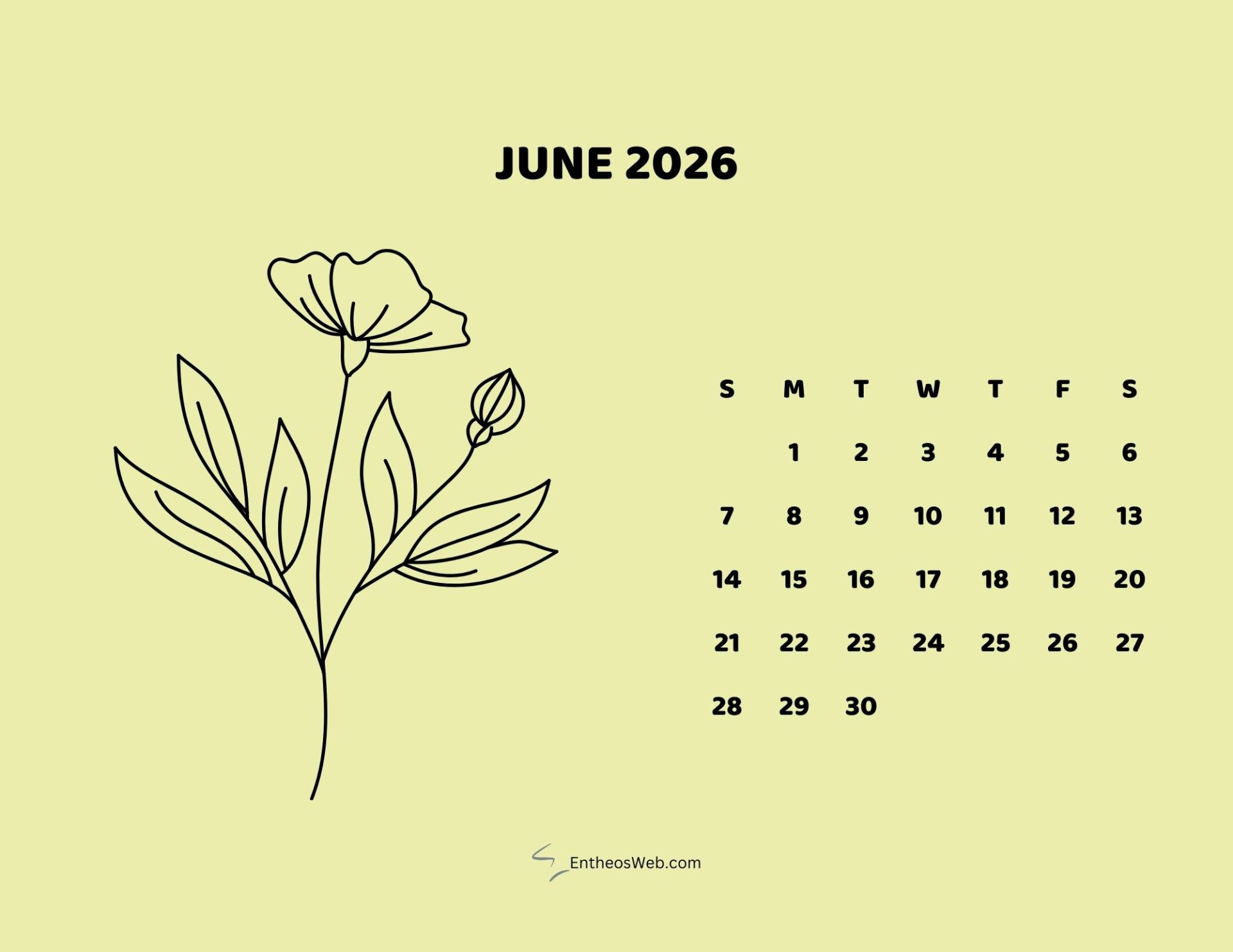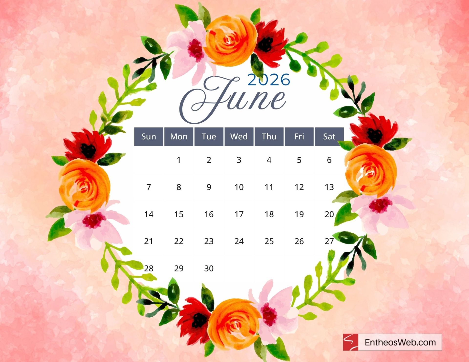 Discover our collection of June 2026 Calendar Printables, beautifully designed by EntheosWeb and available for free download. These printable calendars are perfect for organizing your month with style and ease, whether you need them for personal planning, office scheduling, or family activities. With clean layouts and practical designs, you can easily track important dates, appointments, and events throughout June 2026. Convenient to print and use at home or work, these calendars combine functionality with a touch of elegance, making them a helpful tool for staying on top of your schedule.