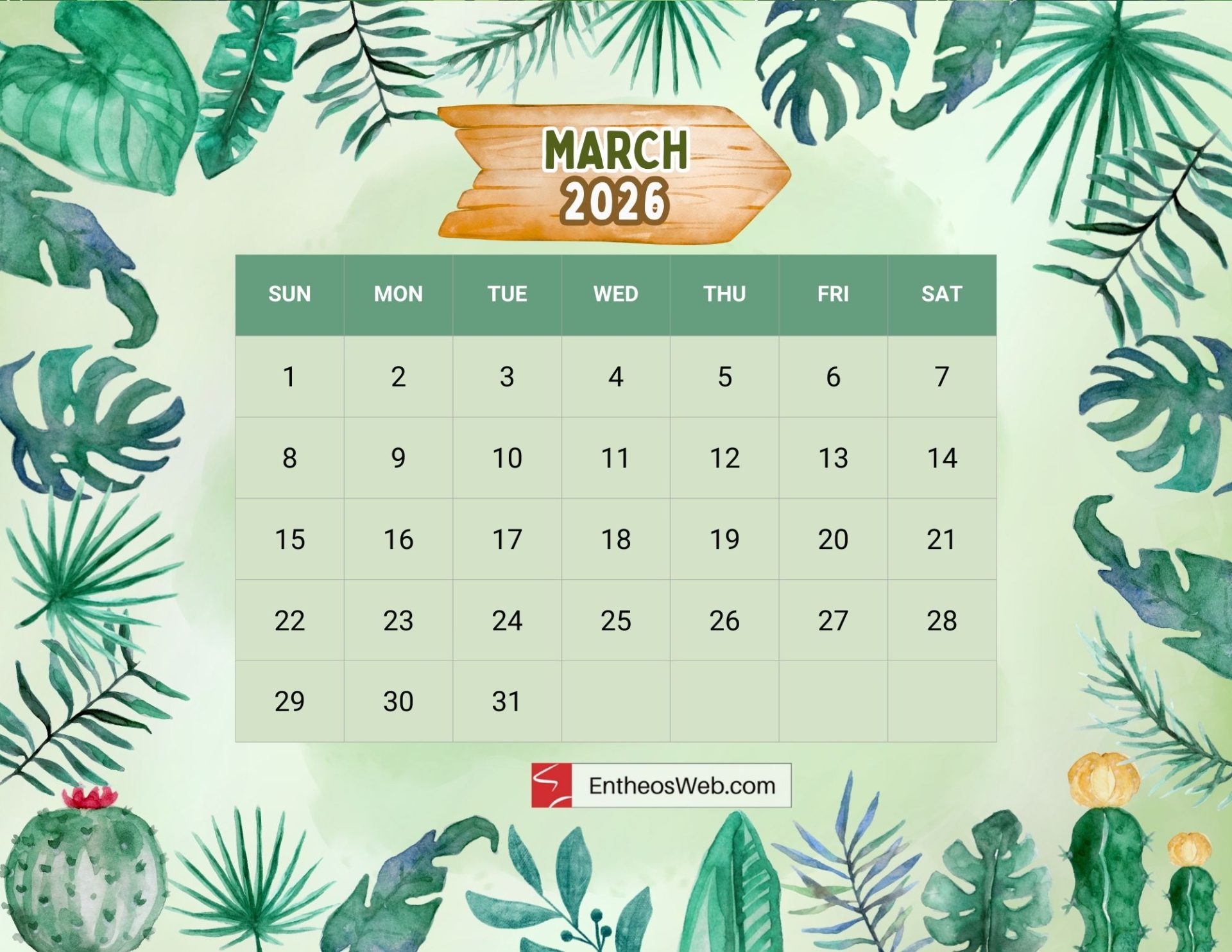 Discover our collection of March Free 2026 Printable Calendars, thoughtfully designed by EntheosWeb and available for free download. These printable calendars are perfect for organizing your schedule, planning important events, or simply keeping track of special dates throughout the month. With clean layouts and user-friendly designs, they can be easily printed and used at home, school, or the office. Whether you need a simple planner or a stylish monthly calendar, our printable March 2026 calendars provide a convenient and practical solution to help you stay on top of your plans.