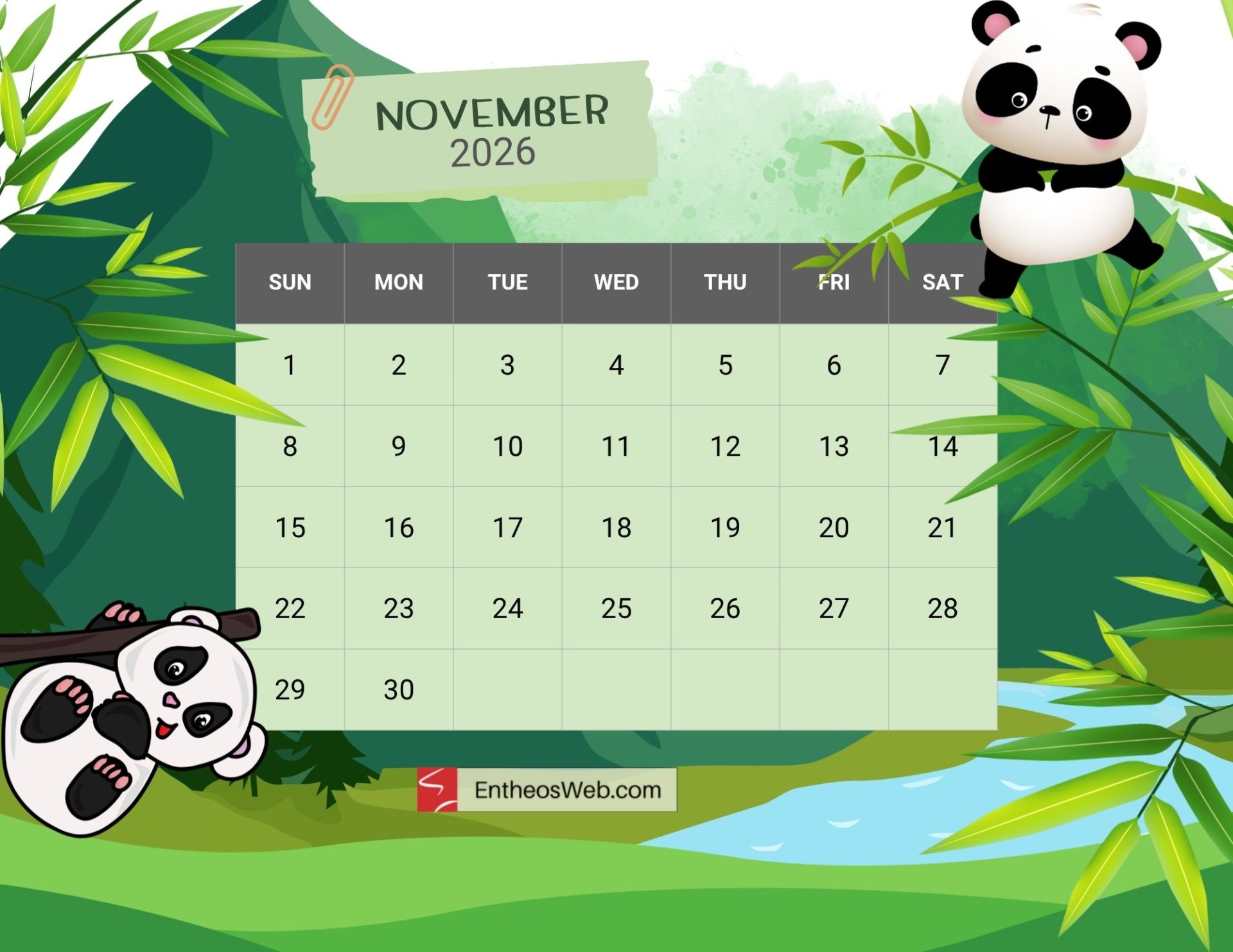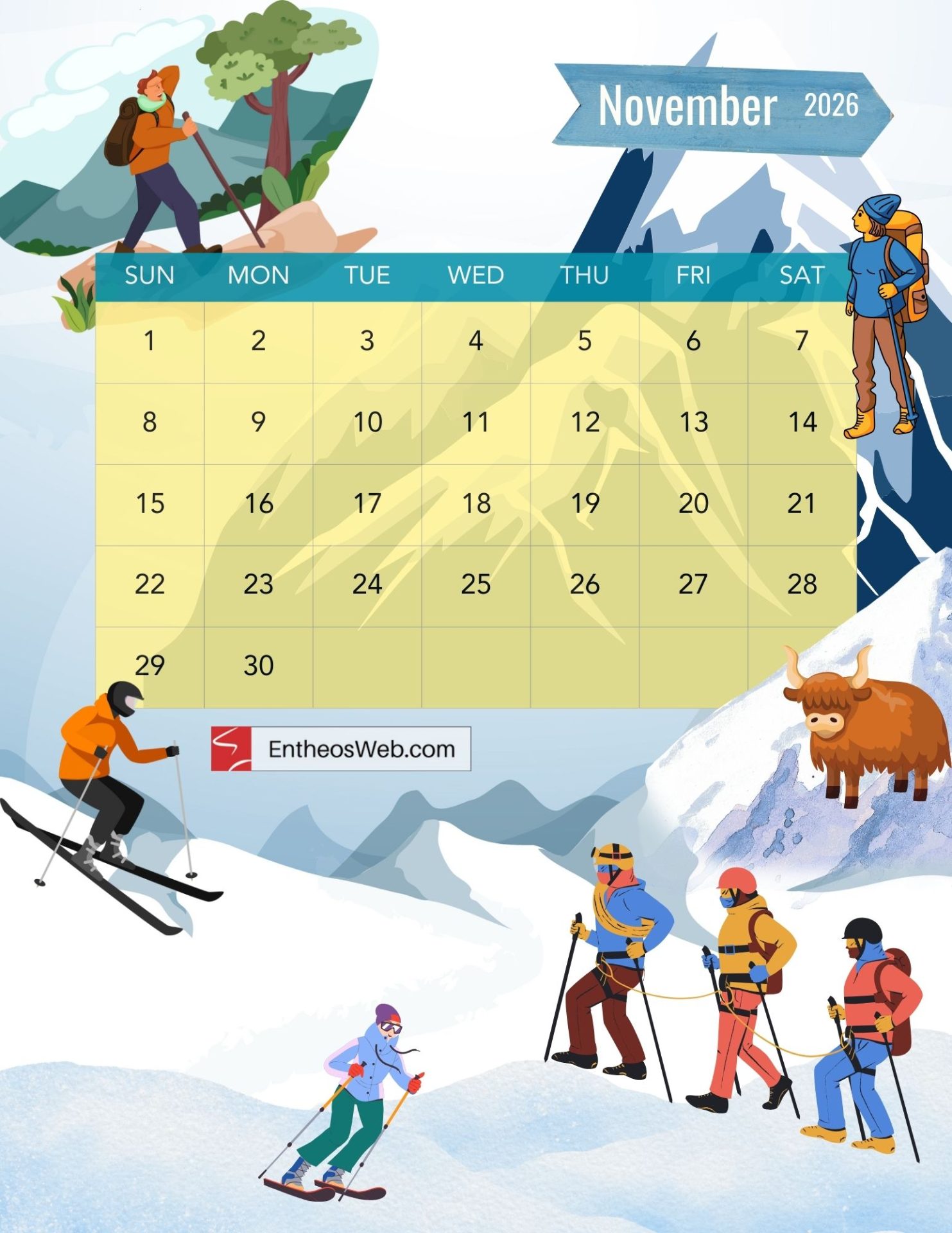 Get organized and plan ahead with our November Printable 2026 calendars, available in letter-size printable PDF and JPG formats for your convenience. Designed by EntheosWeb, these calendars feature clean and practical layouts that make scheduling, planning events, or tracking important dates simple and efficient. Whether you need a calendar for your home, office, or school, these free downloads are easy to print and ready to use. Stay on top of your tasks and make the most of your month with our beautifully designed, free November 2026 calendar printables.