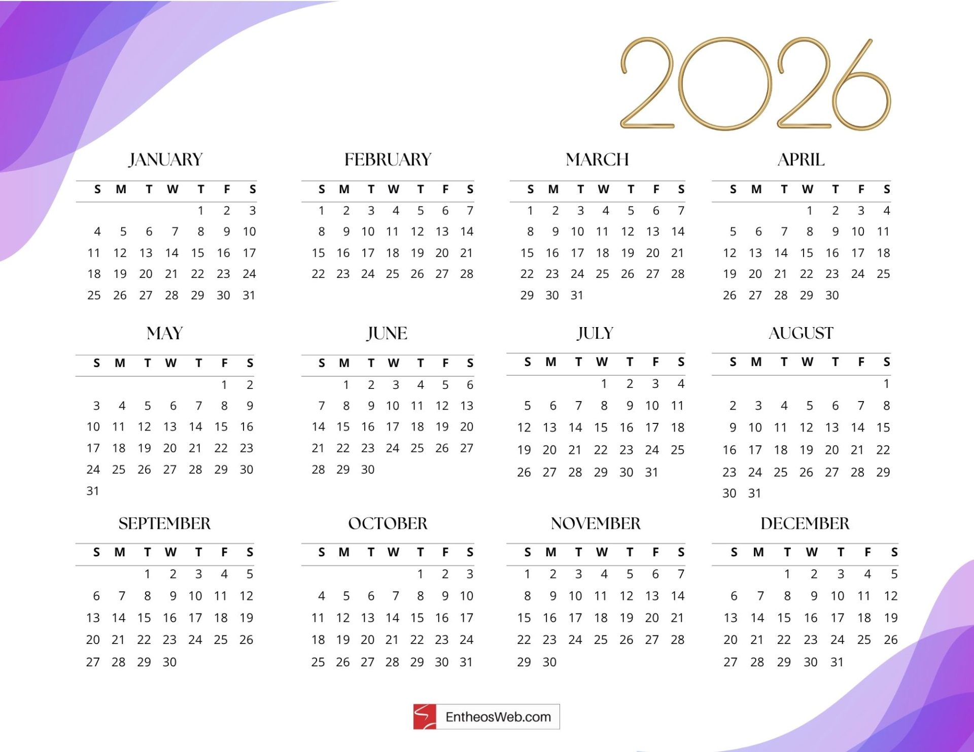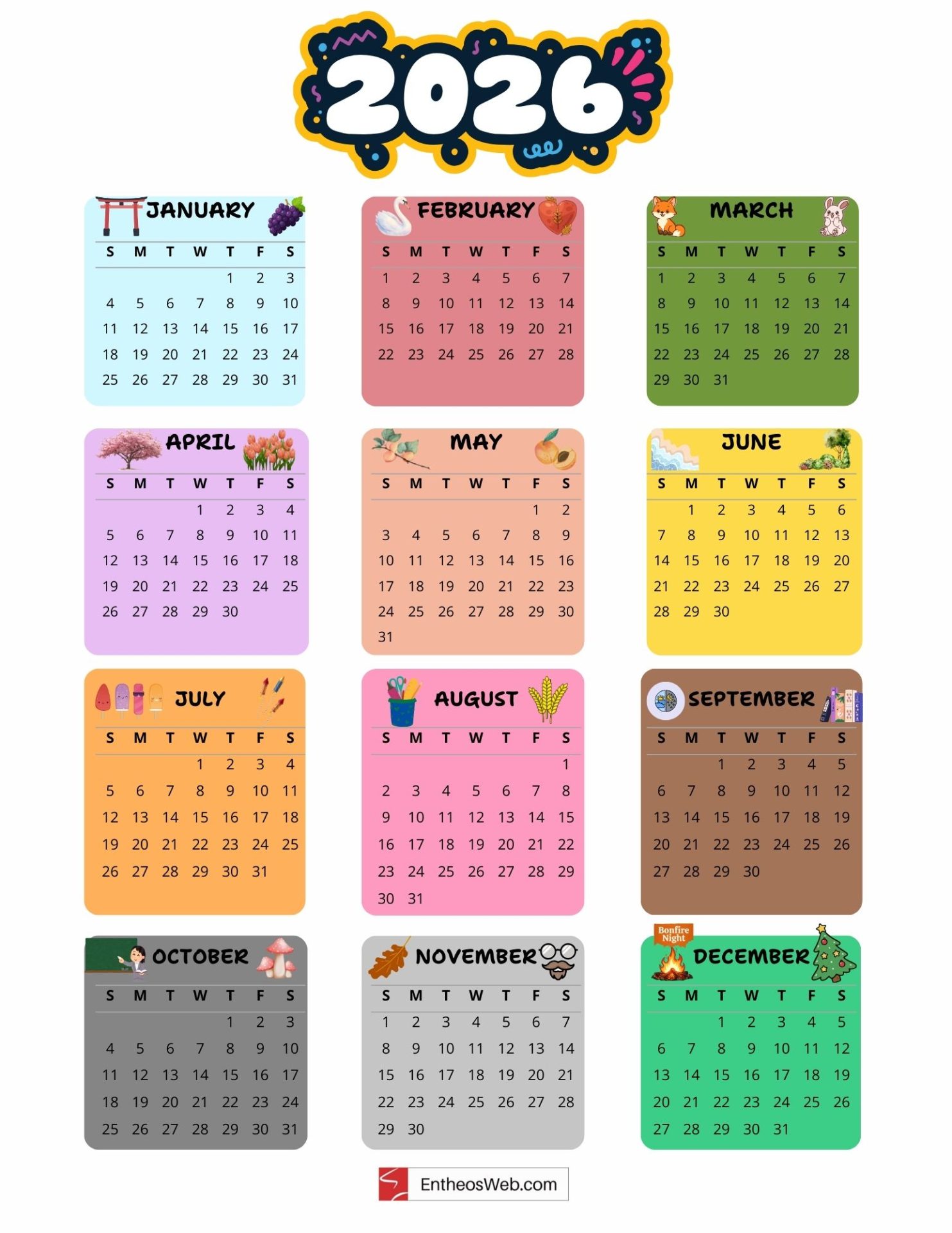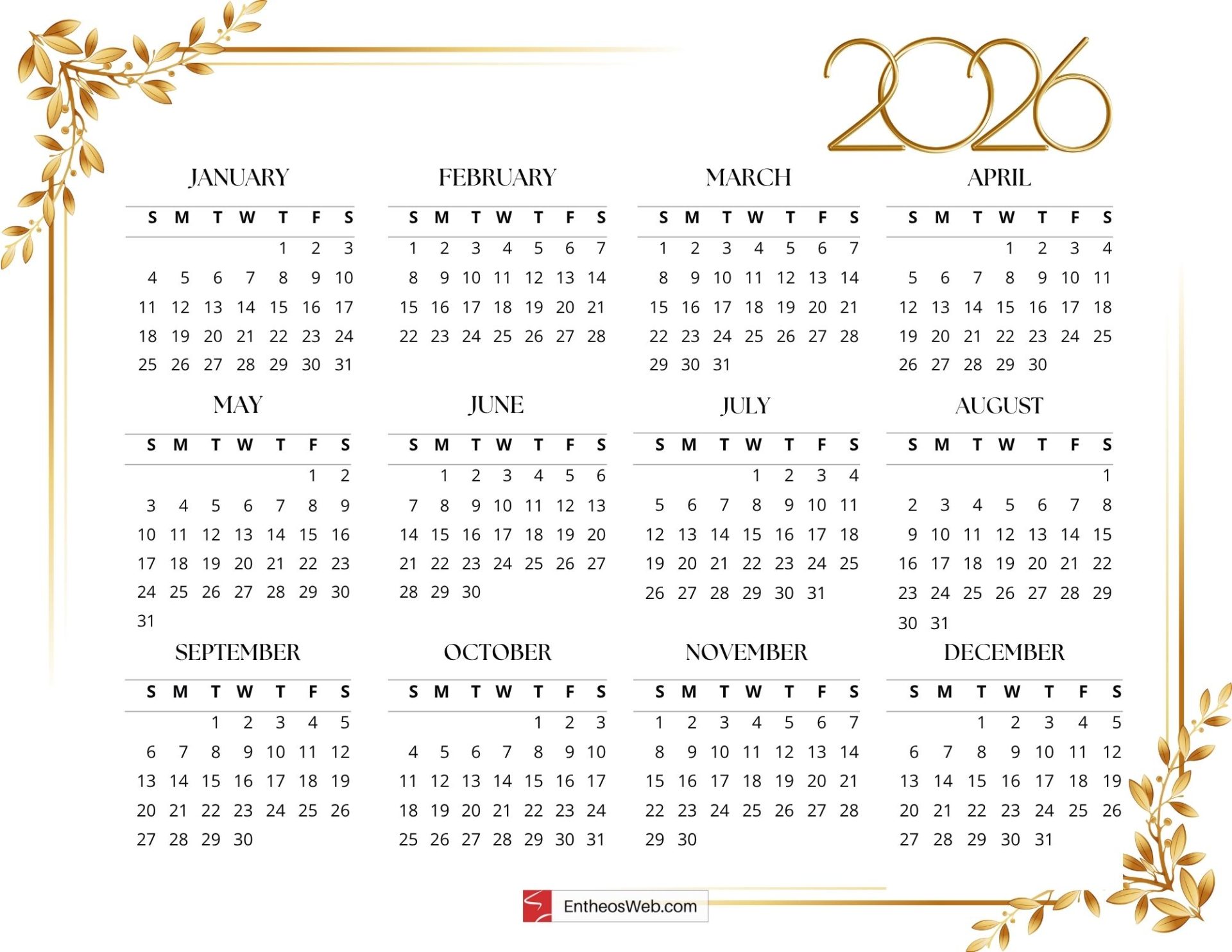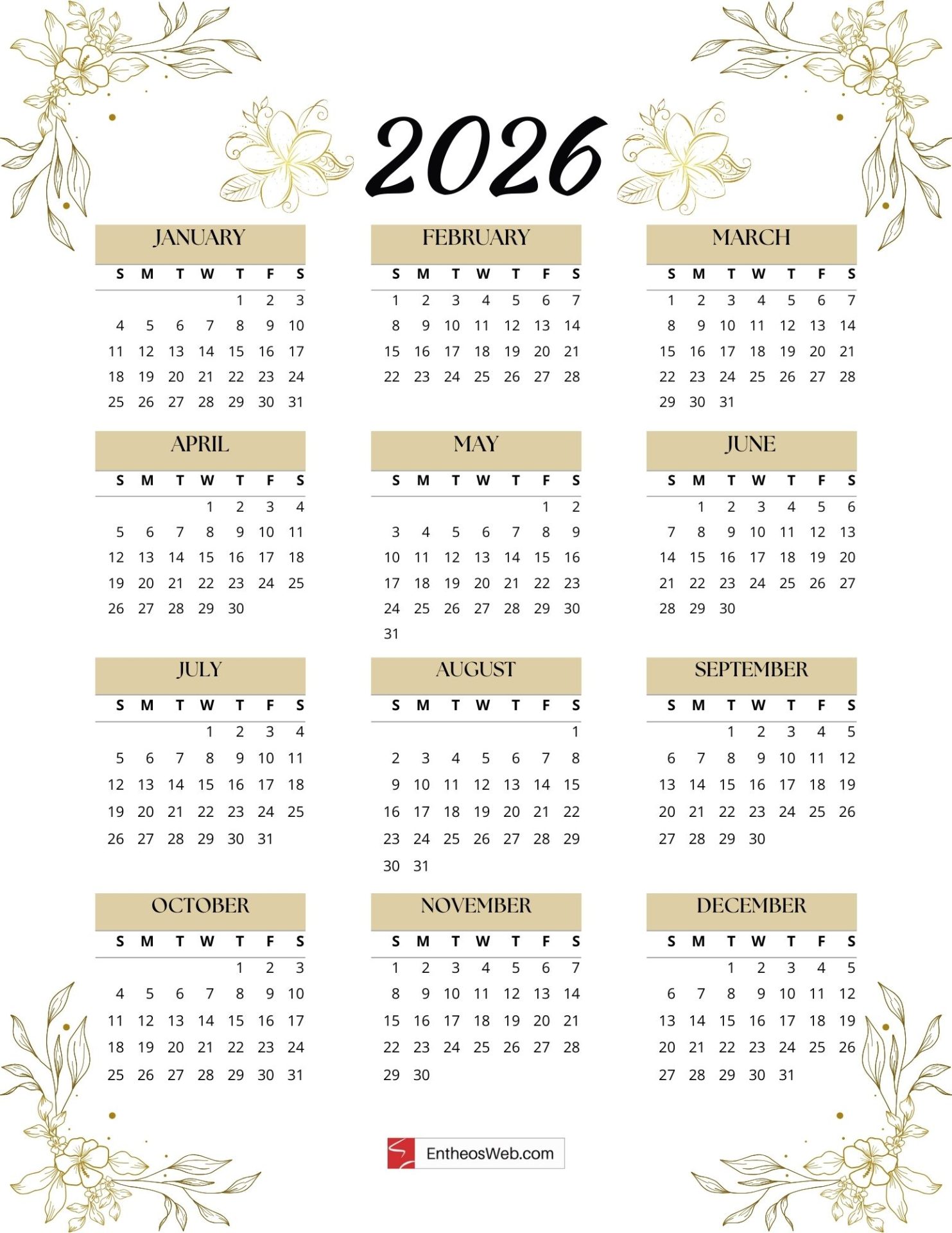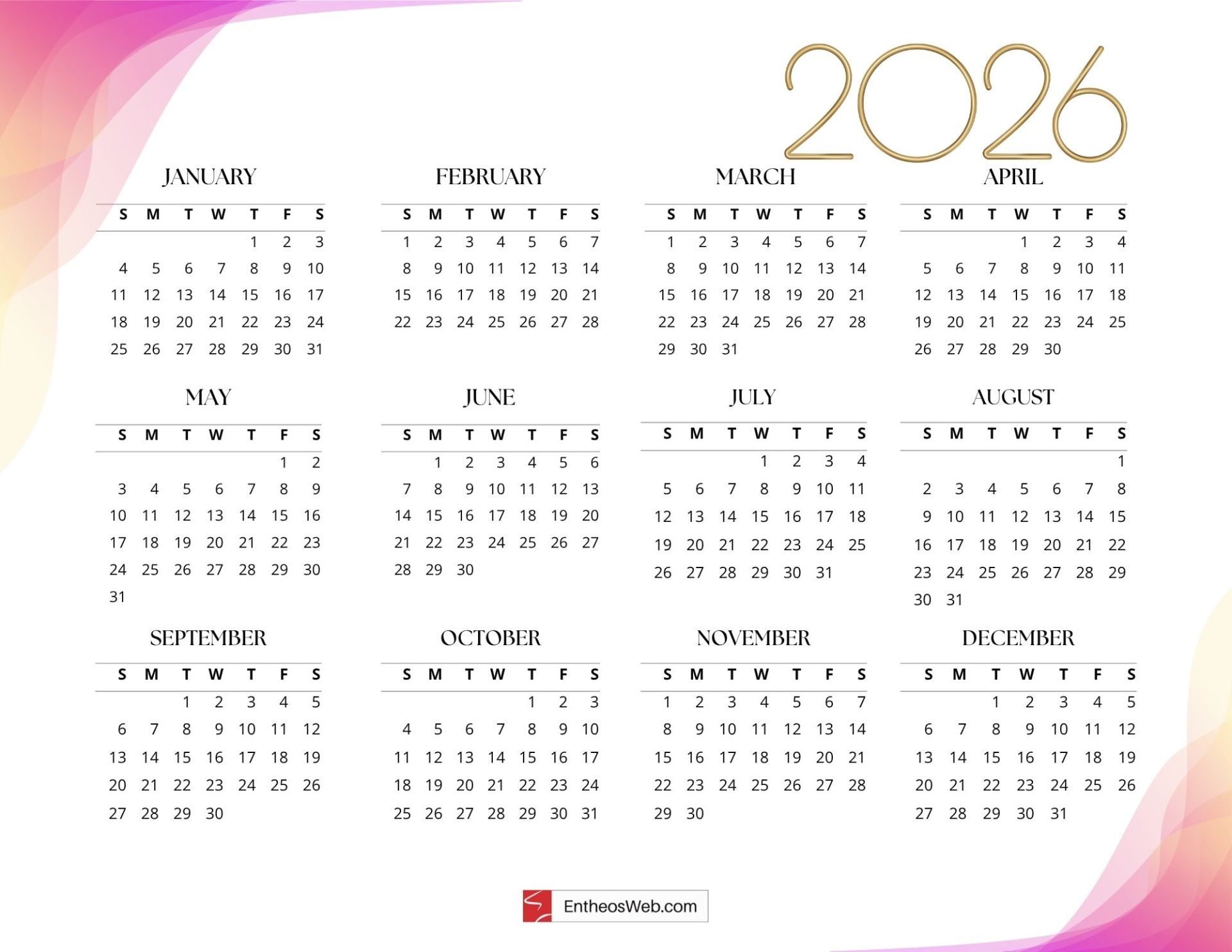Discover a charming collection of Full Year 2026 Calendars for Women & Girls, beautifully designed by EntheosWeb and available as a single-page printable for easy use. Featuring feminine themes, elegant colors, and inspiring layouts, these one-page calendars are available in Letter size and Poster size and are perfect for planners, home organization, study desks, or office walls. Enjoy a stylish and practical way to plan your year—free to download and print in JPG and PDF formats that bring both beauty and functionality to your daily scheduling.