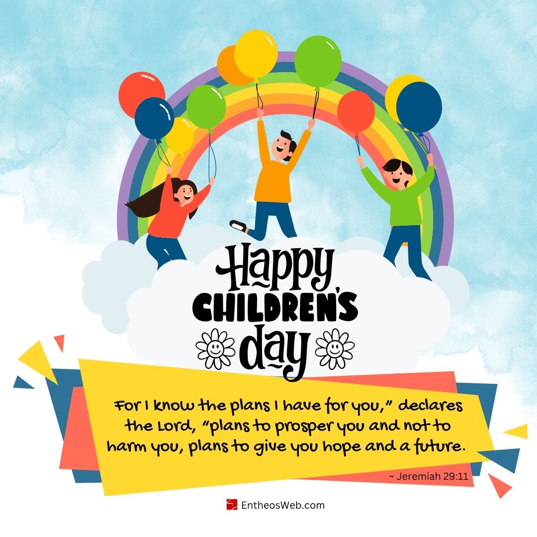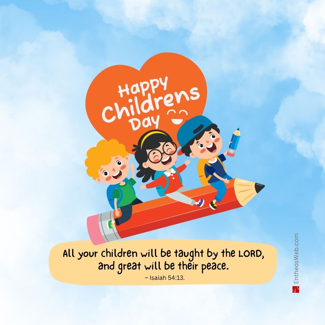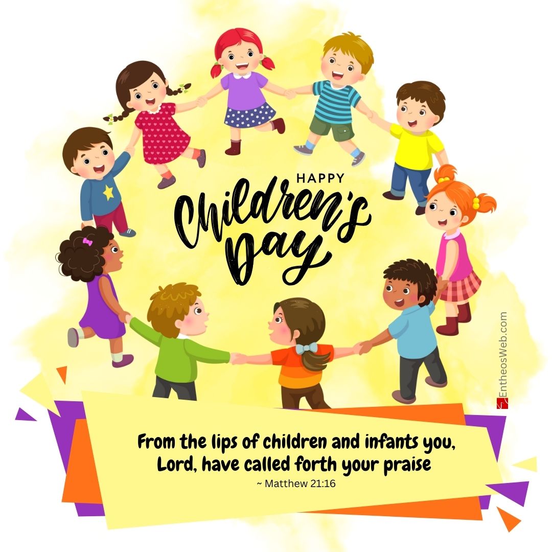 Celebrate the joy and innocence of childhood with our heartfelt collection of Happy Children’s Day Wishes with Bible Verses, beautifully designed by EntheosWeb and available for free download. These inspiring images combine warm wishes with uplifting scriptures, making them perfect for sharing on social media, sending to loved ones, or using in Sunday school and church events. Each design is created to honor and bless the little ones with God’s love and promises. Browse the collection and download your favorite images to spread joy and encouragement this Children’s Day!