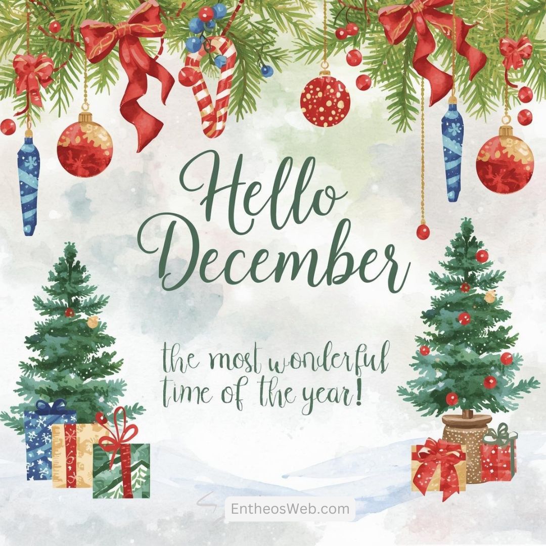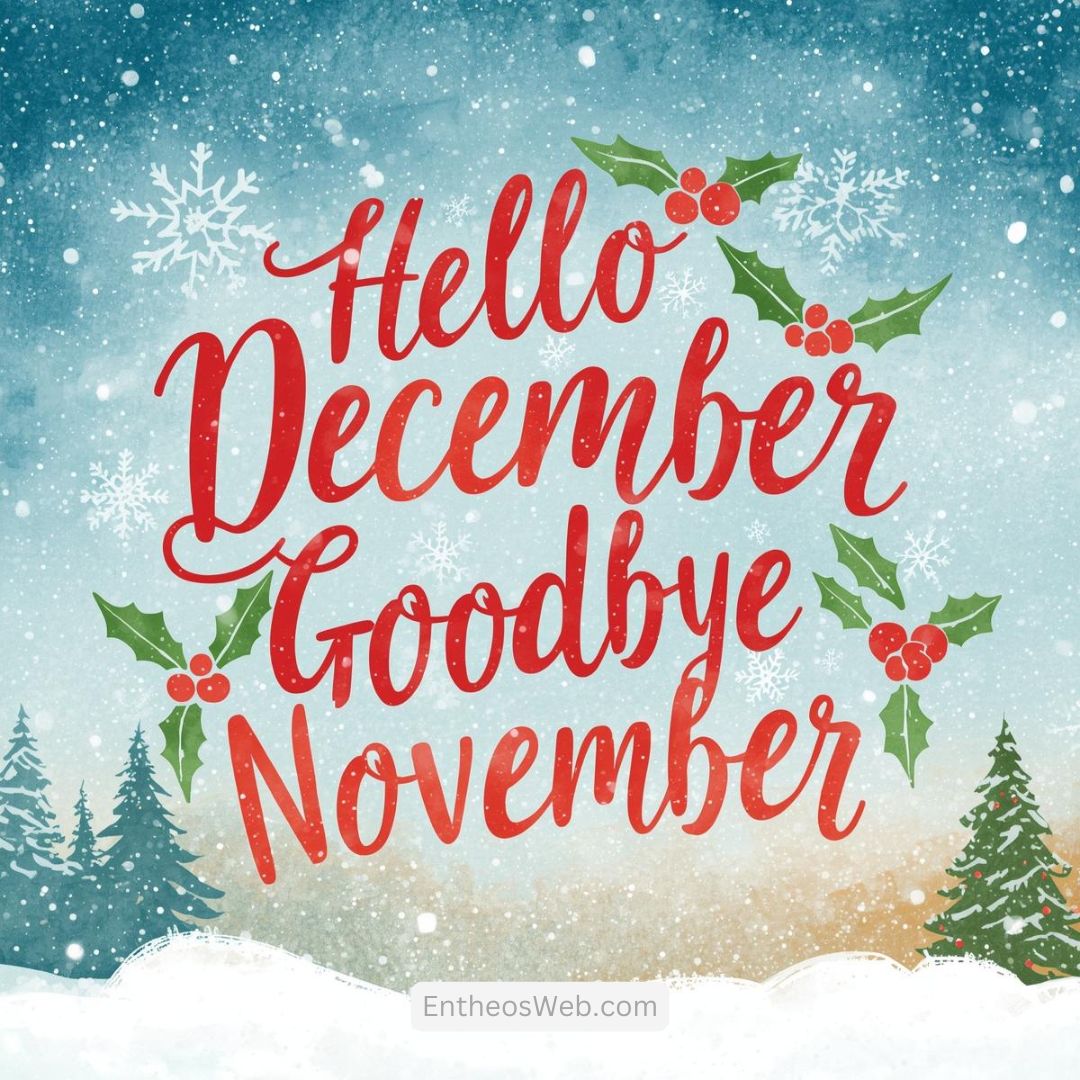 Celebrate the magic of the season with our beautifully designed Hello December images! Featuring festive messages like “Hello December,” “Goodbye November, Hello December,” and “Hello December – The Most Wonderful Time of the Year!”, these images are perfect for sharing on social media, using as wallpapers, or adding a touch of holiday cheer to your projects. Designed with creativity and warmth by EntheosWeb, these images capture the spirit of December in style — and they’re available for free download. Spread joy and welcome the most wonderful time of the year with our delightful December-themed designs!