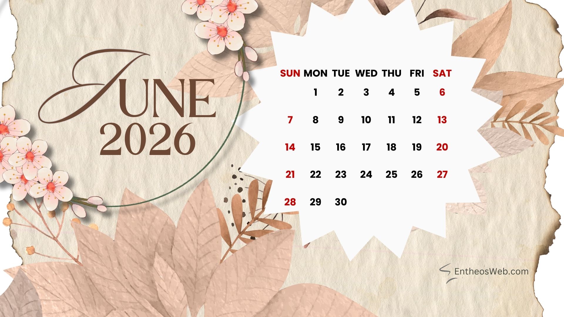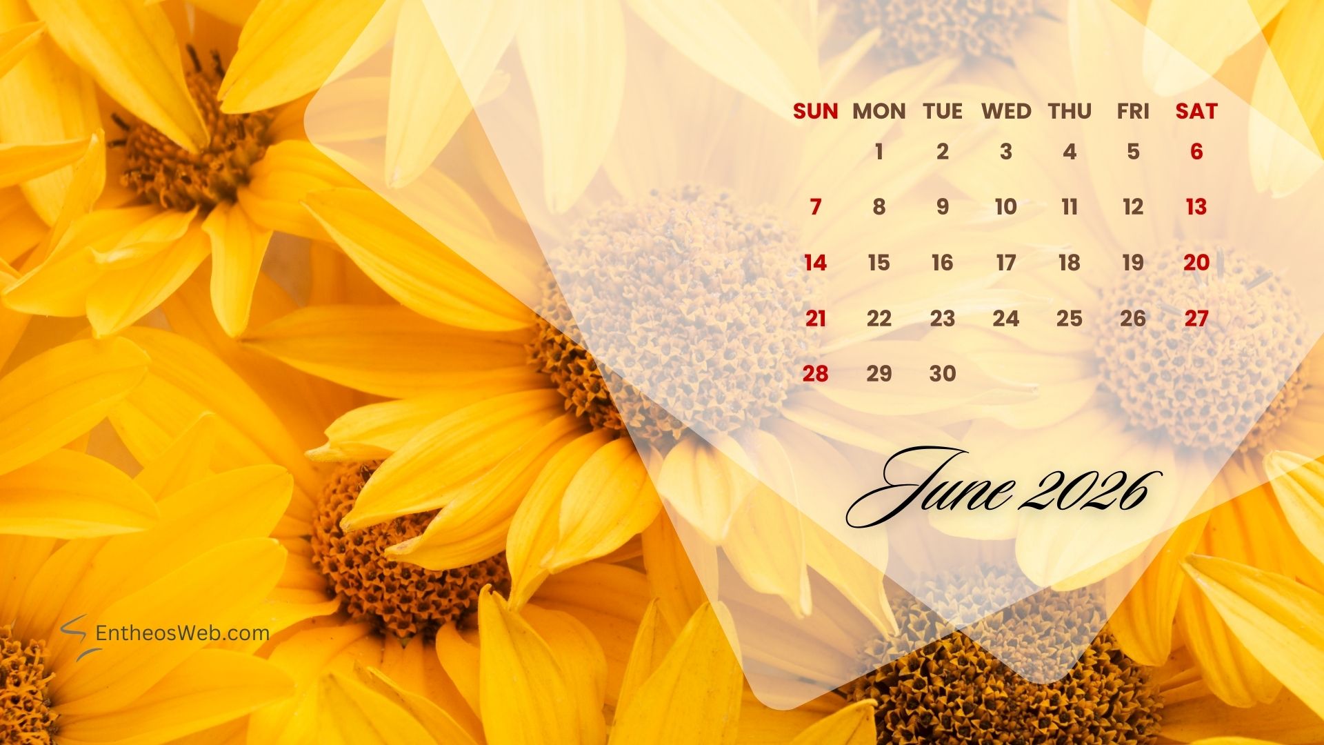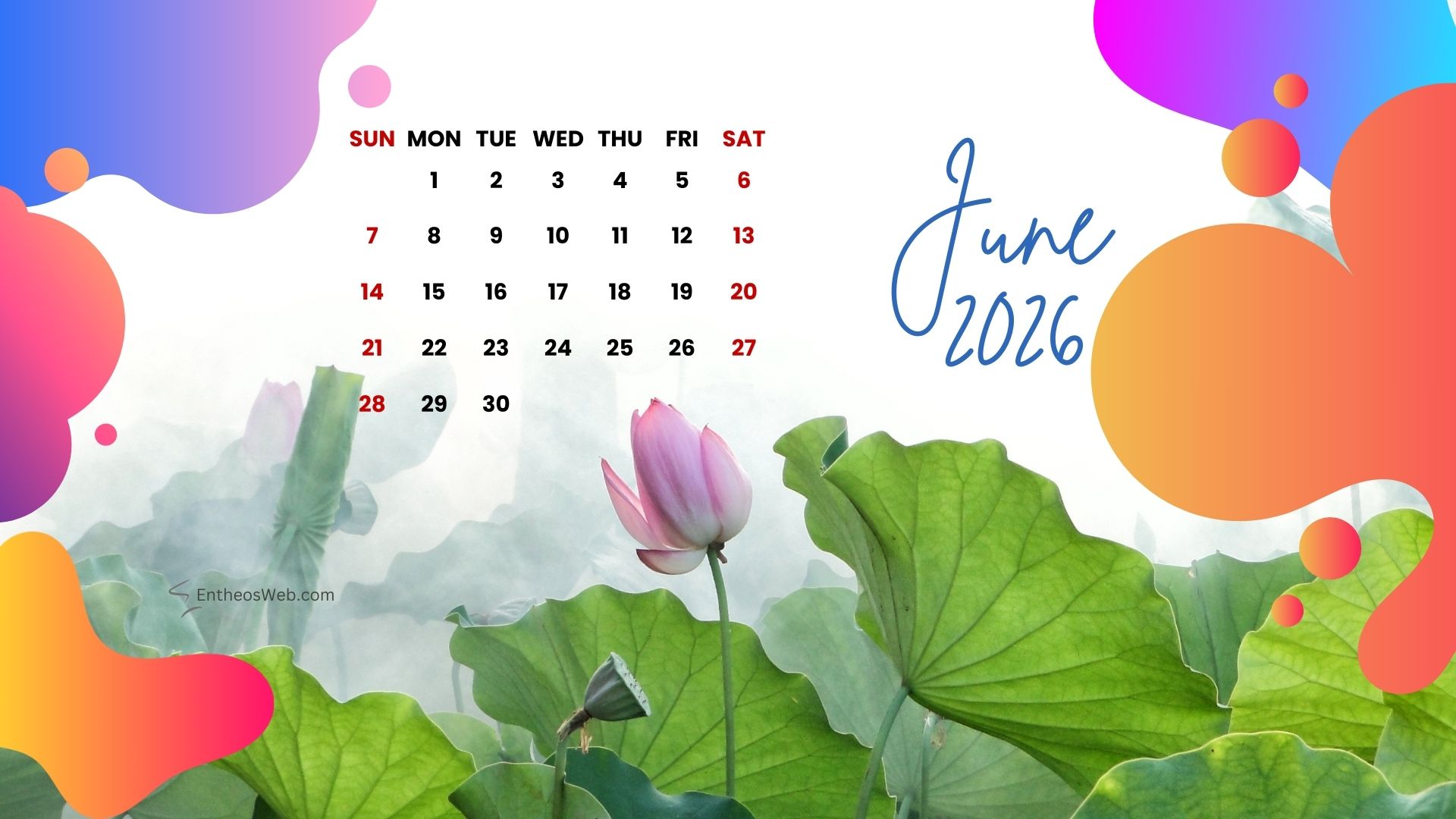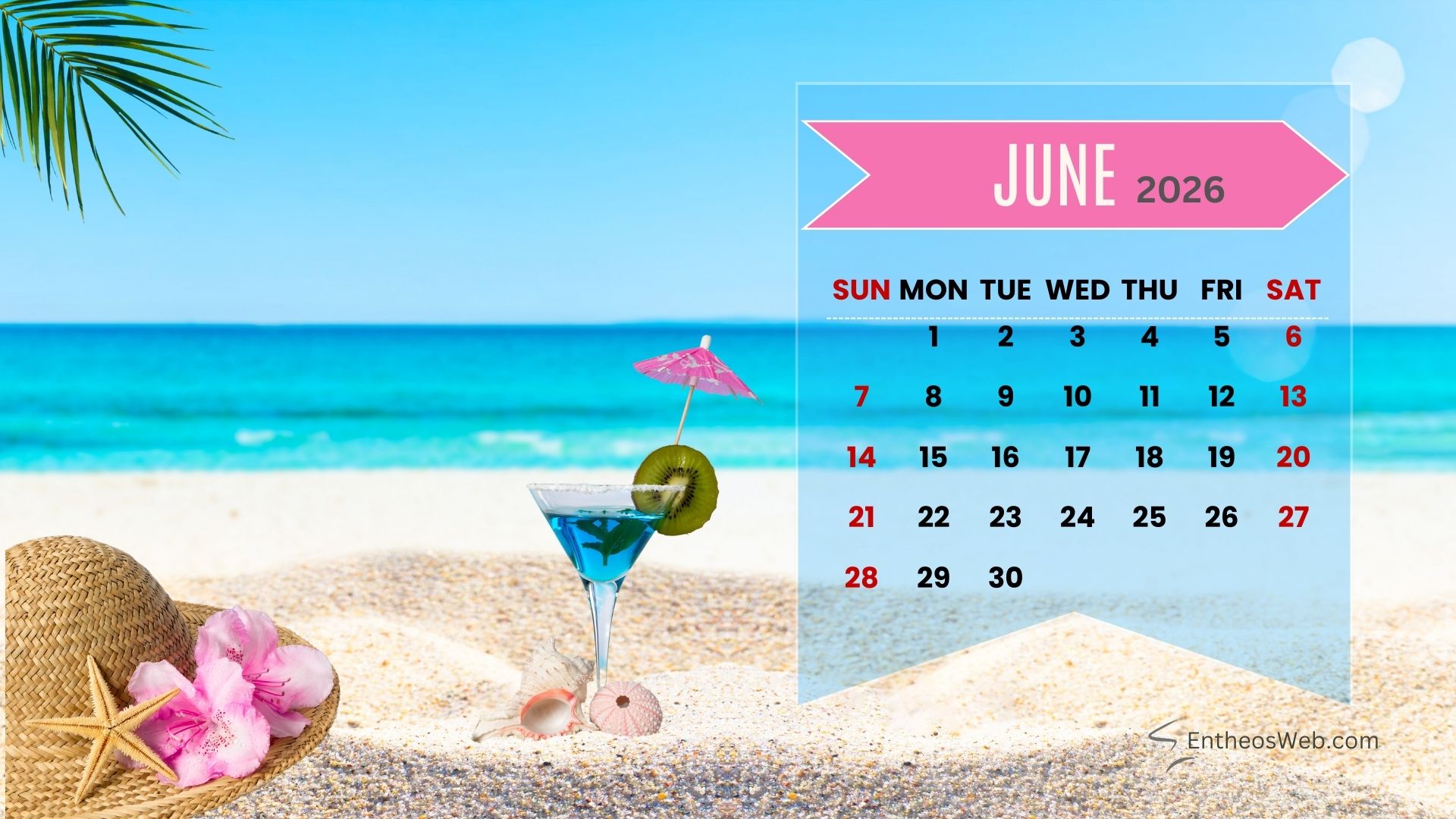 Welcome summer to your screen with the June 2026 Desktop Wallpaper Calendar. Designed for easy month-at-a-glance planning, this desktop wallpaper blends a clean layout with a fresh seasonal aesthetic. Perfect for home or office use, it keeps your schedule visible and your workspace looking stylish throughout June 2026.