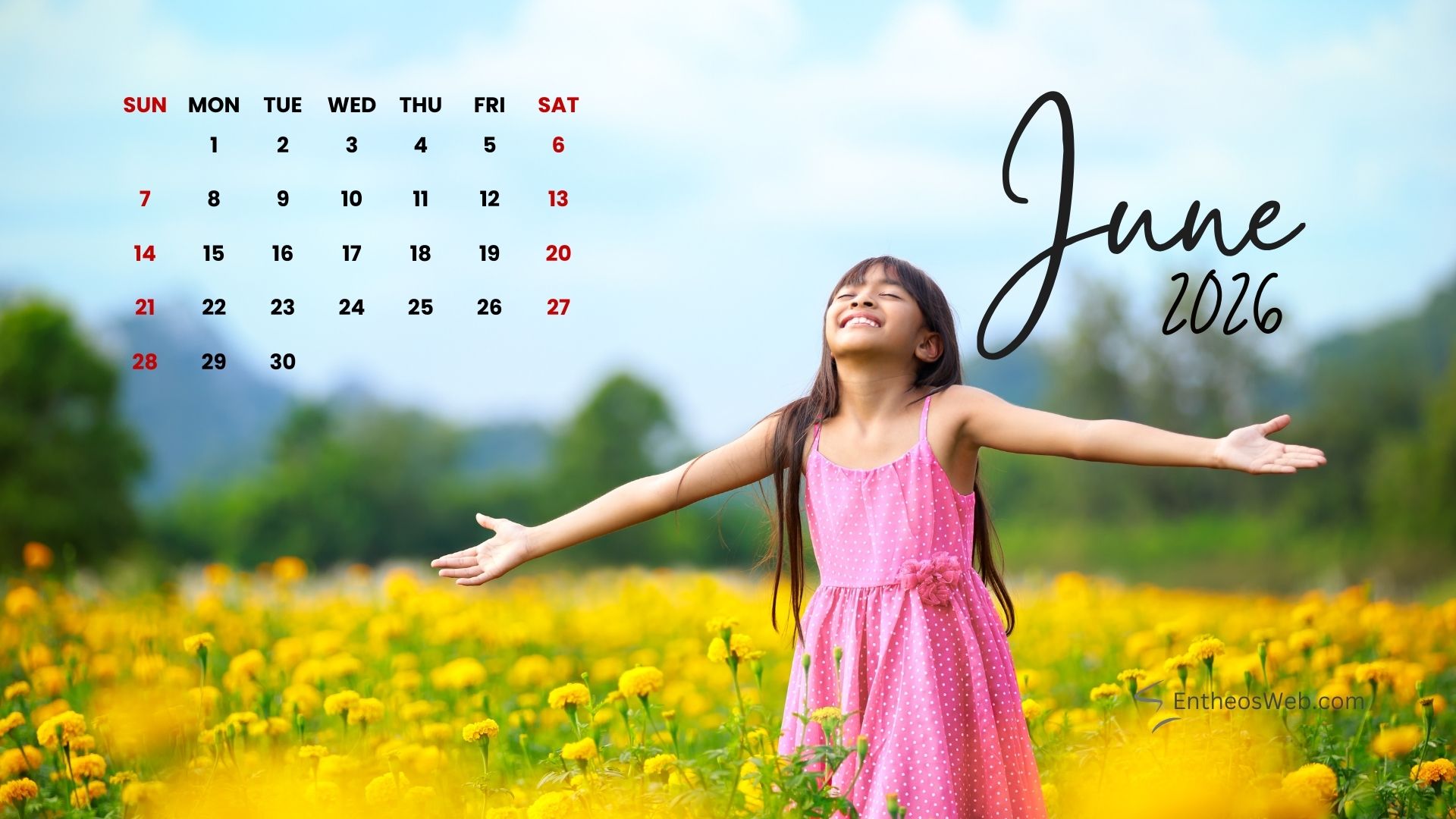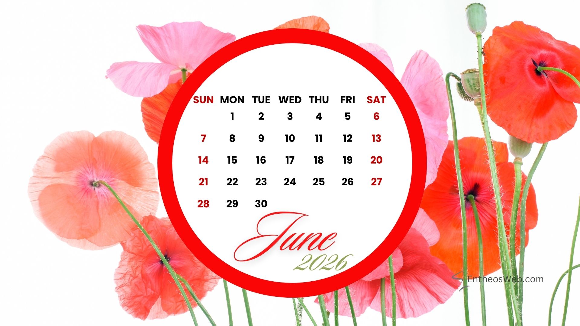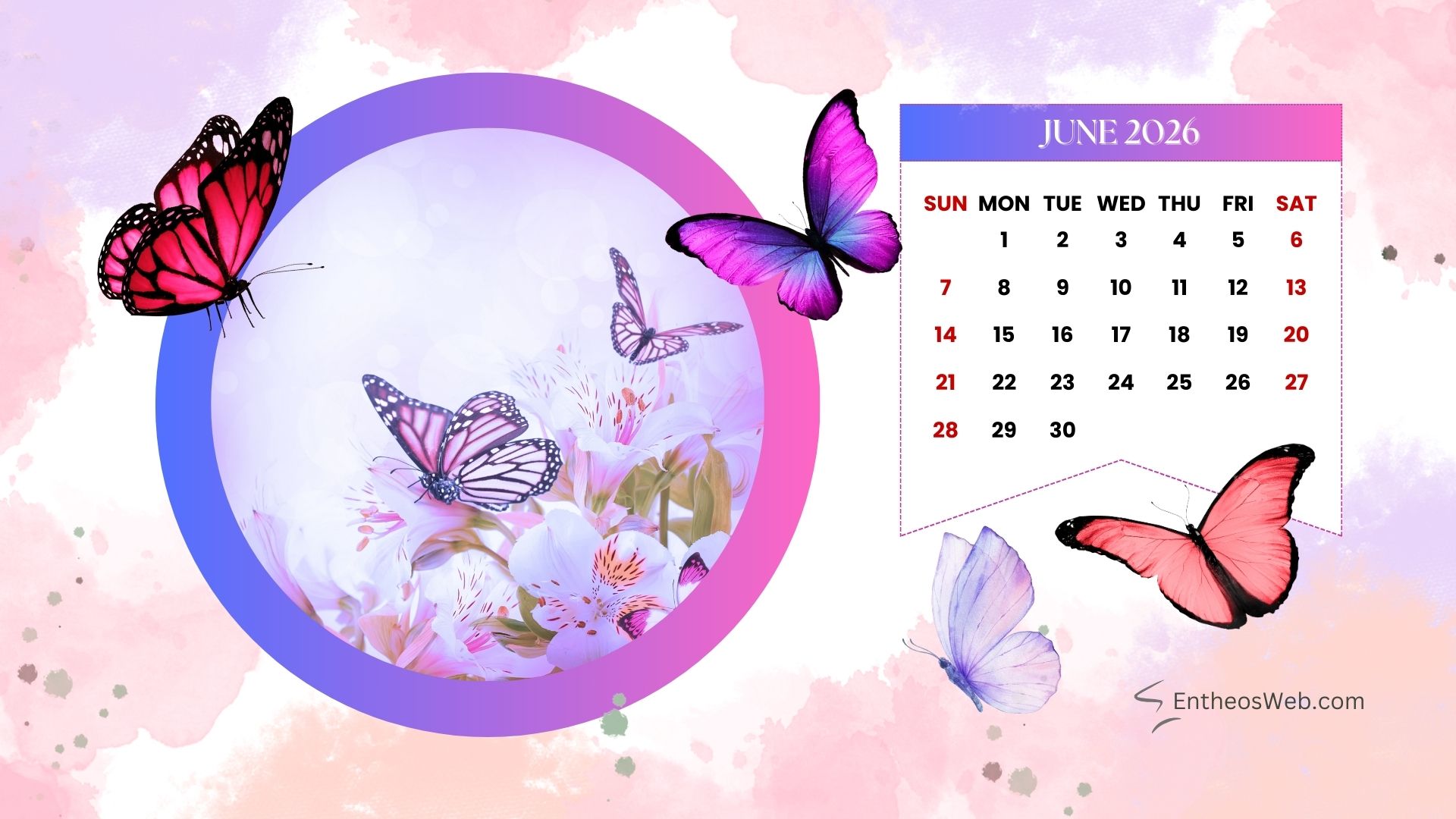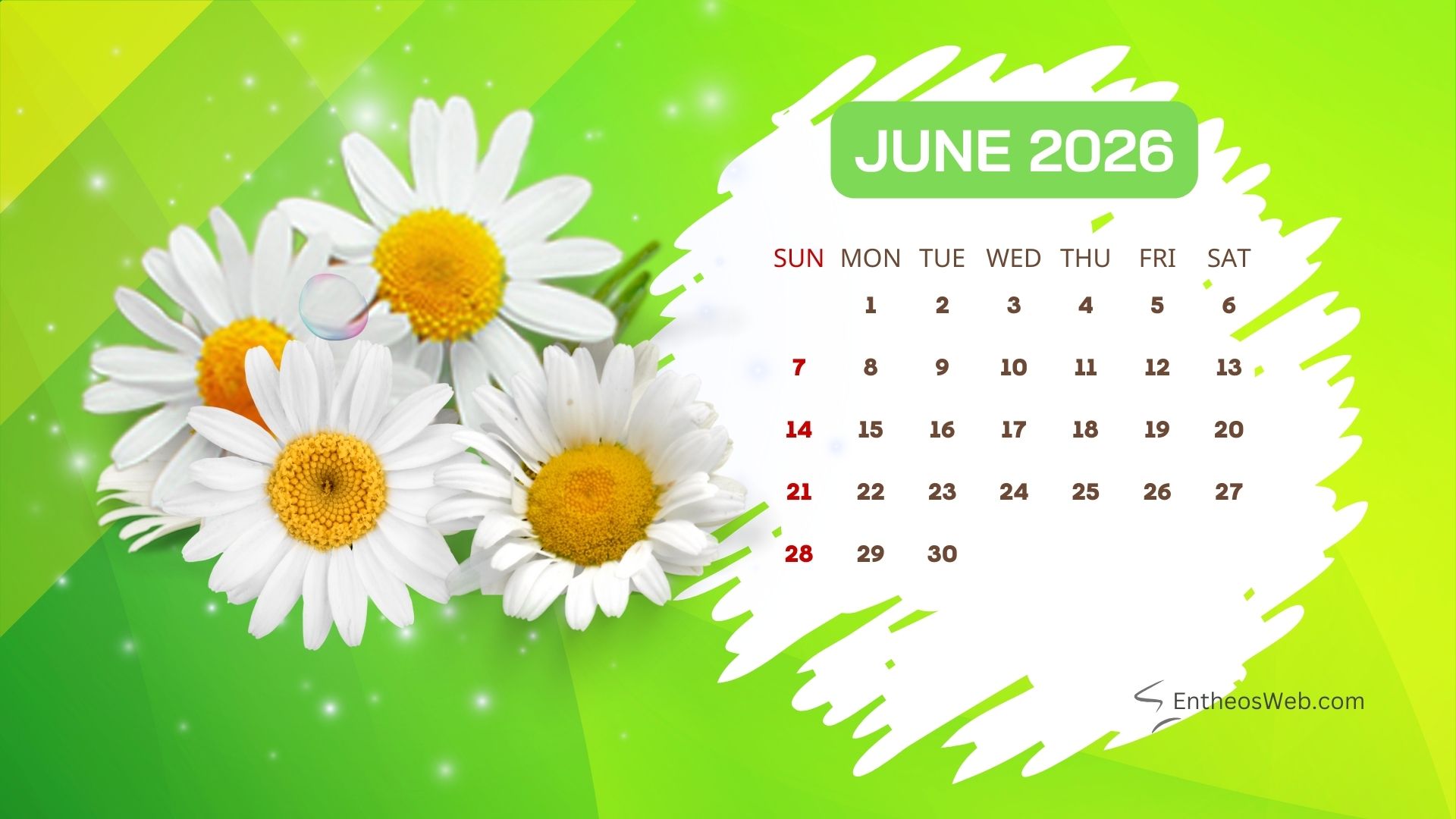 Welcome summer to your screen with the June 2026 Desktop Wallpaper Calendar. Designed for easy month-at-a-glance planning, this desktop wallpaper blends a clean layout with a fresh seasonal aesthetic. Perfect for home or office use, it keeps your schedule visible and your workspace looking stylish throughout June 2026.
