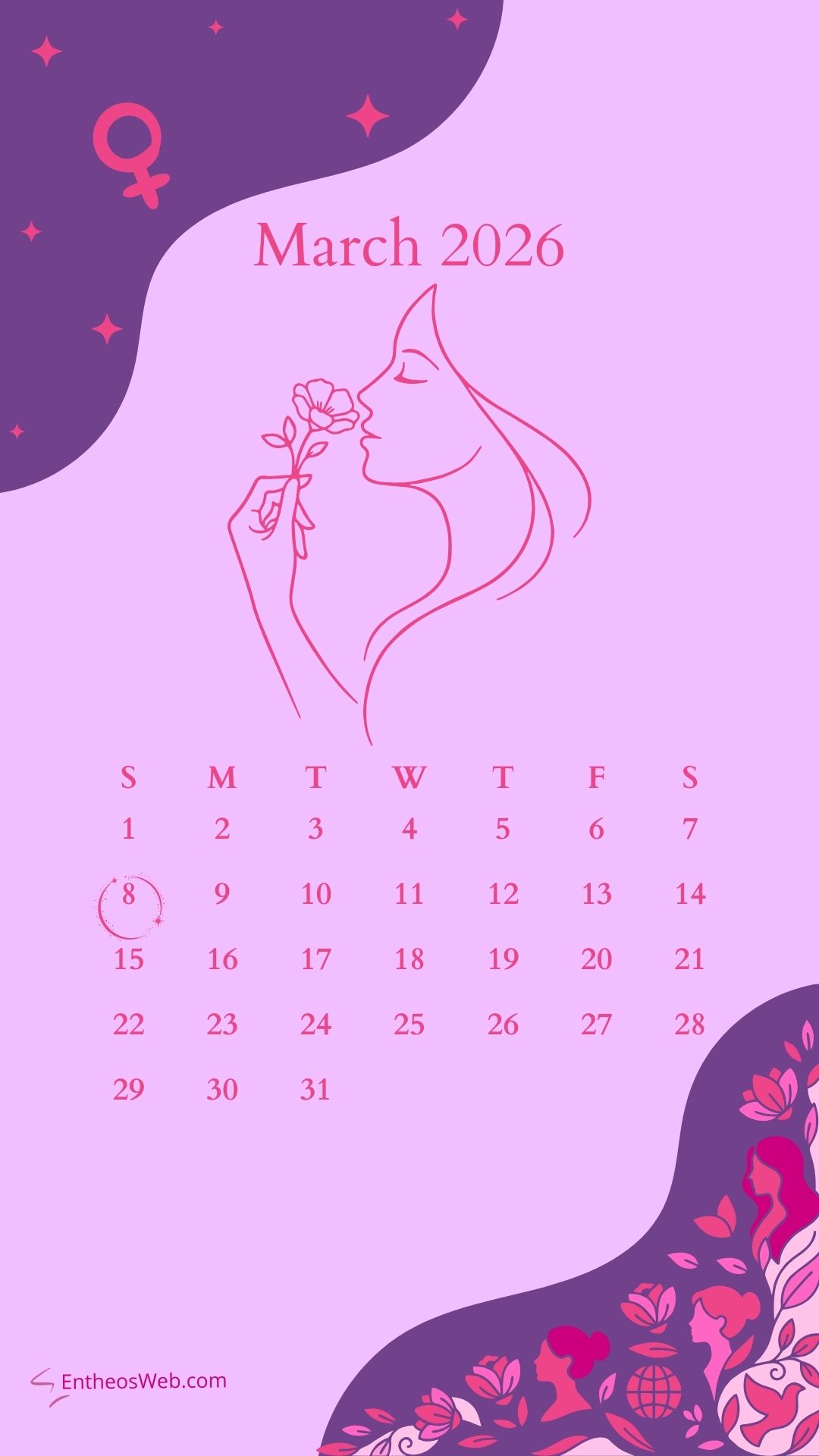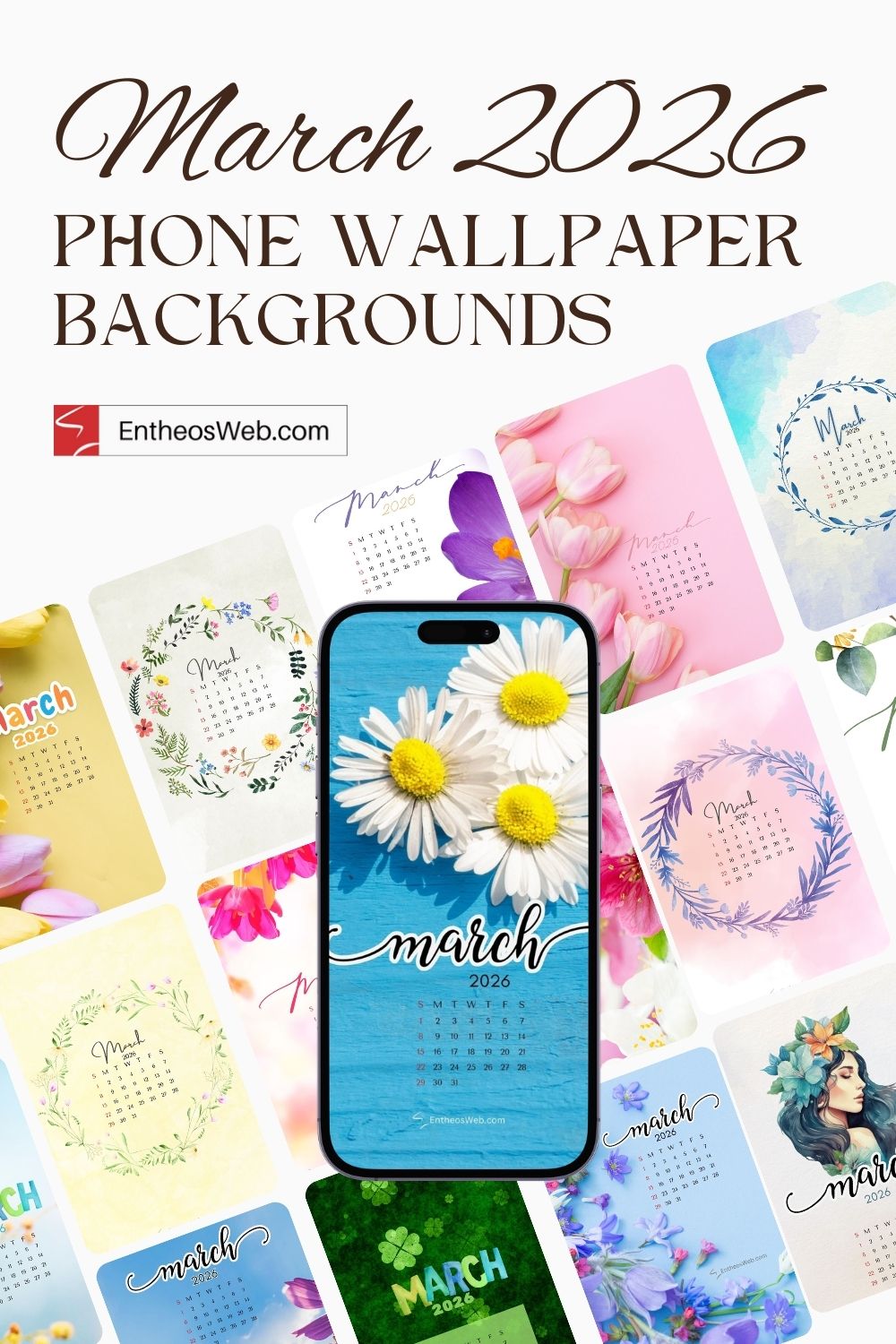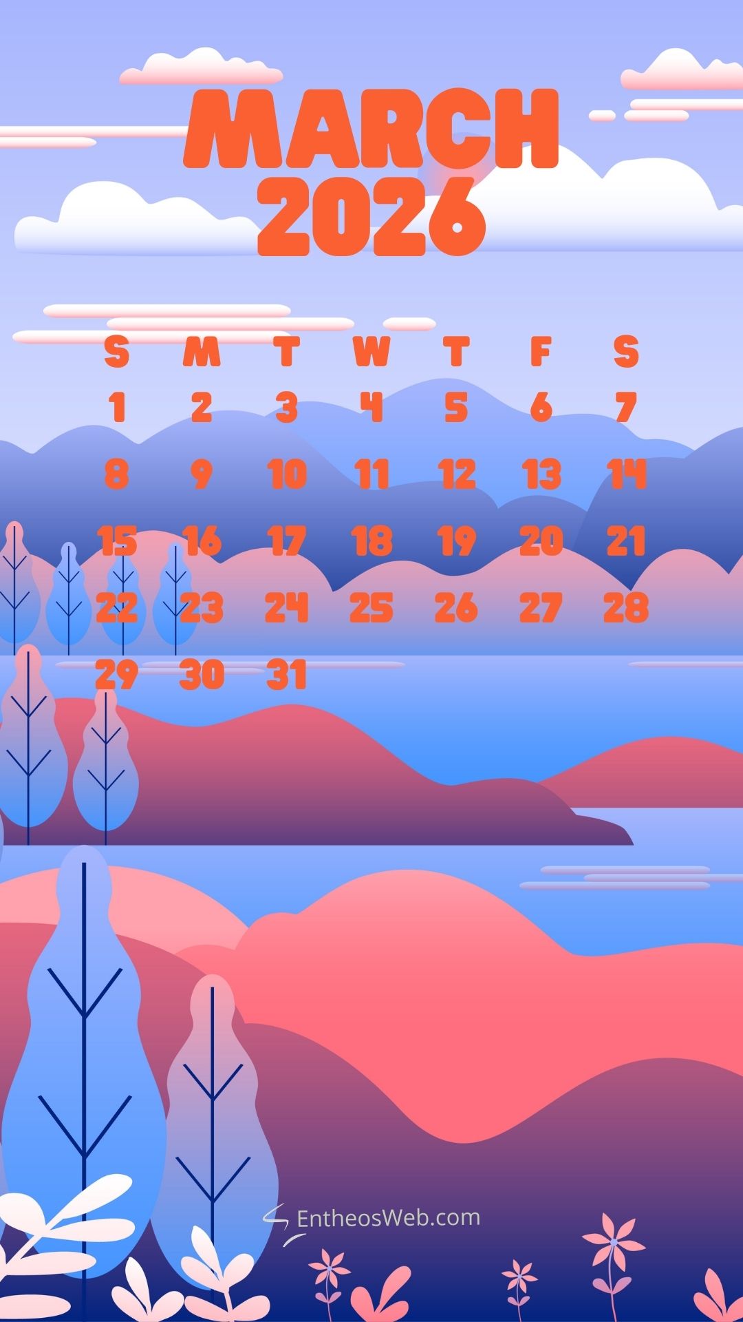 Step into a new month with the March 2026 Phone Calendar Wallpaper designed by EntheosWeb, created to keep you organized in style. Theses beautifully crafted phone calendar wallpapers display the full March 2026 calendar in a clean, easy-to-read layout, making it perfect for quick date checks and daily planning. Designed to fit modern smartphones, it combines practicality with an attractive design that enhances your home or lock screen. Download a March 2026 Phone Calendar Wallpaper by EntheosWeb for free and add a fresh, organized look to your phone all month long.