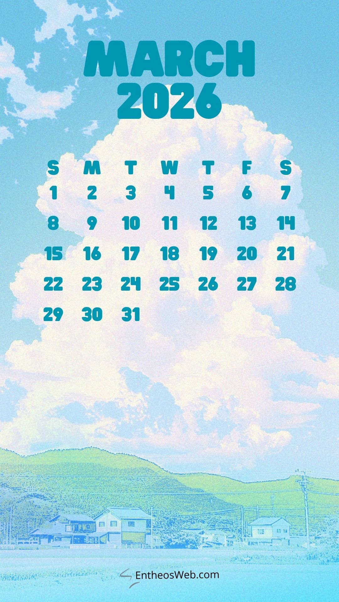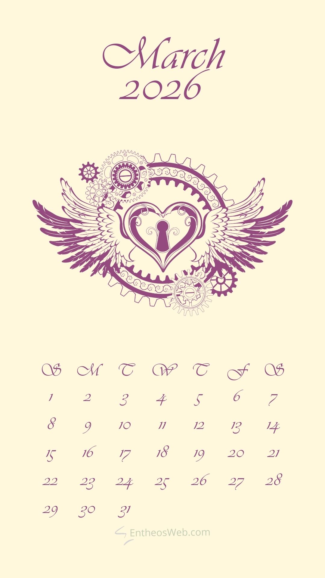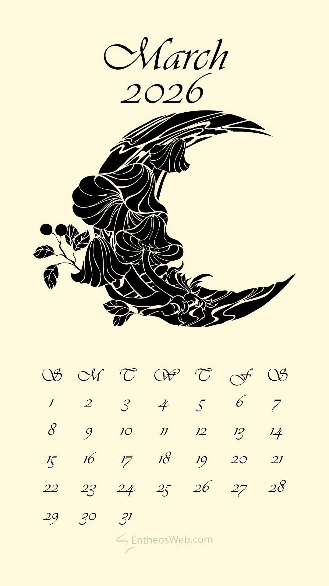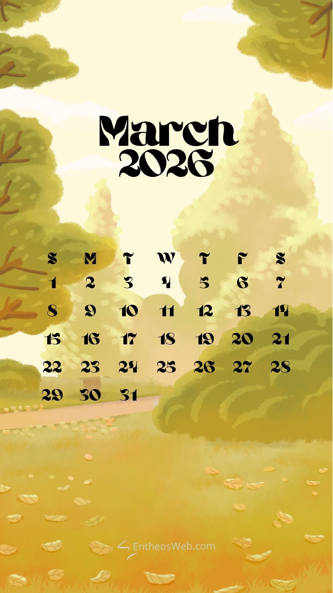 Step into a new month with the March 2026 Phone Calendar Wallpaper designed by EntheosWeb, created to keep you organized in style. Theses beautifully crafted phone calendar wallpapers display the full March 2026 calendar in a clean, easy-to-read layout, making it perfect for quick date checks and daily planning. Designed to fit modern smartphones, it combines practicality with an attractive design that enhances your home or lock screen. Download a March 2026 Phone Calendar Wallpaper by EntheosWeb for free and add a fresh, organized look to your phone all month long.