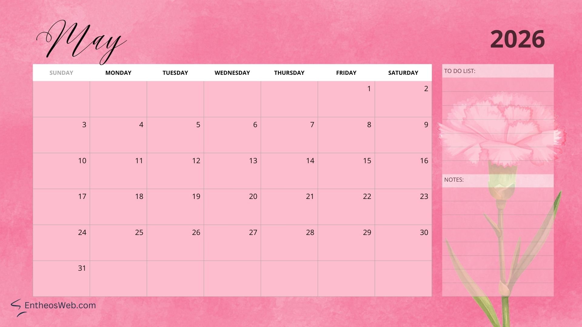 Floral 2026 Calendar – May 2026 Calendar with notes