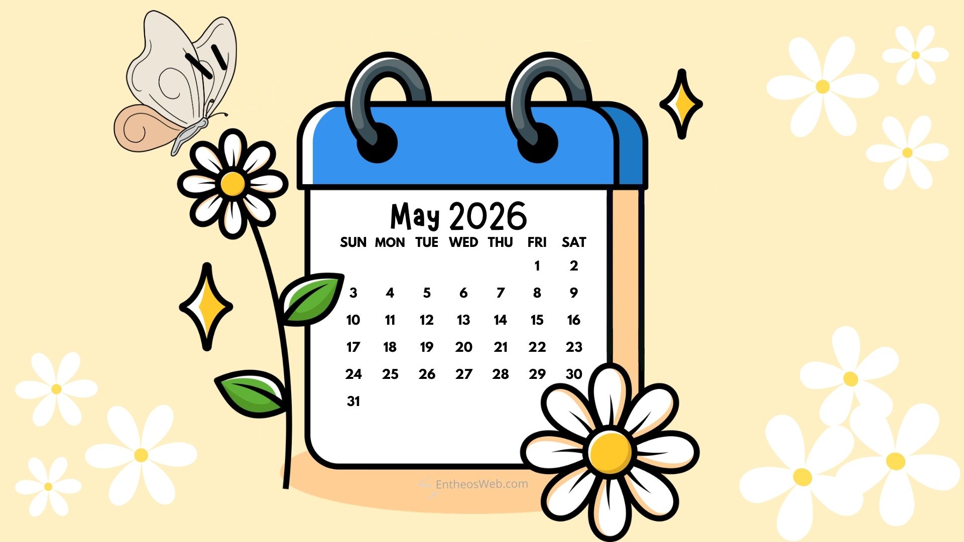 Brighten your workspace with the May 2026 Desktop Wallpaper Calendar. Featuring a clean, easy-to-read monthly layout, this wallpaper helps you stay on top of important dates while adding a fresh spring touch to your desktop. Perfect for home, office, or school, it’s a simple and stylish way to plan your month.