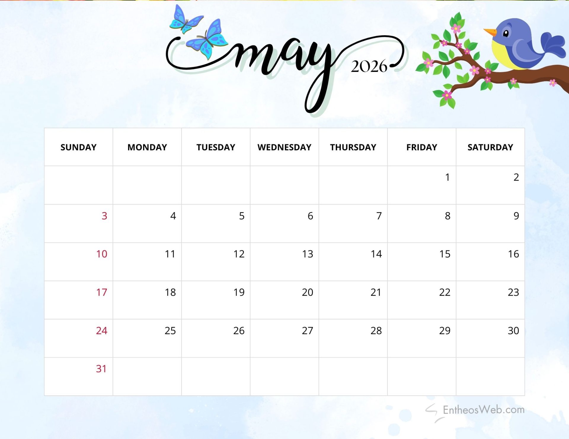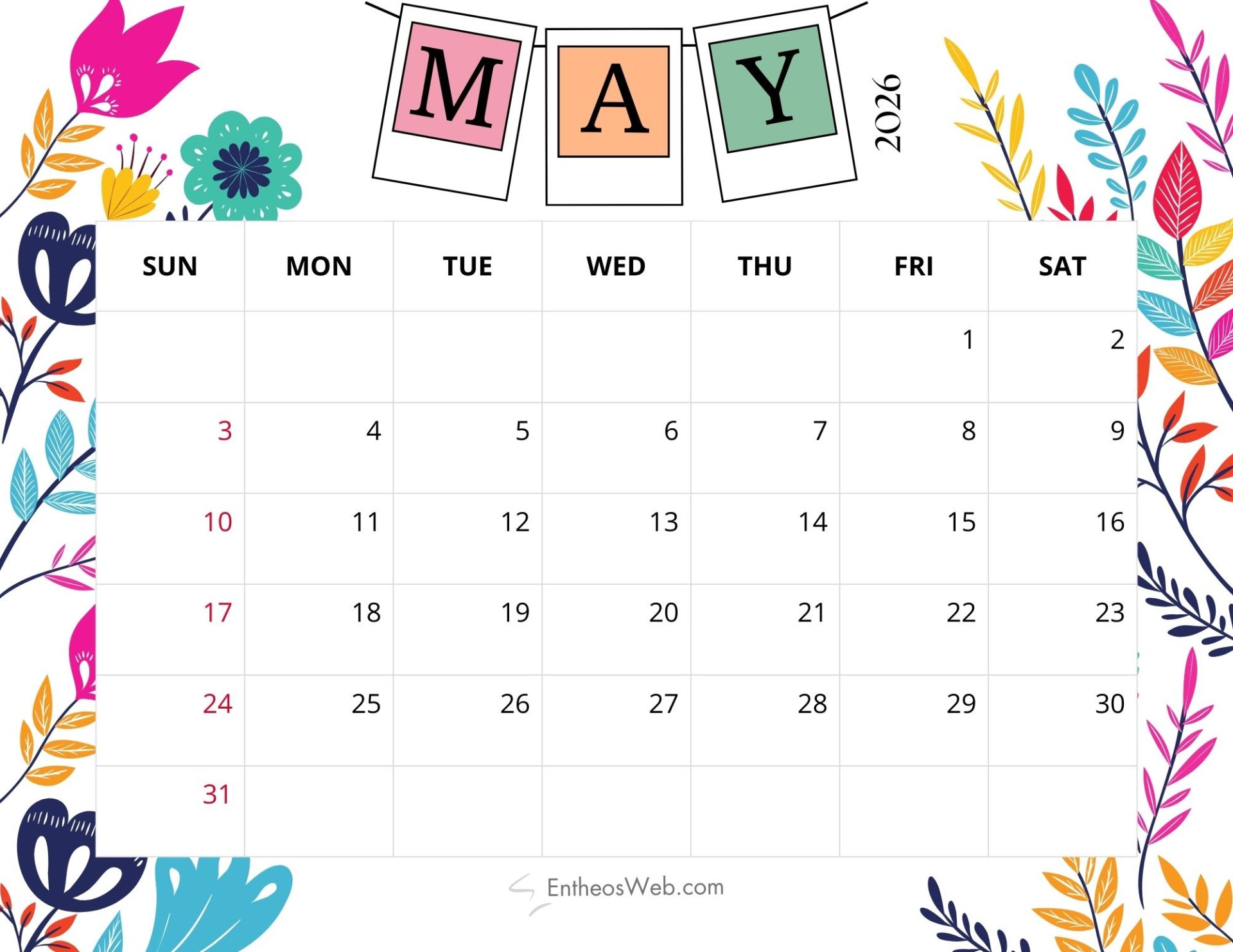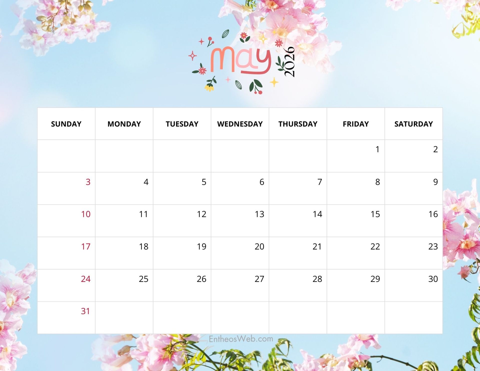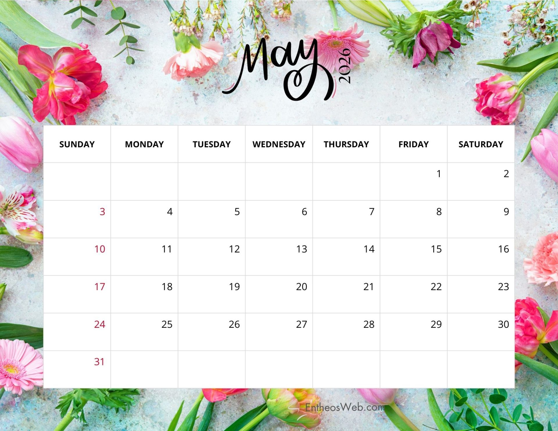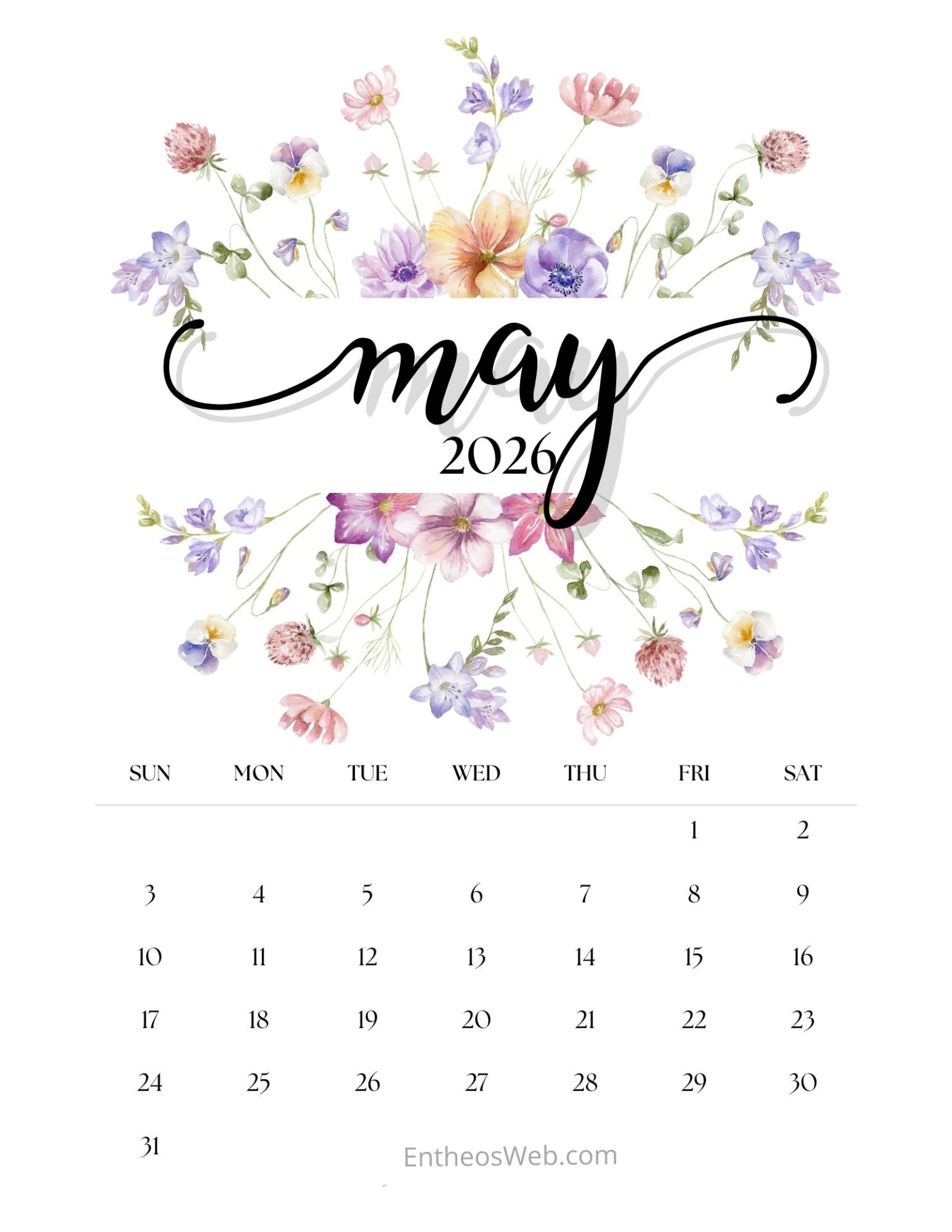 Get ready for a productive month with our May 2026 Printable Calendar. Designed with a simple and clear monthly layout, it’s perfect for keeping track of important dates, appointments, and daily plans. Ideal for home, office, or school use, this printable calendar makes organizing May 2026 easy and stress-free.