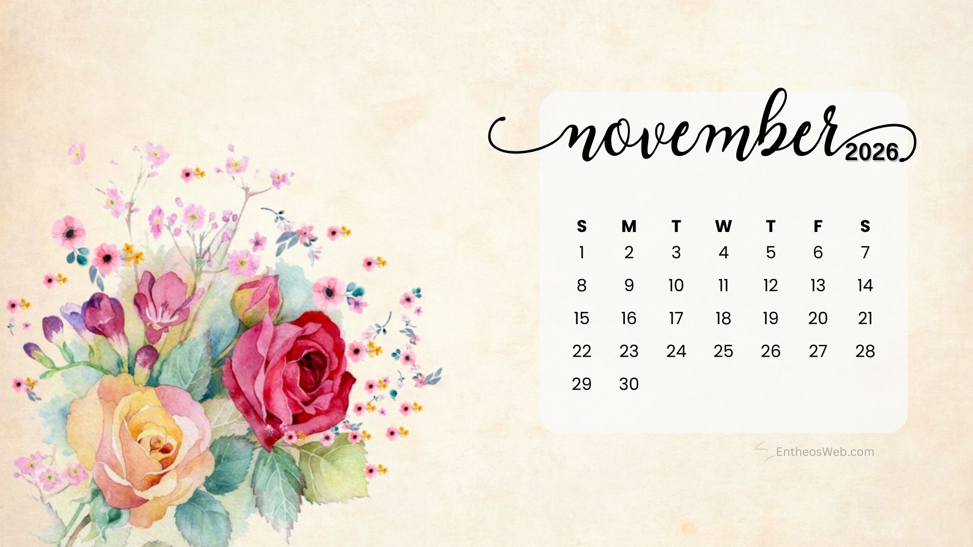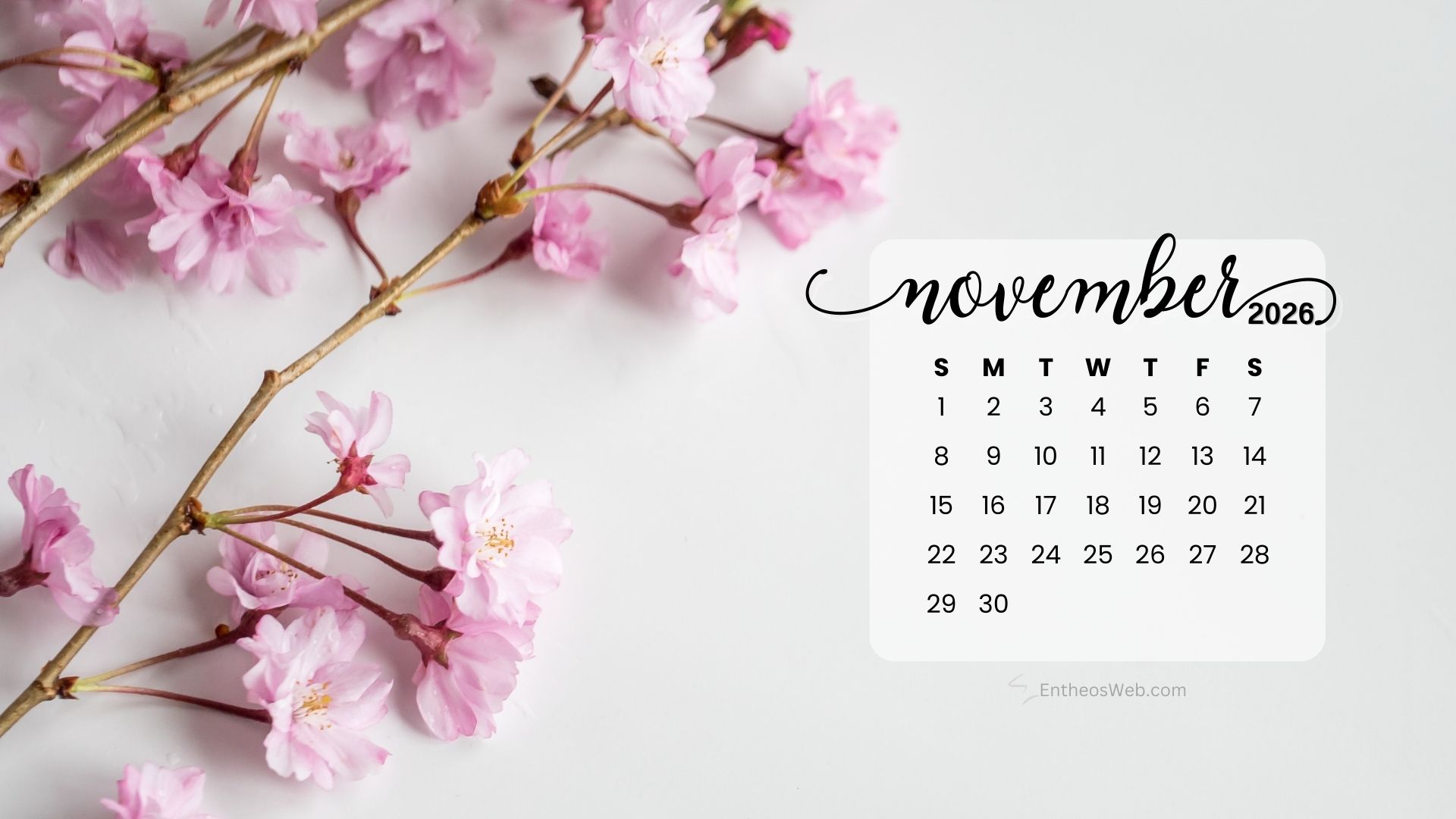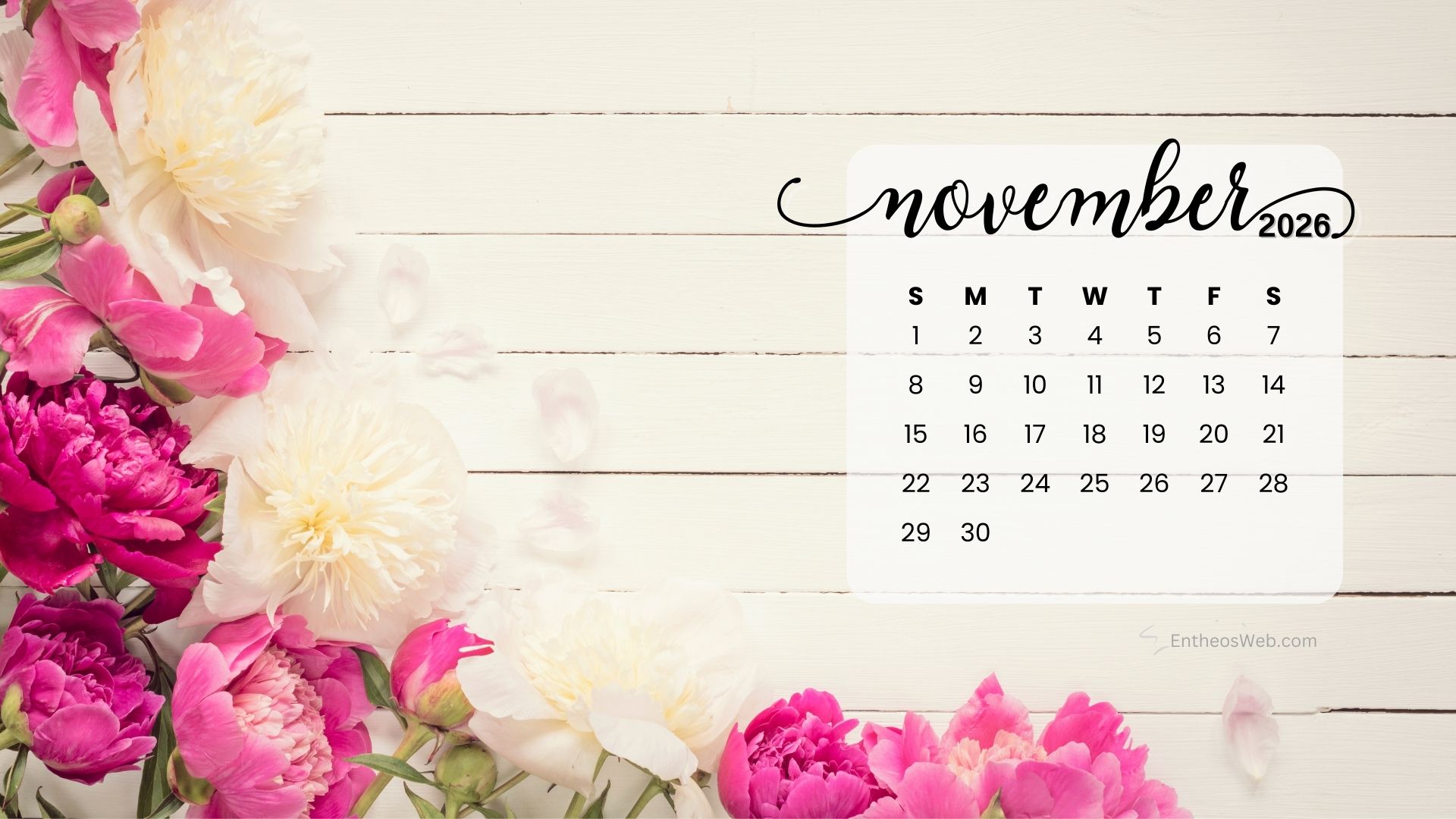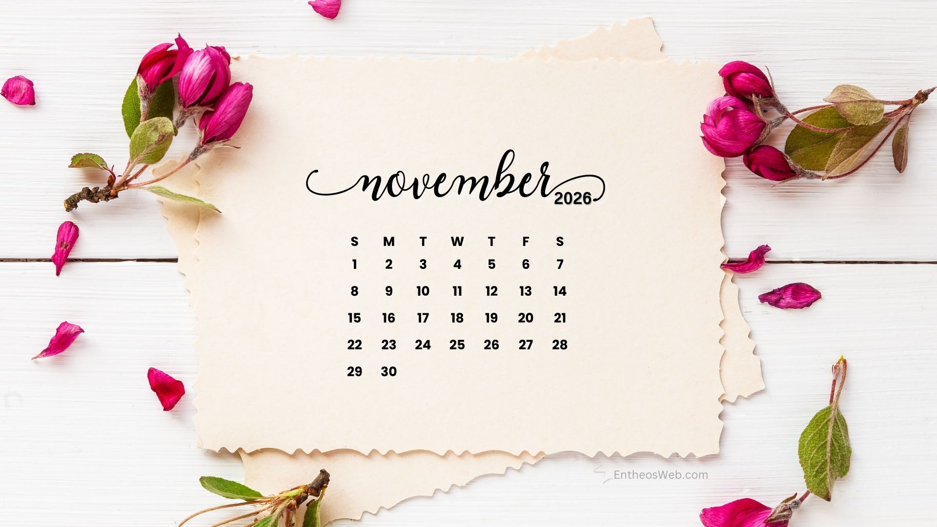 Stay organized this fall with the November 2026 Desktop Wallpaper Calendar. Featuring a clean and easy-to-read monthly layout, this desktop background helps you keep track of important dates, events, and plans at a glance. Perfect for home or office use, it adds a seasonal touch while keeping your schedule front and center throughout November 2026.