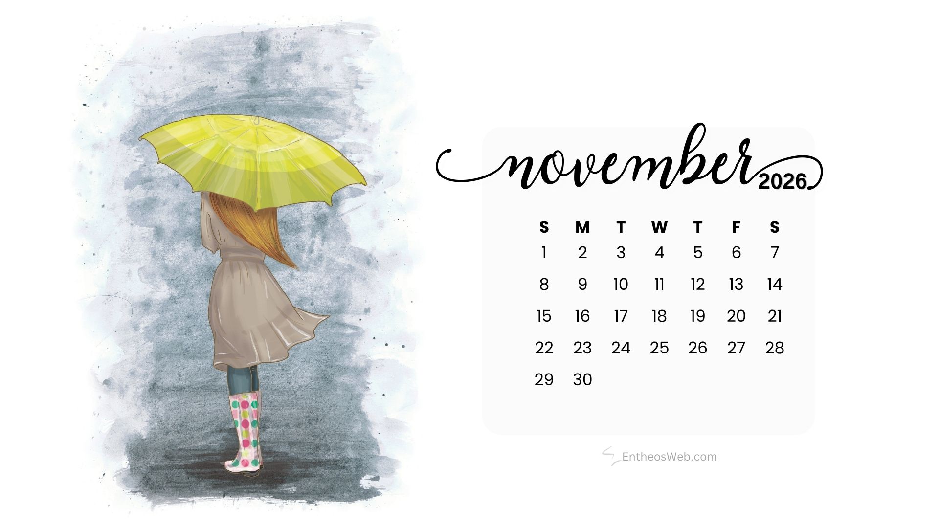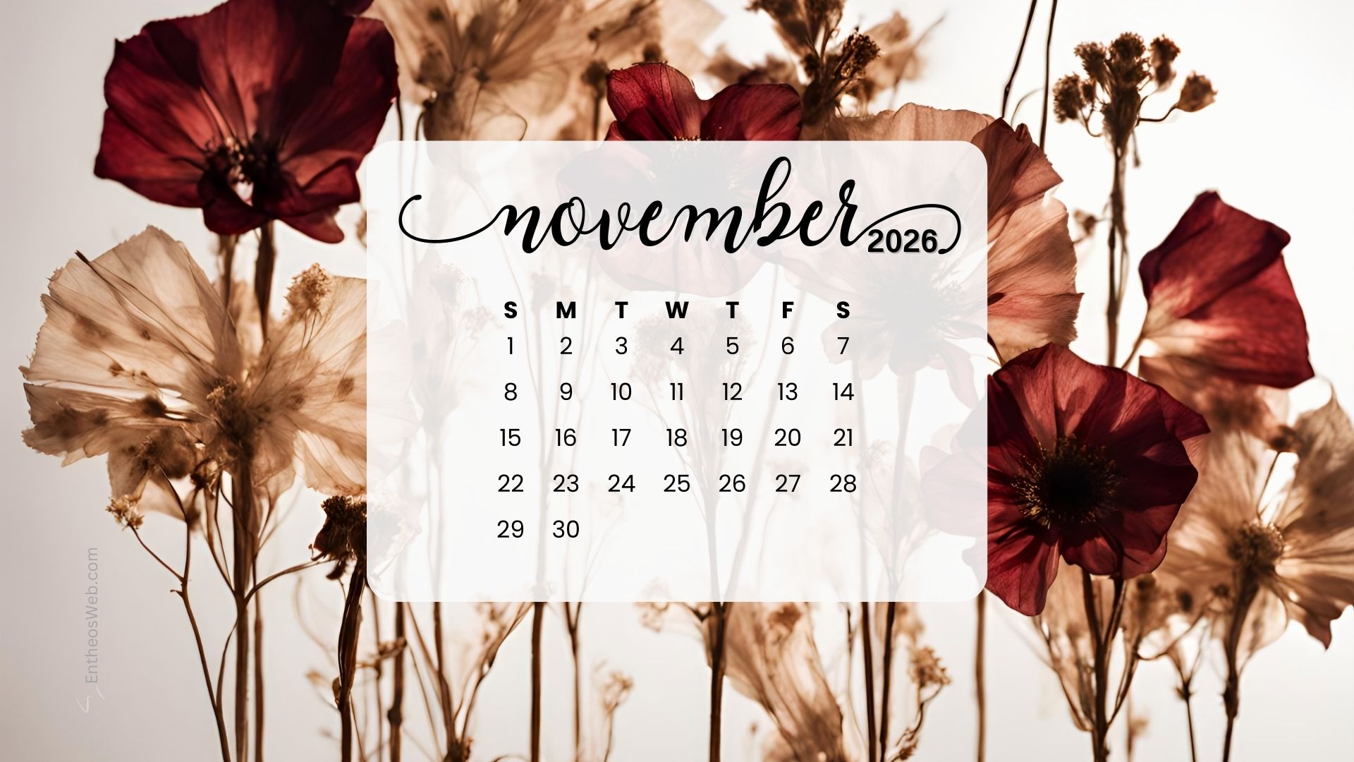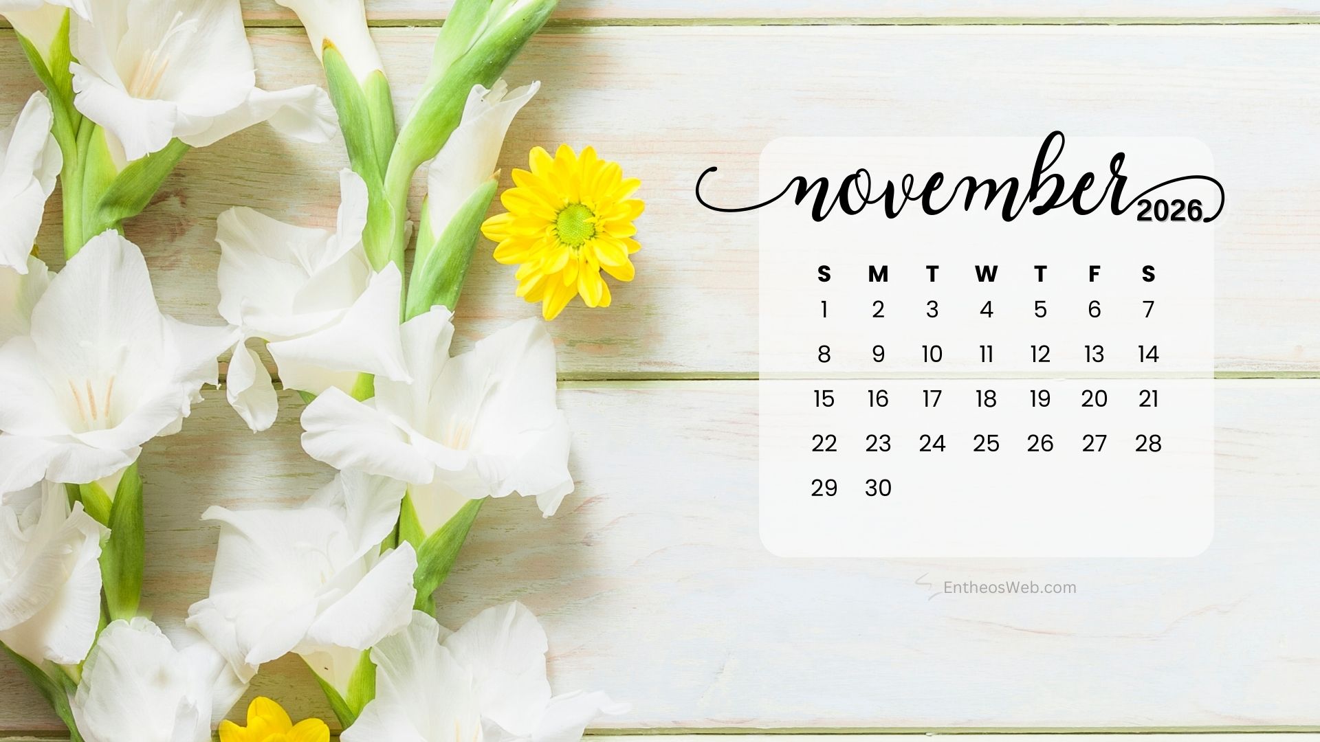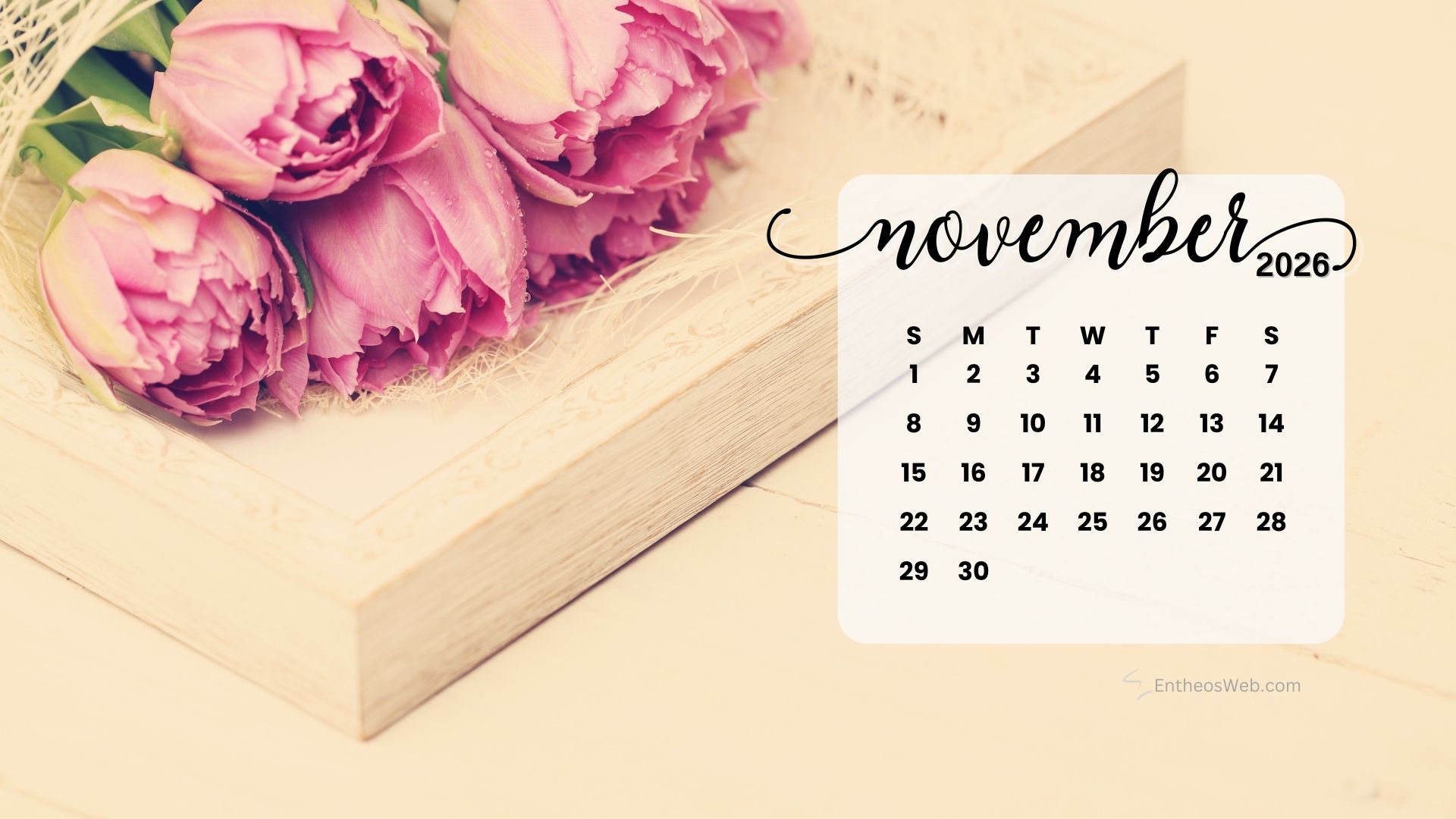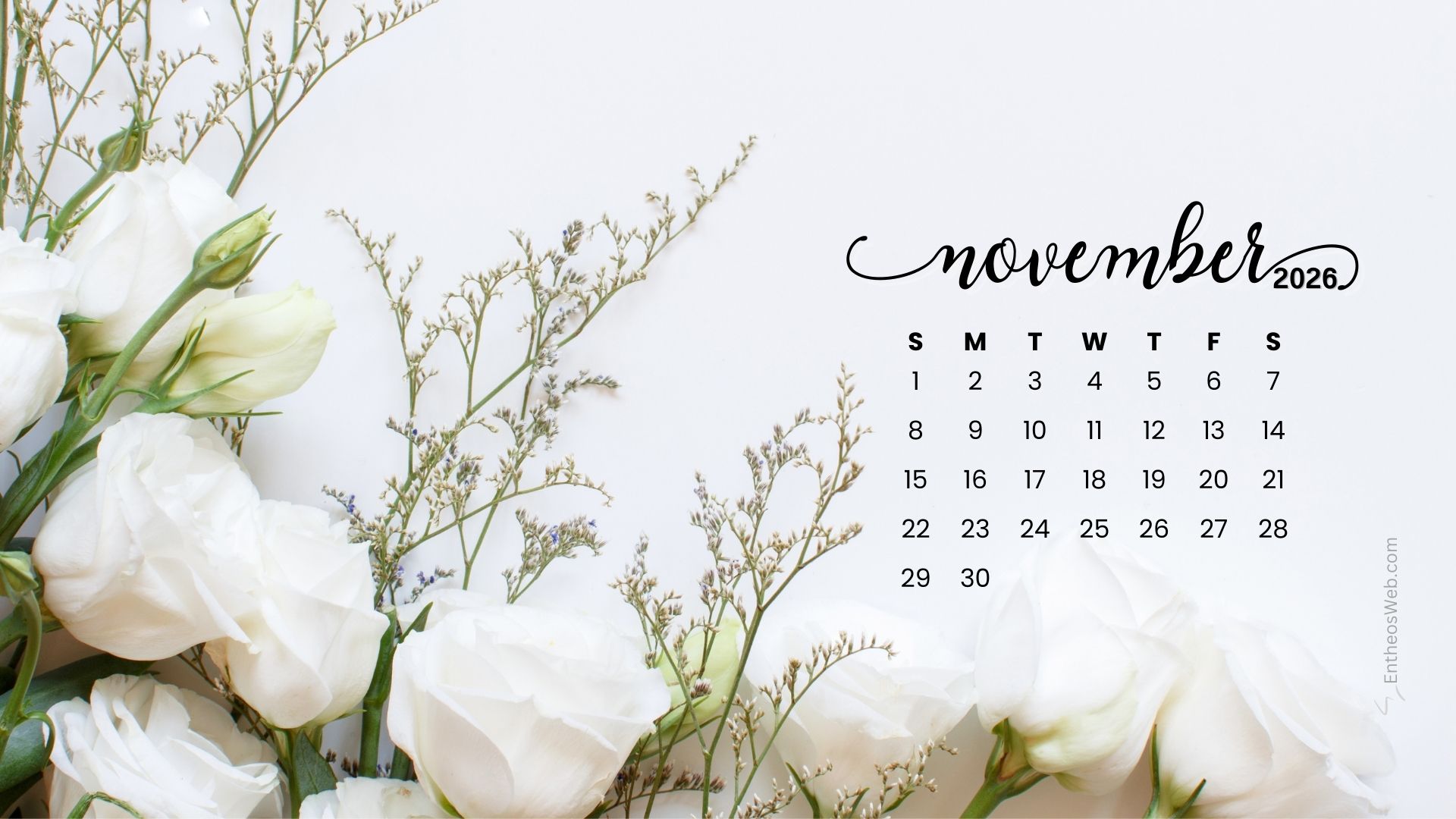 Stay organized this fall with the November 2026 Desktop Wallpaper Calendar. Featuring a clean and easy-to-read monthly layout, this desktop background helps you keep track of important dates, events, and plans at a glance. Perfect for home or office use, it adds a seasonal touch while keeping your schedule front and center throughout November 2026.