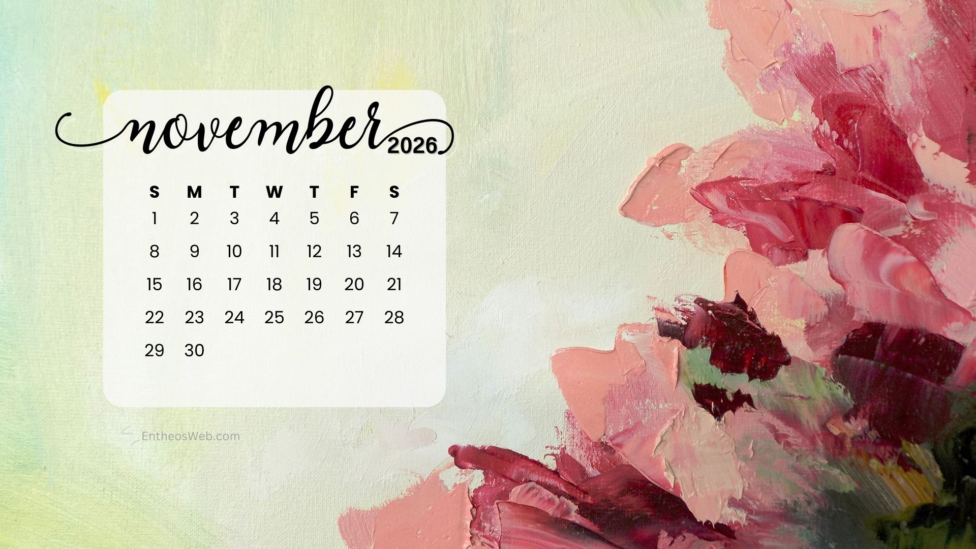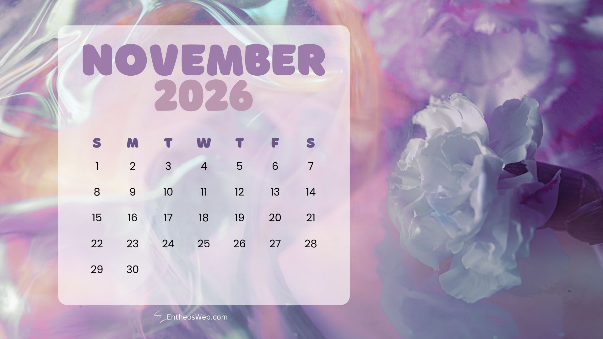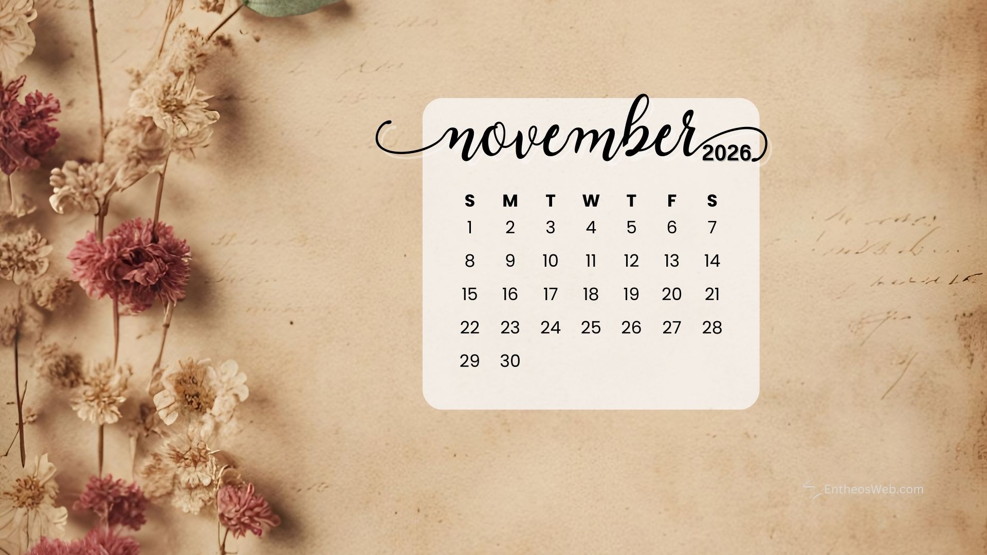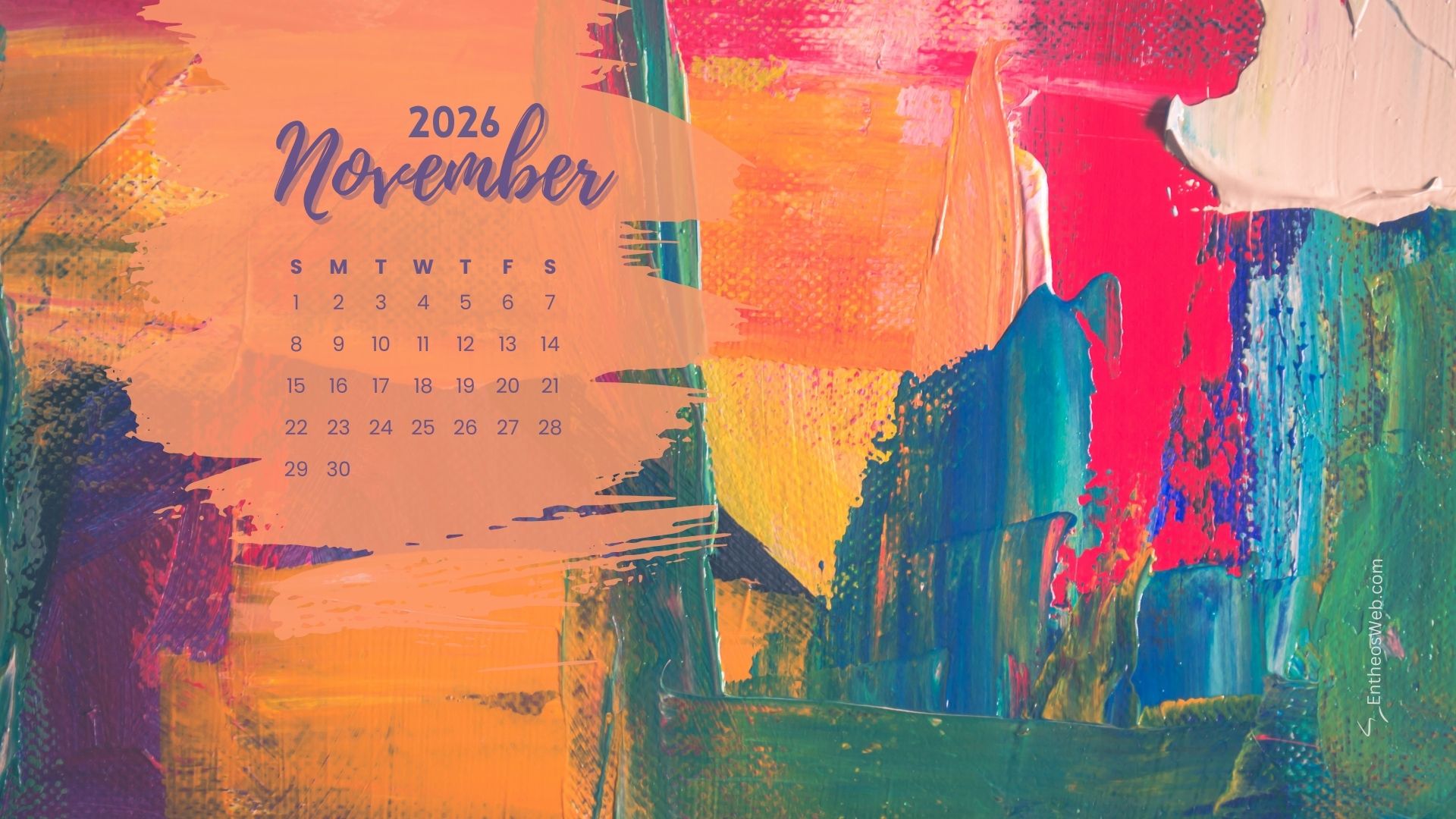 Stay organized this fall with the November 2026 Desktop Wallpaper Calendar. Featuring a clean and easy-to-read monthly layout, this desktop background helps you keep track of important dates, events, and plans at a glance. Perfect for home or office use, it adds a seasonal touch while keeping your schedule front and center throughout November 2026.