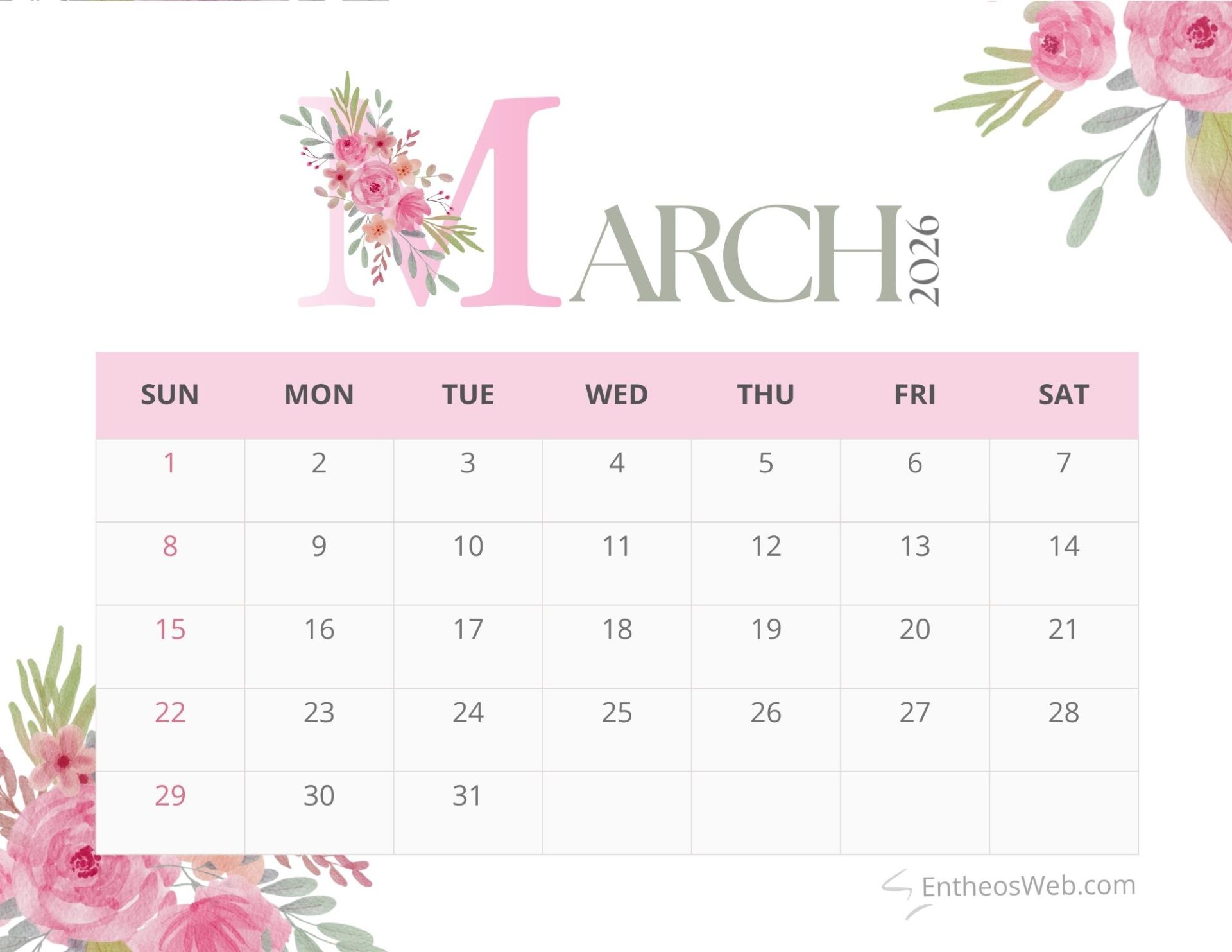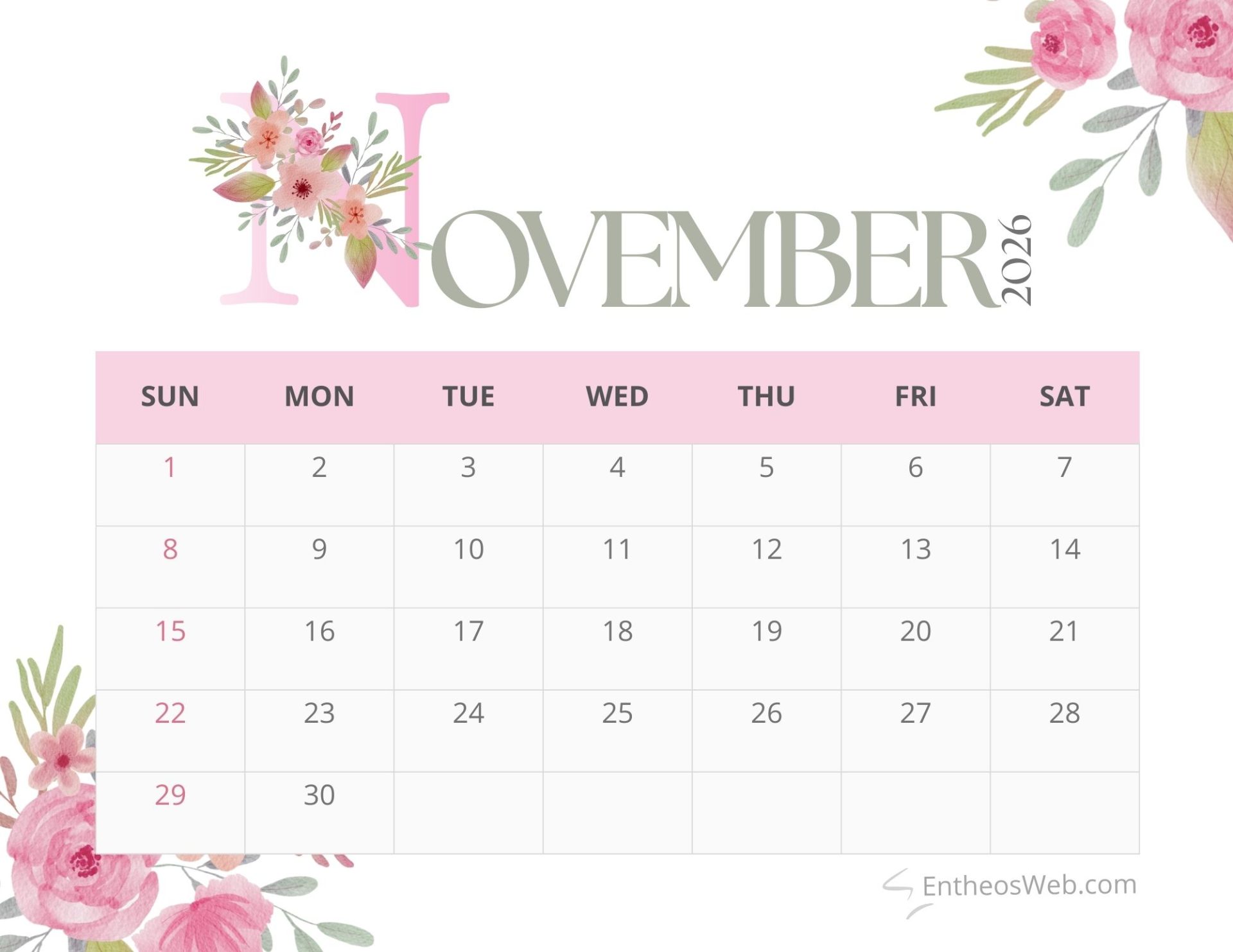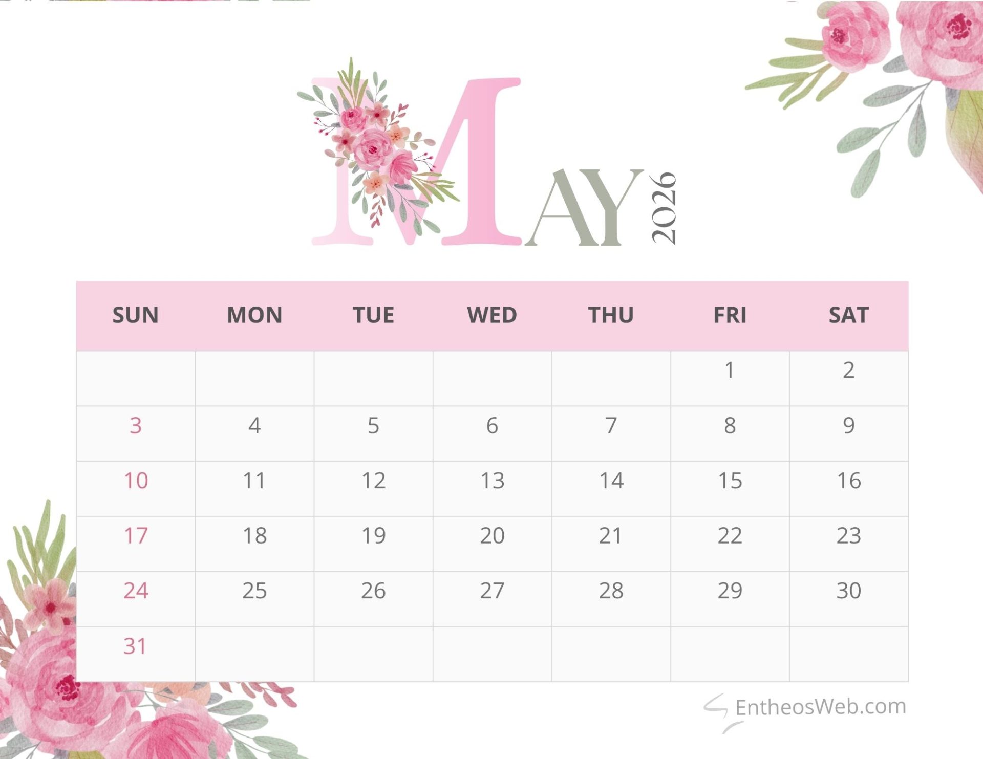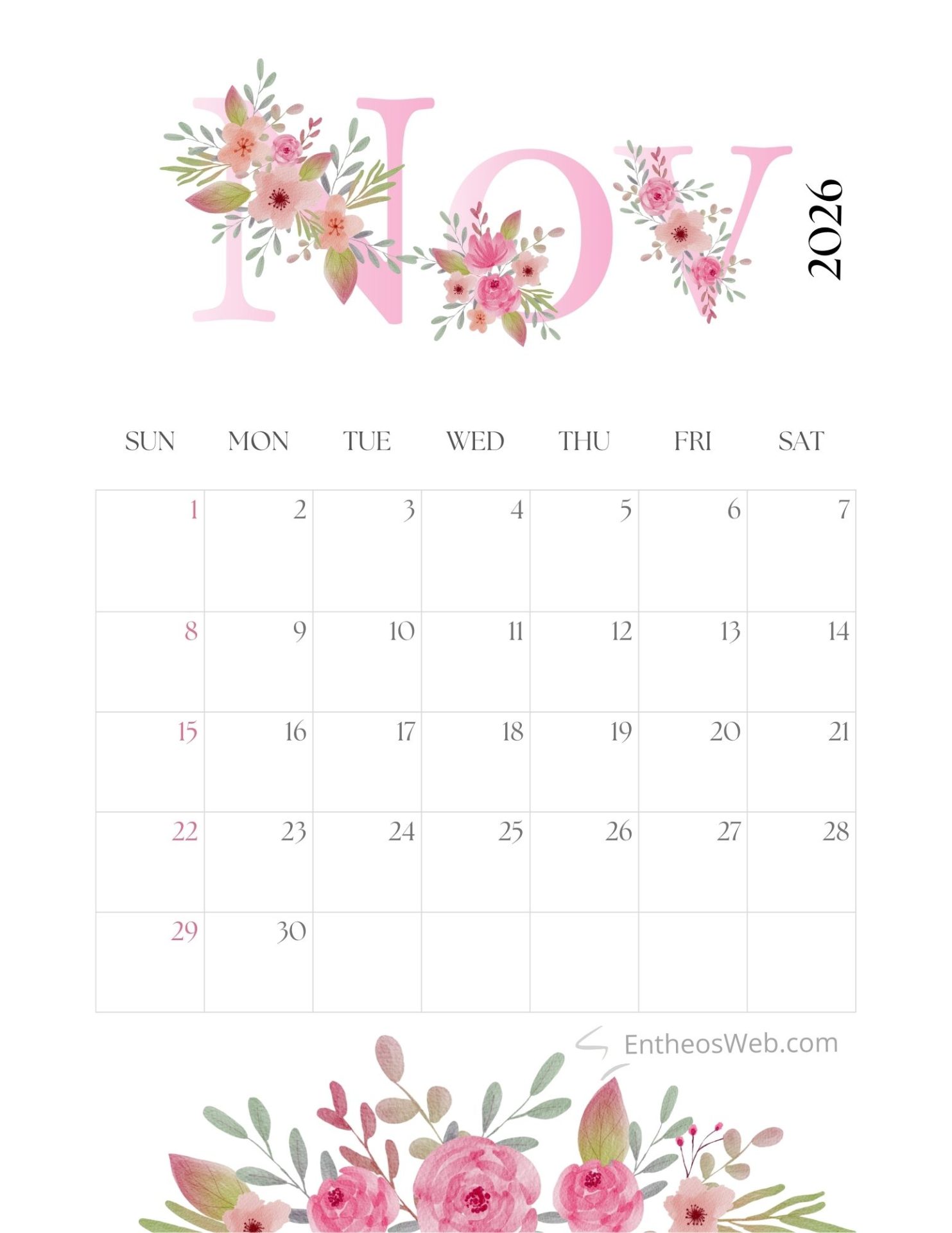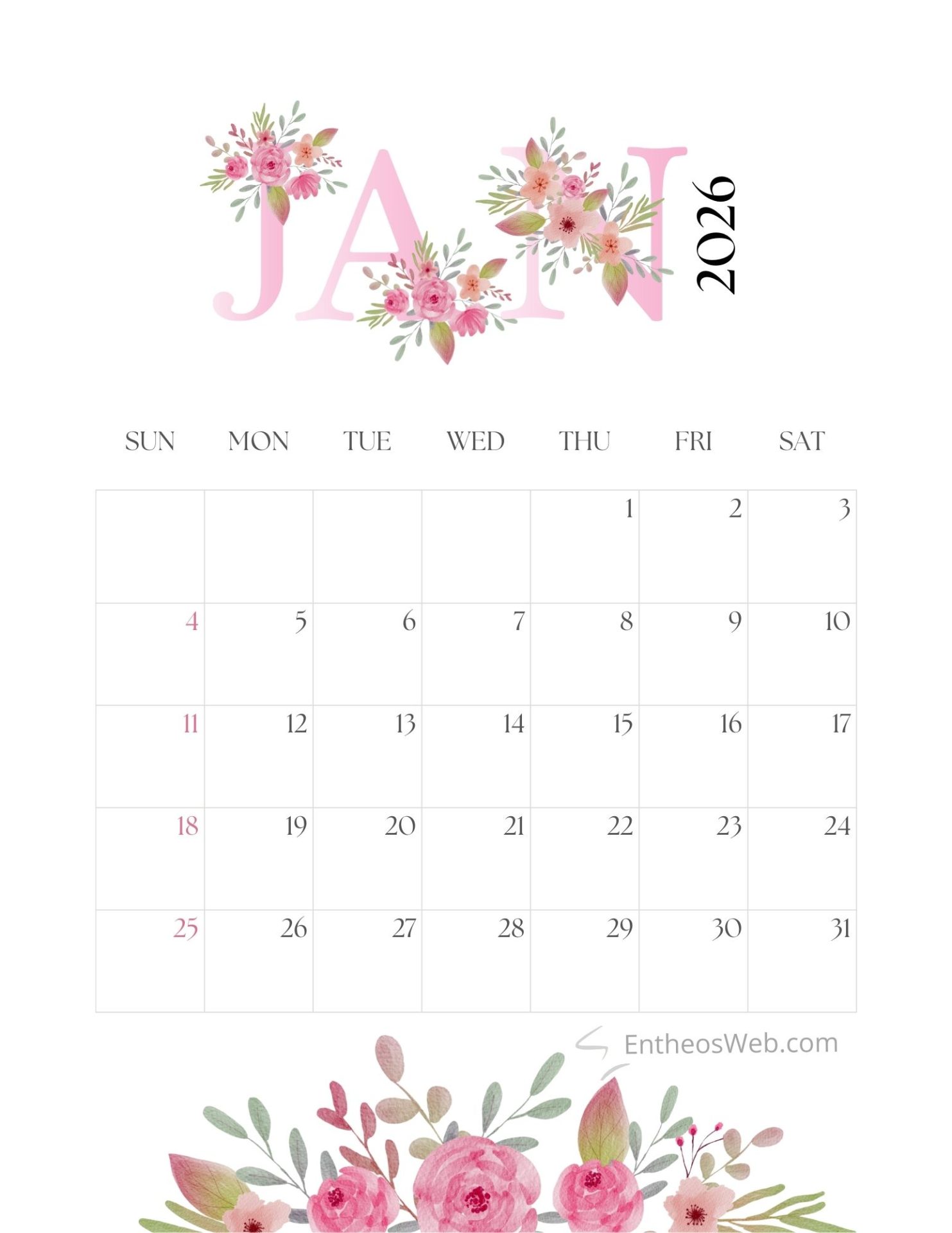 Bring a touch of elegance to your planning with the Pink Floral Month Calendar 2026. Featuring soft pink tones and delicate floral accents, this printable monthly calendar adds beauty and charm to your workspace or home. Perfect for organizing schedules, notes, and reminders while enjoying a fresh aesthetic throughout the year.