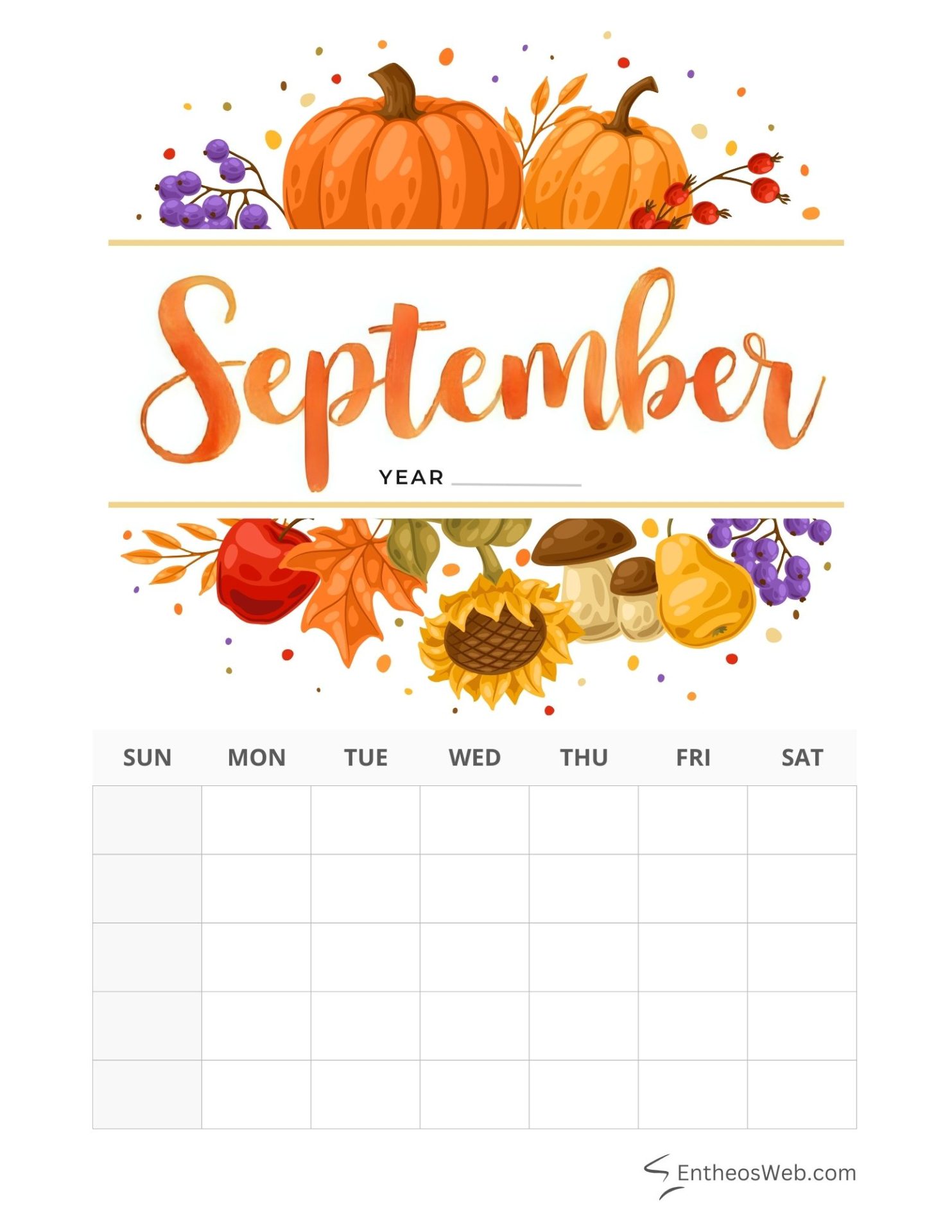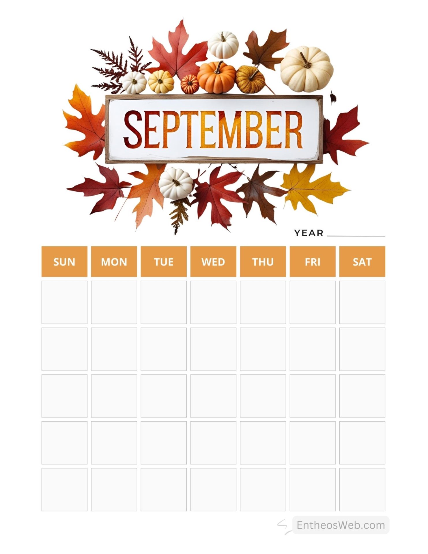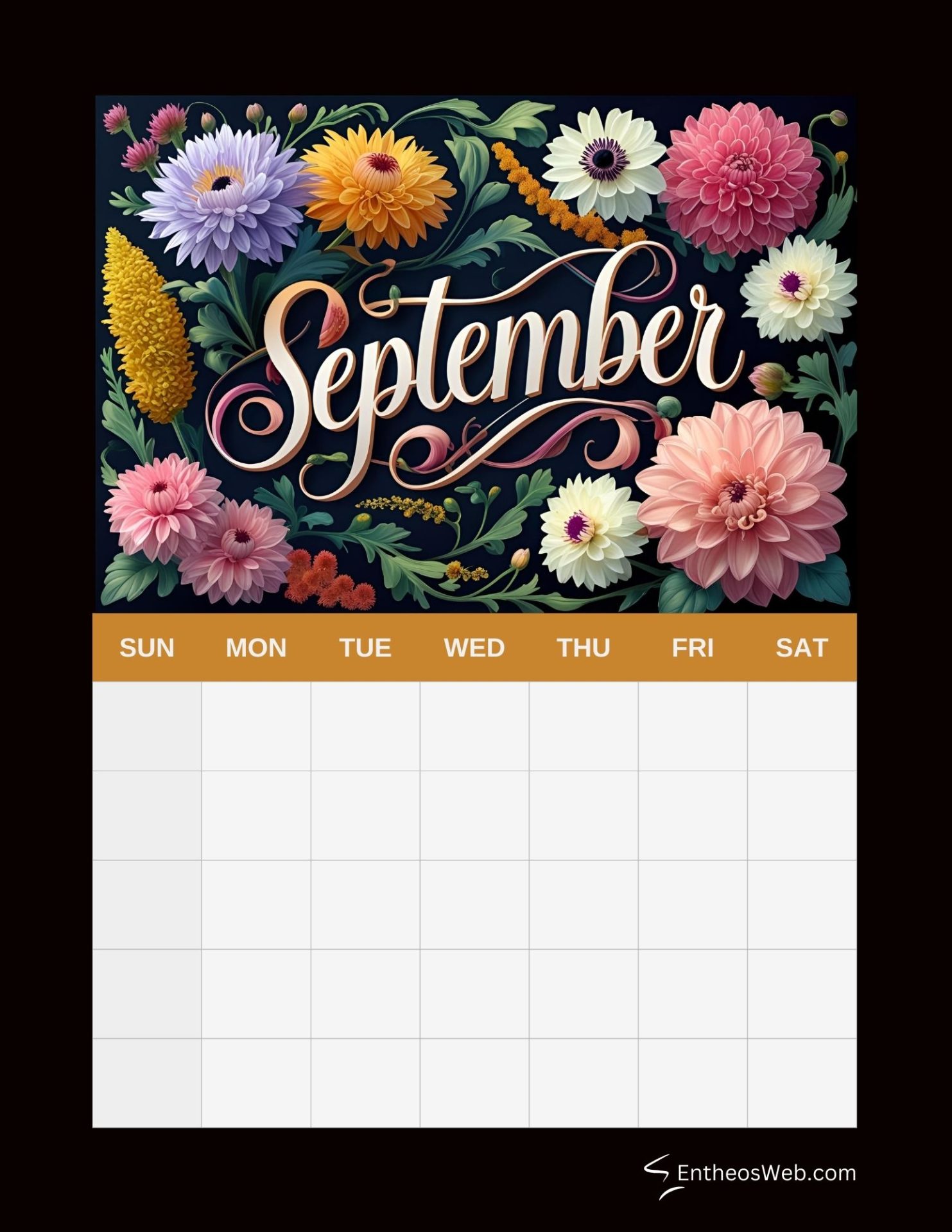 September blank calendar printables