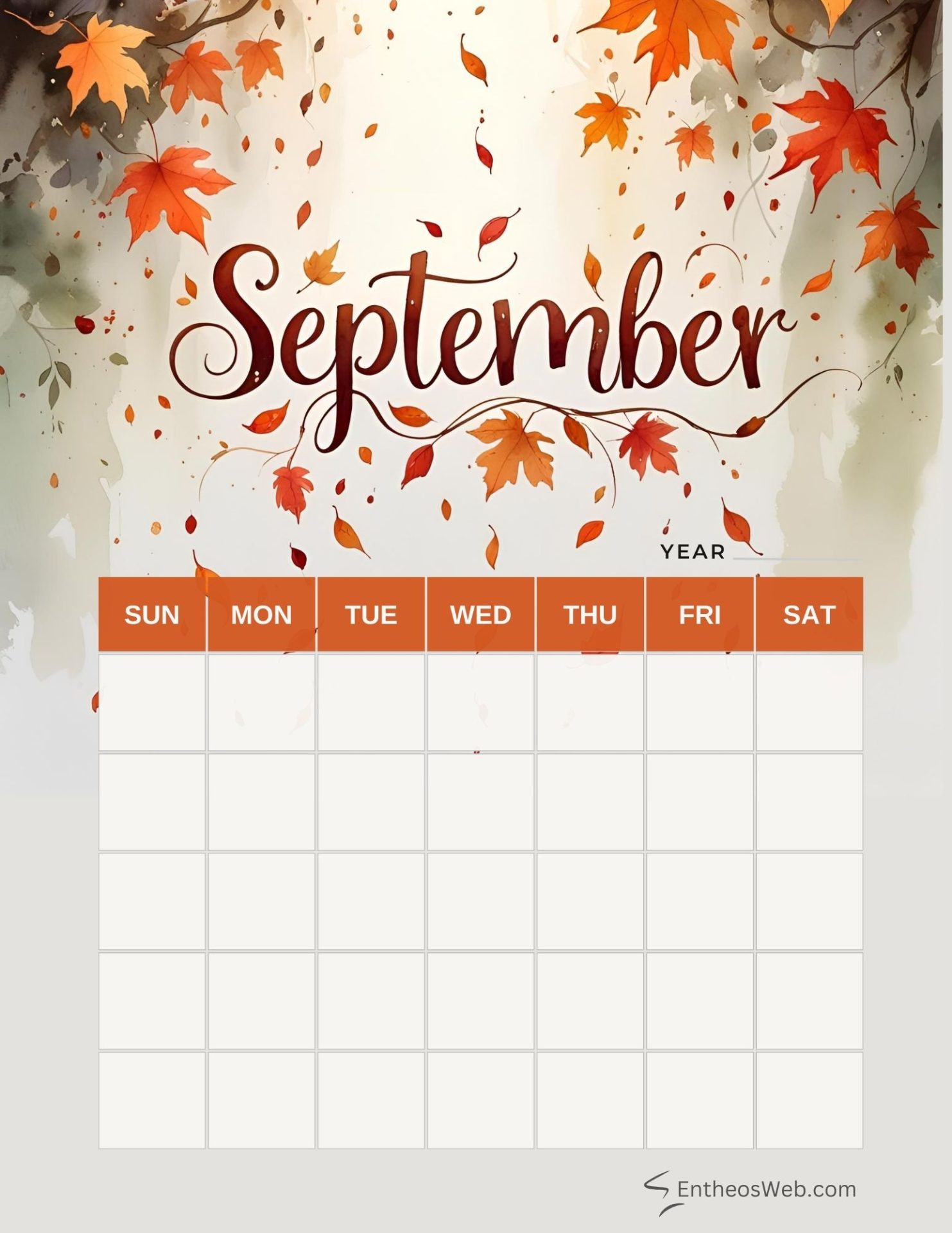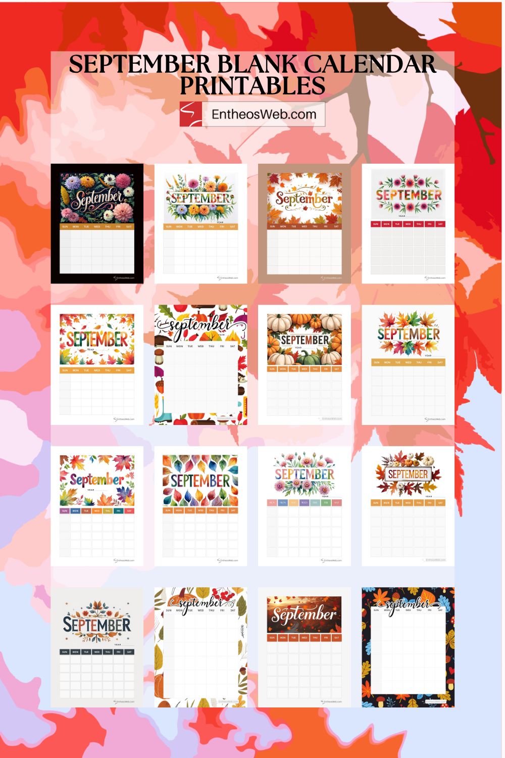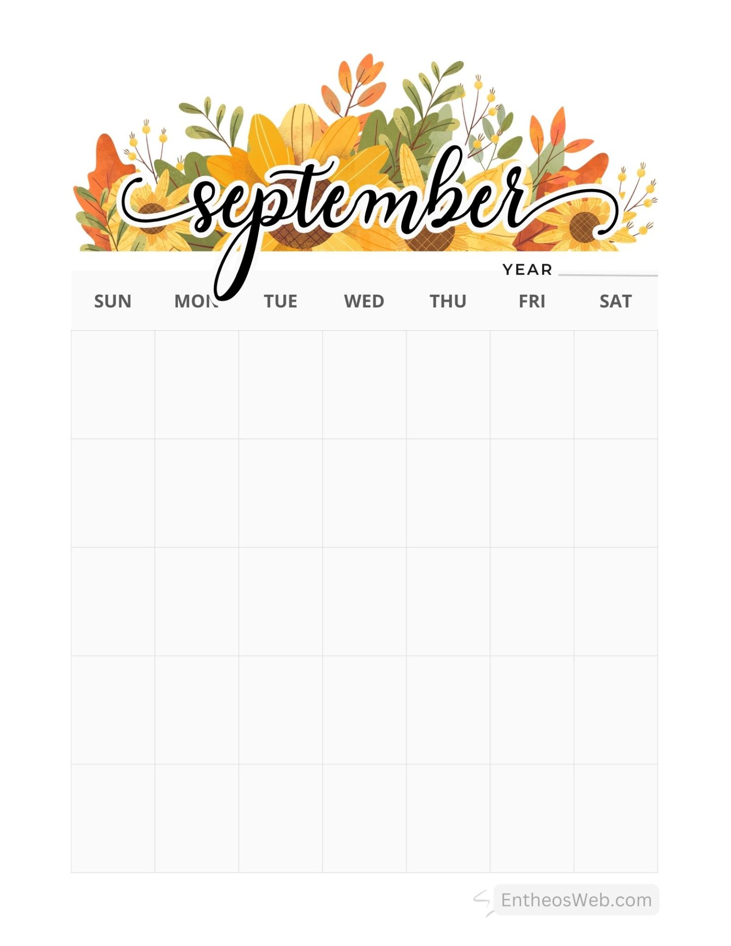 September blank calendar printables