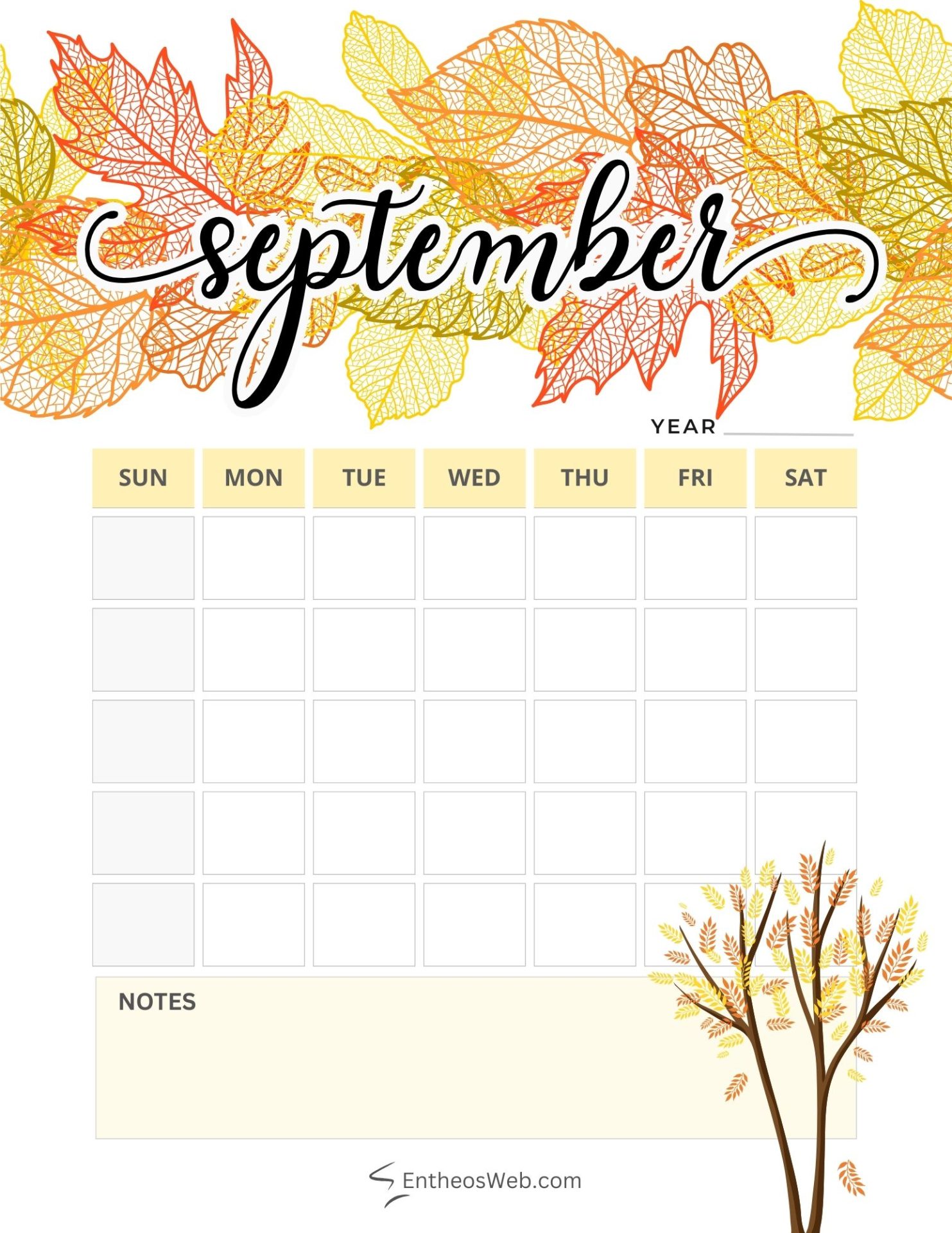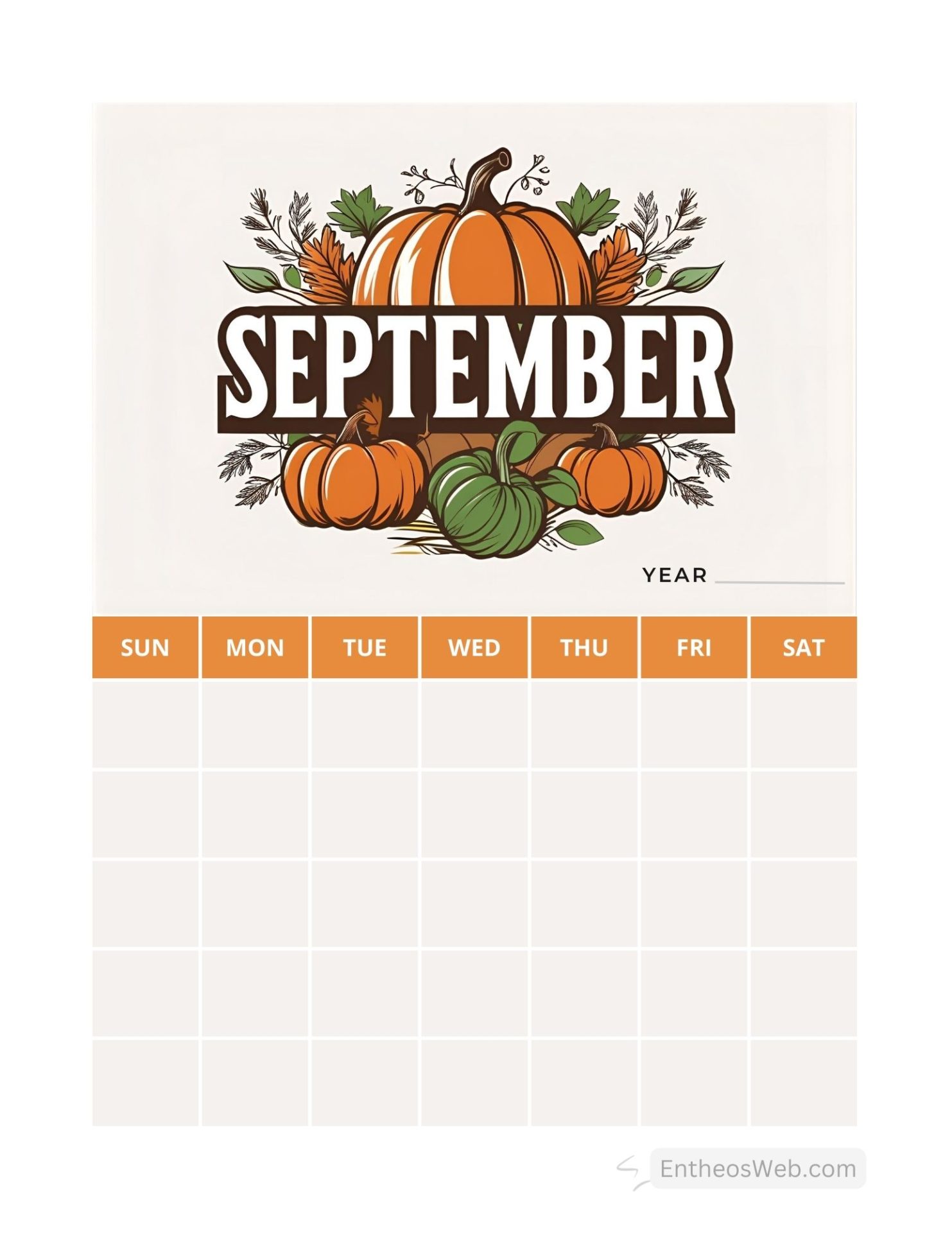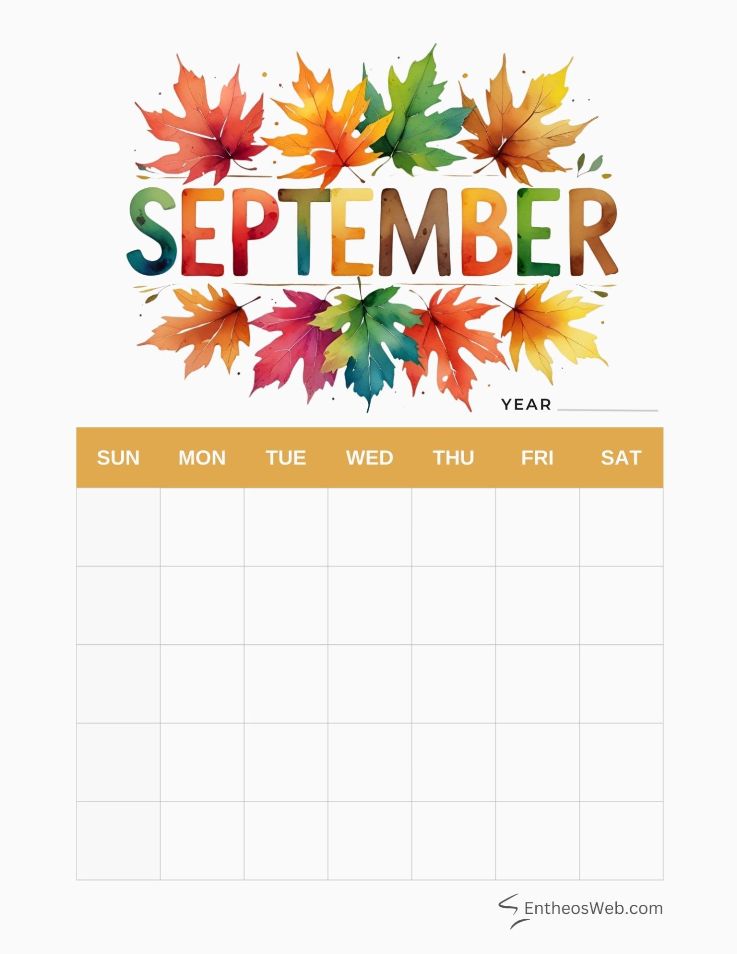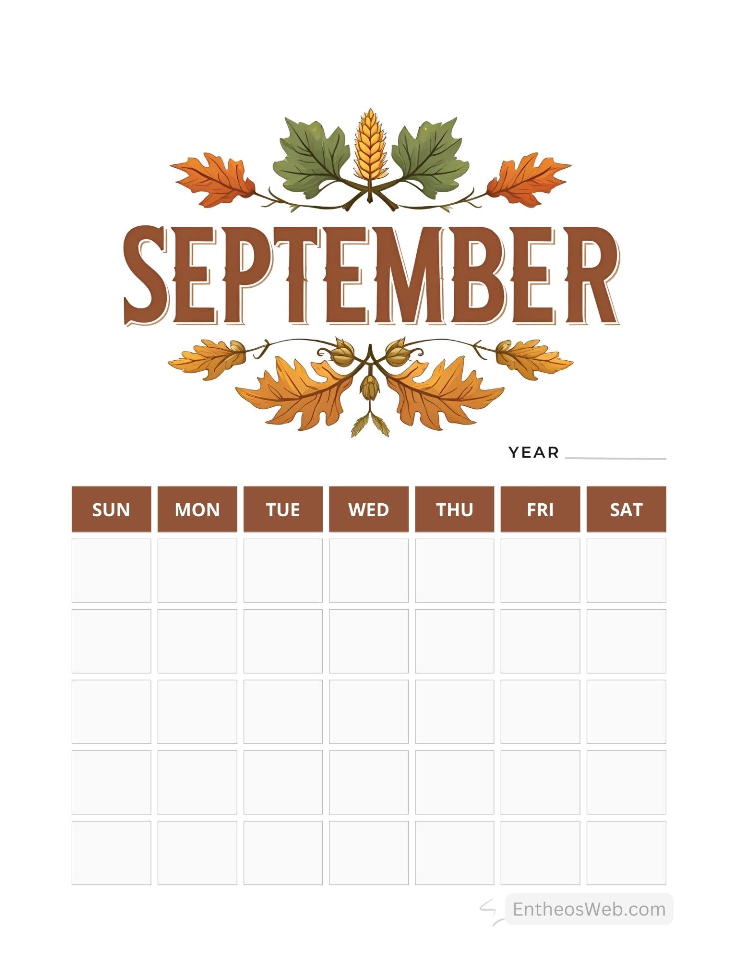 3. September Blank Calendar Printables