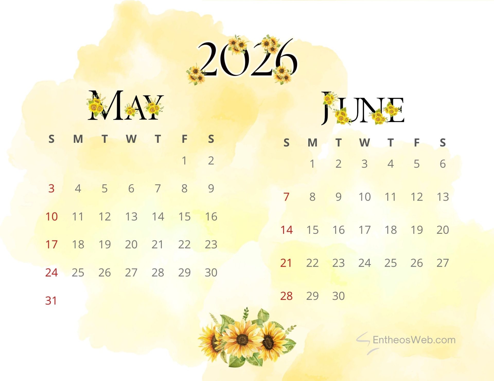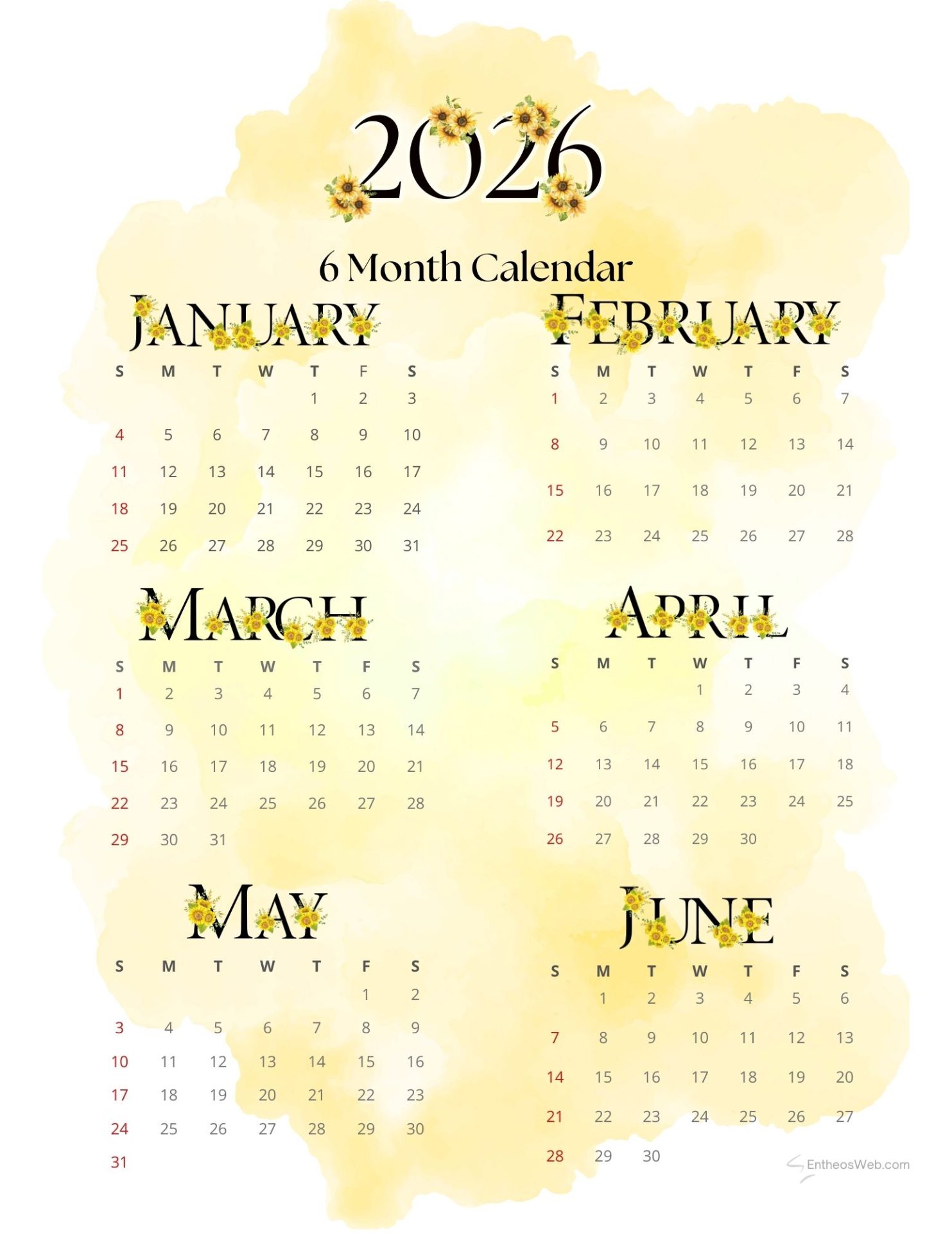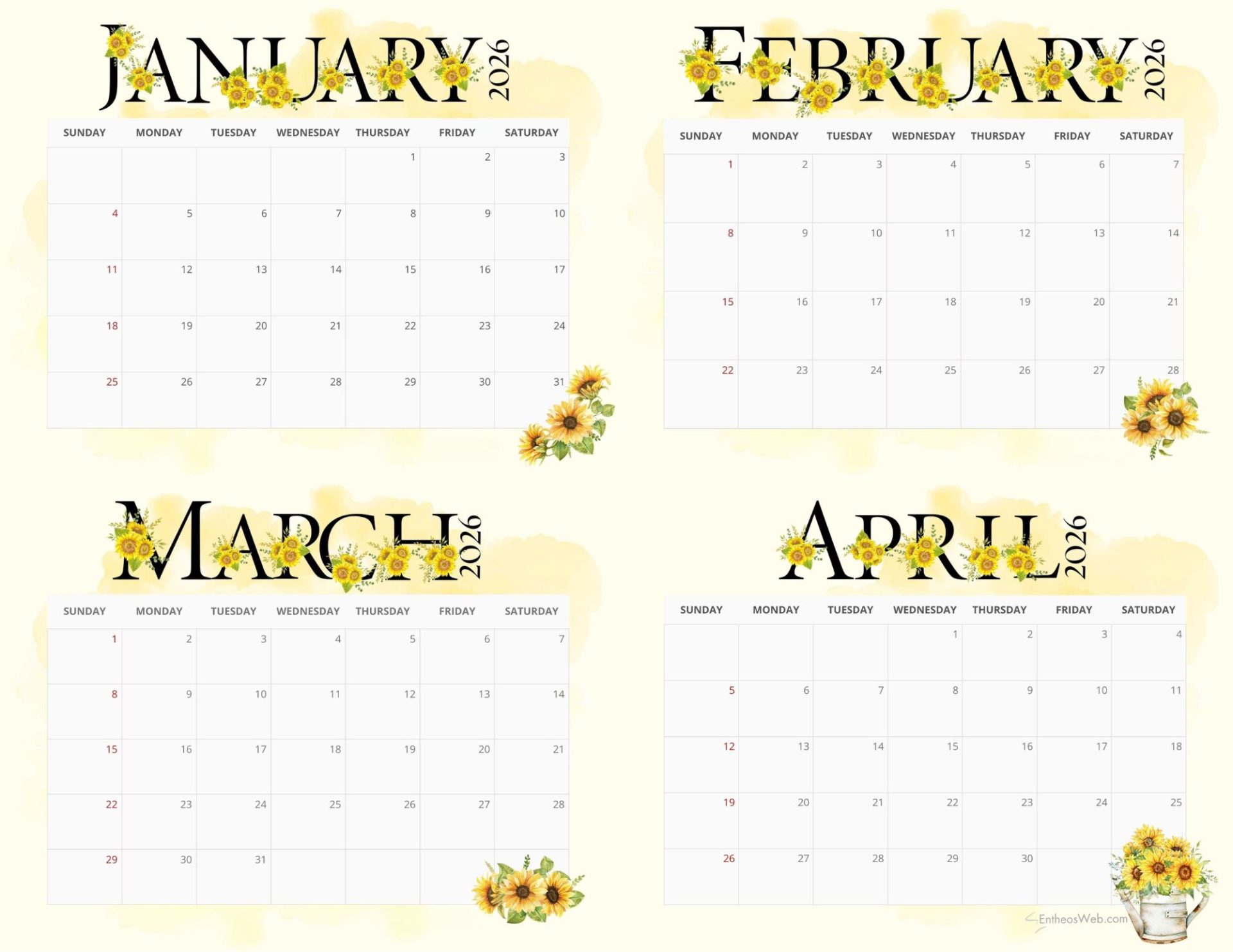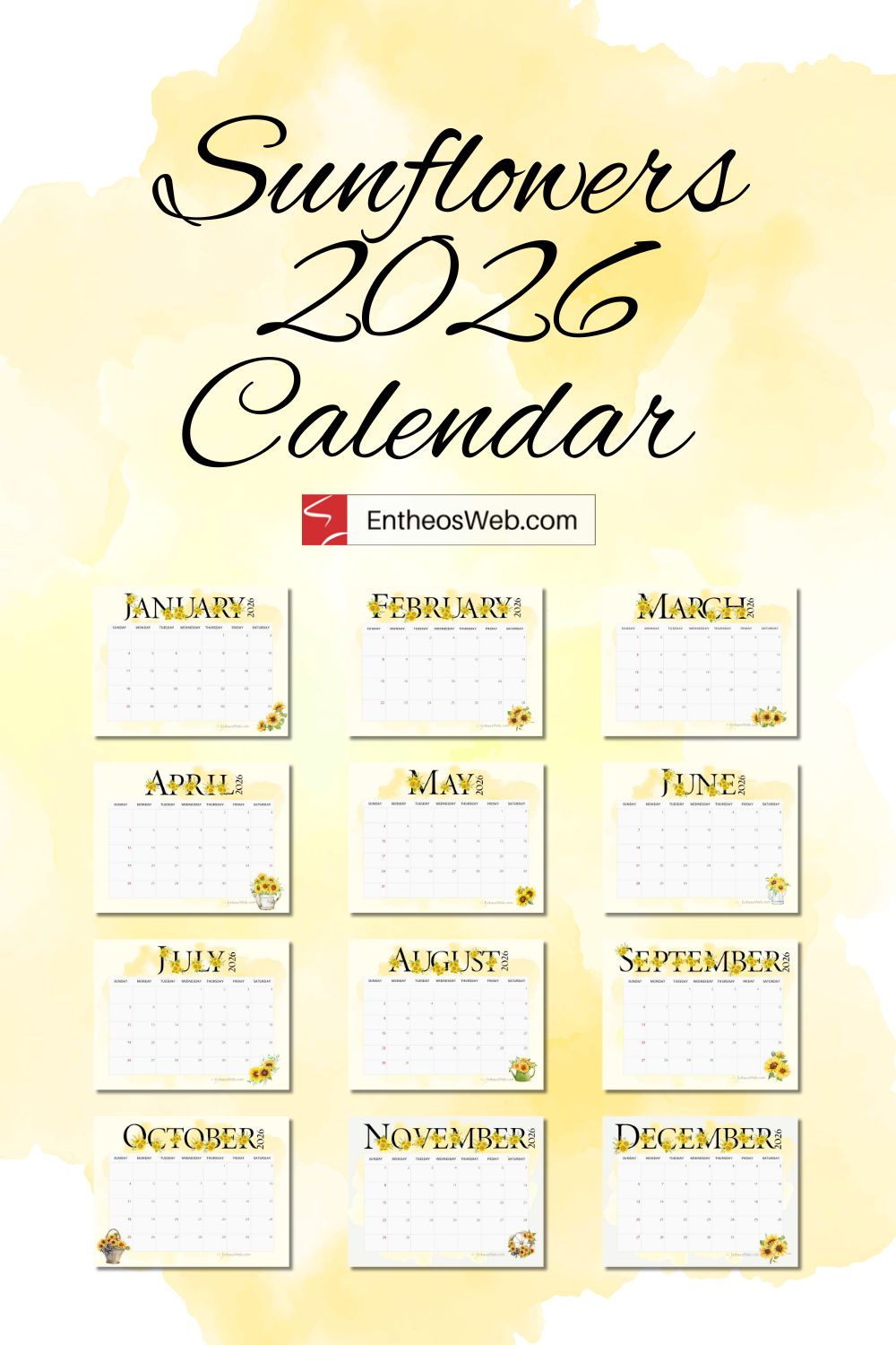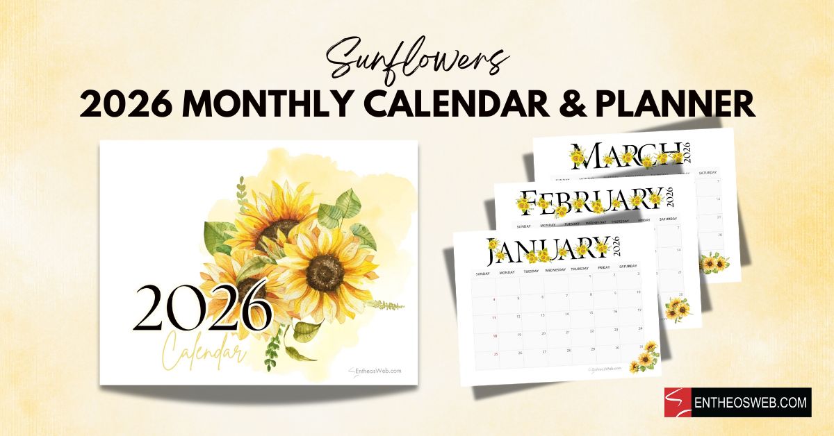 Brighten your year with our Sunflowers 2026 Monthly, 2-Monthly, 4-Monthly & 6-Monthly Printable Calendar & Planner PDF, beautifully designed by EntheosWeb and available for free download. Featuring cheerful sunflower-themed designs for each month of 2026, this printable calendar and planner adds a warm, positive touch to your daily planning. Perfect for organizing appointments, goals, and notes, it combines functionality with uplifting floral artwork. Simply download, print, and enjoy a stylish and practical way to stay organized all year long with this free sunflower calendar and planner.