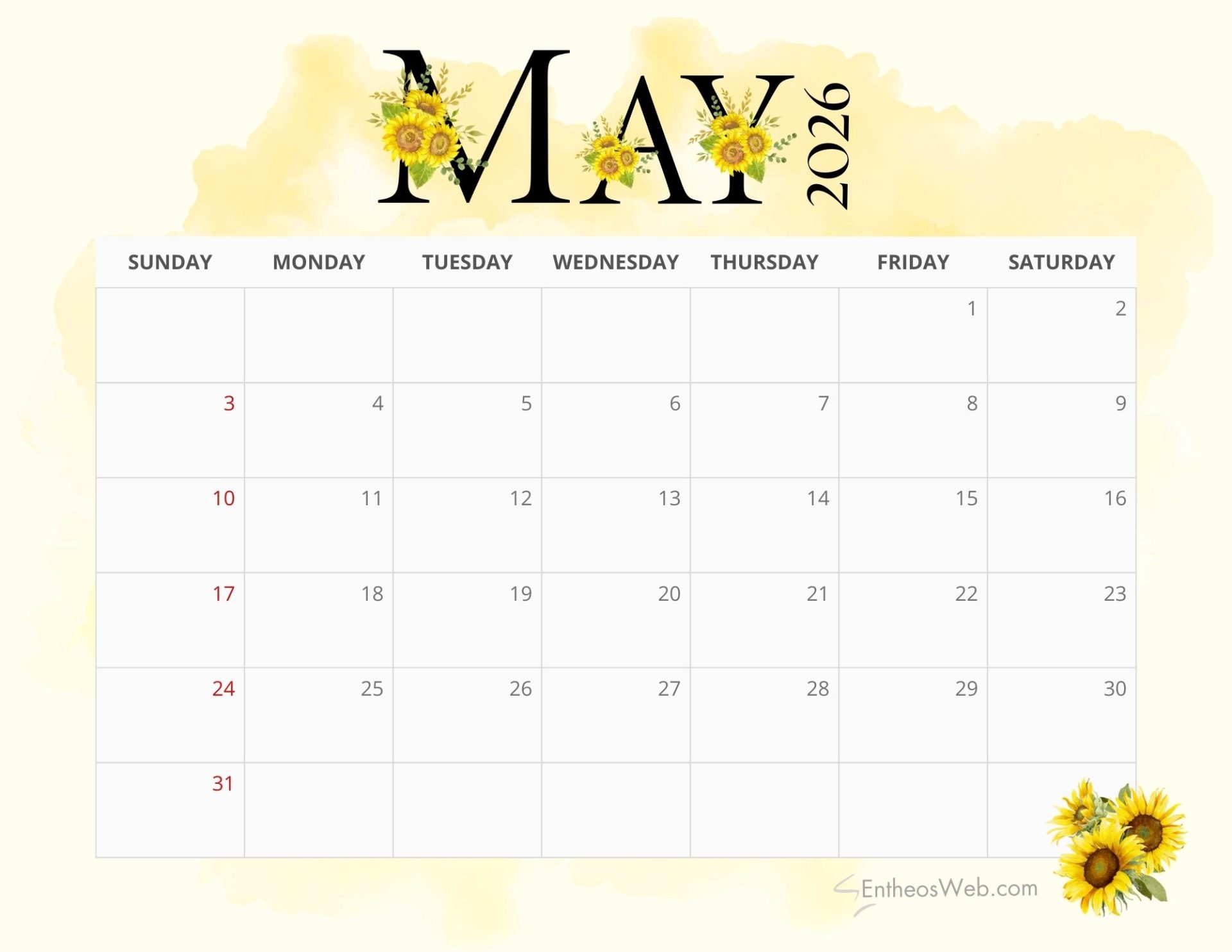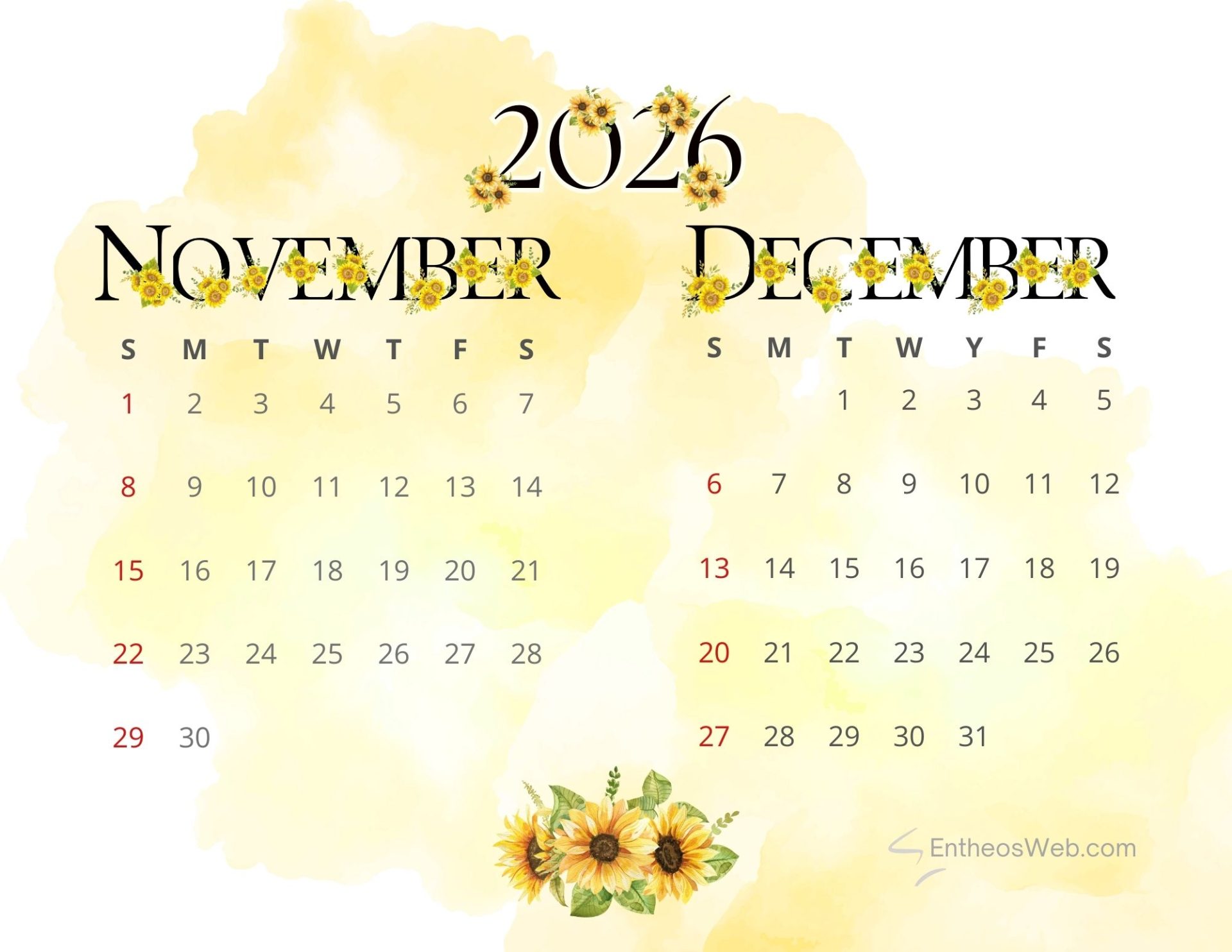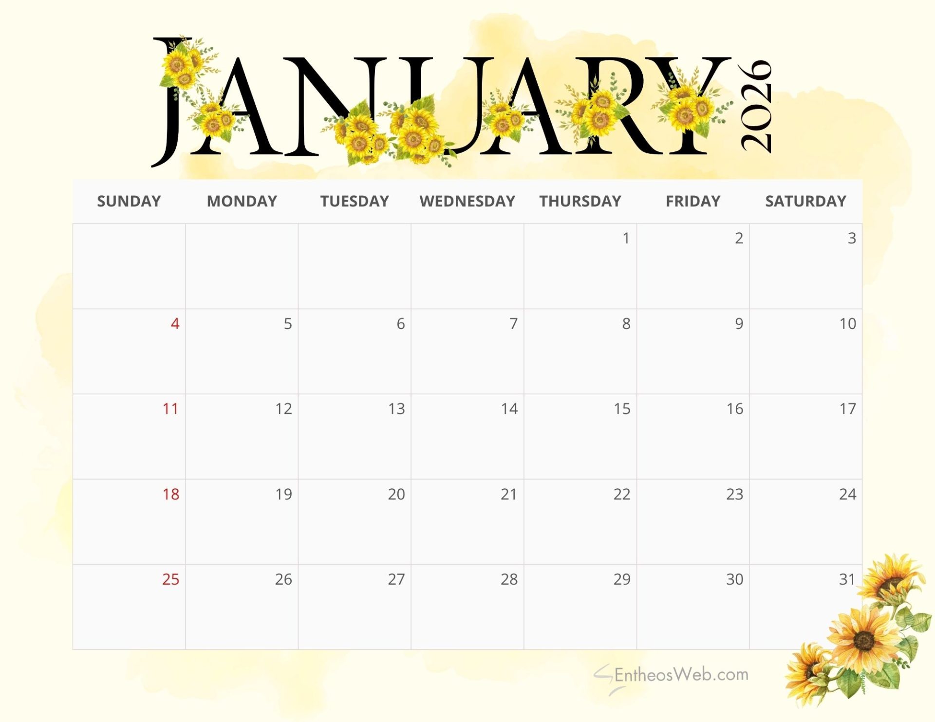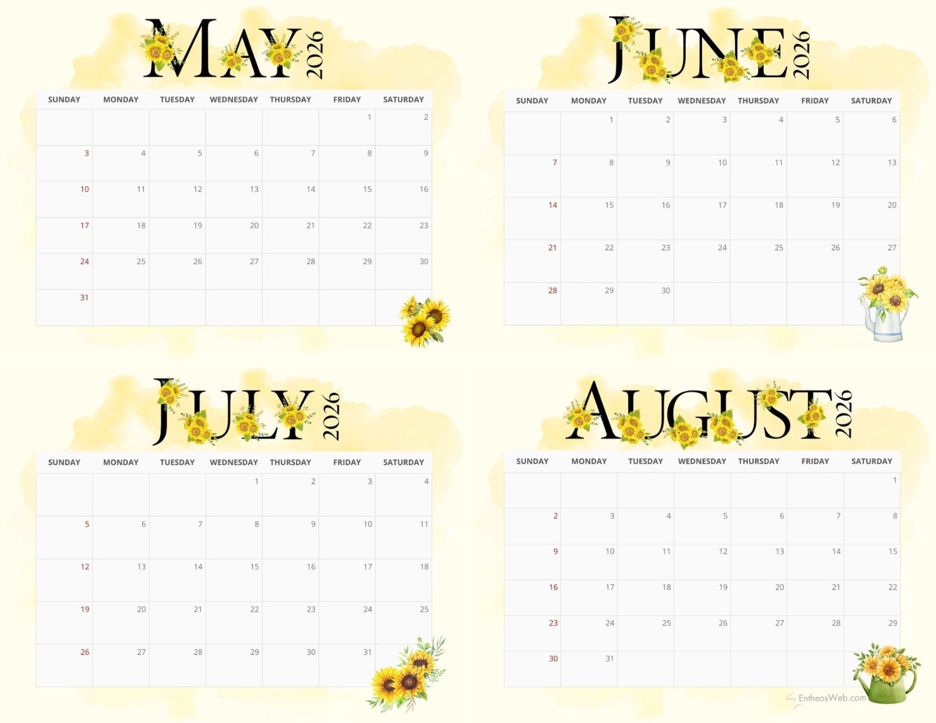 Brighten your year with our Sunflowers 2026 Monthly, 2-Monthly, 4-Monthly & 6-Monthly Printable Calendar & Planner PDF, beautifully designed by EntheosWeb and available for free download. Featuring cheerful sunflower-themed designs for each month of 2026, this printable calendar and planner adds a warm, positive touch to your daily planning. Perfect for organizing appointments, goals, and notes, it combines functionality with uplifting floral artwork. Simply download, print, and enjoy a stylish and practical way to stay organized all year long with this free sunflower calendar and planner.