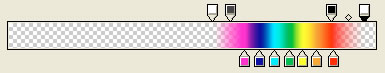 Drag on these color tabs and reduce the width and opacity using the opacity tabs above. Experiment the different tab stops and you will have an idea what each tab stop is meant for. If you wish to remove any tab stop just drag the tab stop out of the window.