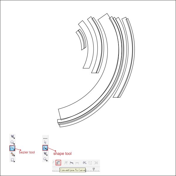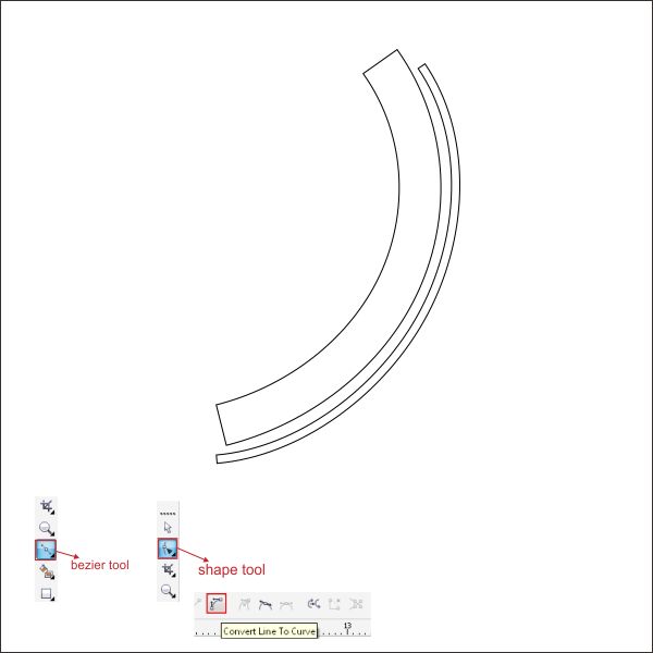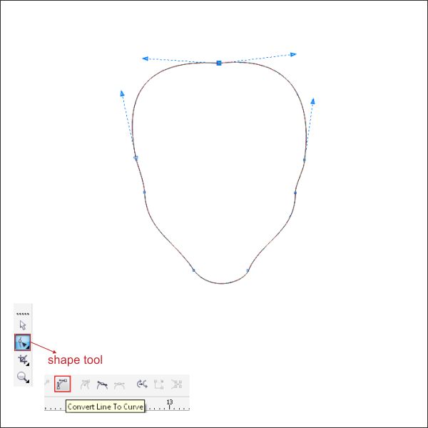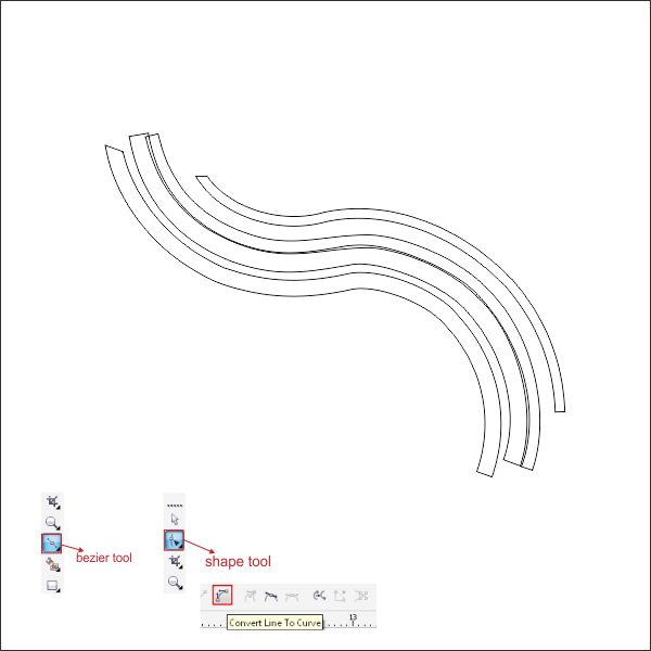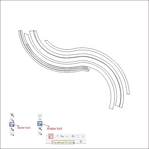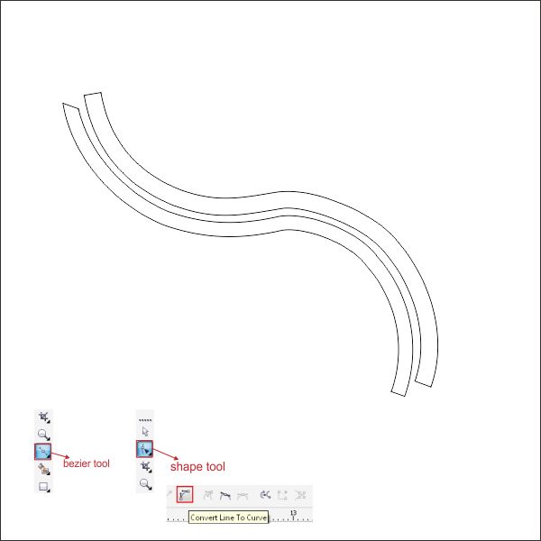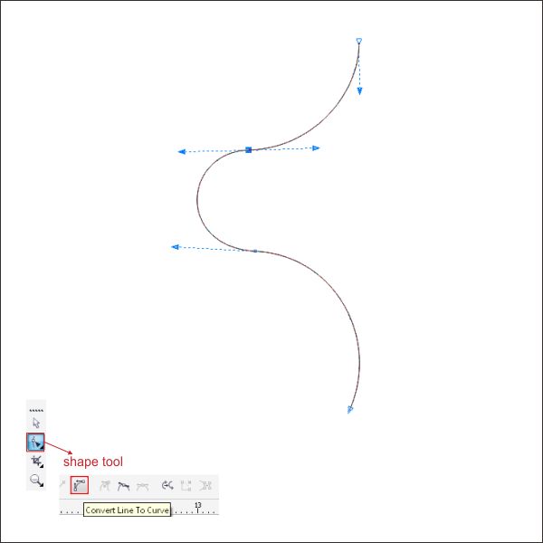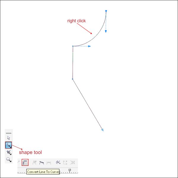 After that Right click on the upper line and find ” Convert to curves “, now you will see an arrow on the corner, click and drag it using ” Shape Tool ” to curve the line.