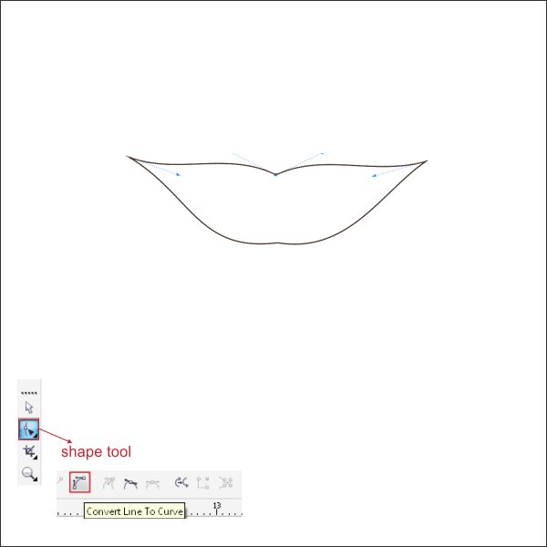 Shape it using ” Shape Tool ” untill it looks like an upper lips.