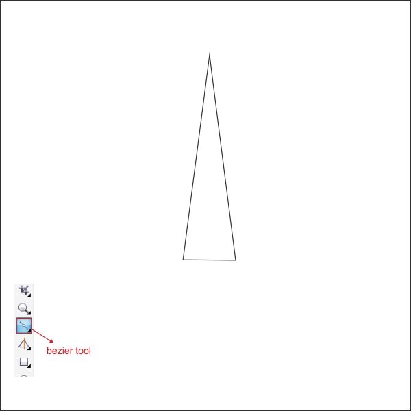After that create a Triangle shape using ” Bezier Tool ” in the left toolbar, point and click to create the shape, make sure the last click is connected with the first, or else you cannot put color in it.