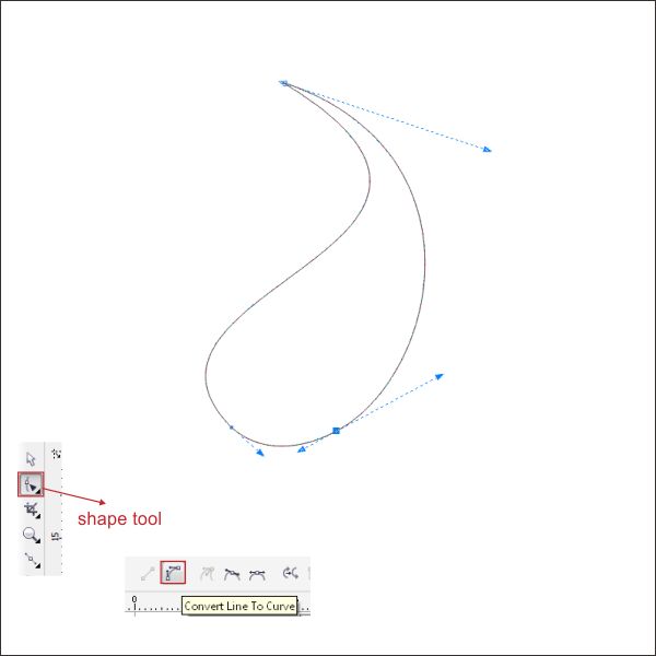 Go to the ” Shape Tool ” in the left toolbar, and right click the middle left side of the box shape, after that go to the upper toolbar and find ” Convert to Curve “.