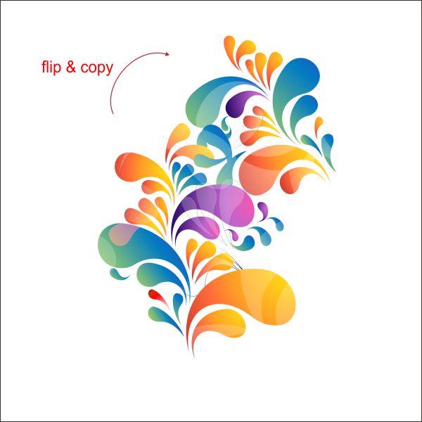 After that select all the elements, flip and copy it similar like below, make sure that the copied elements are smaller than the original.