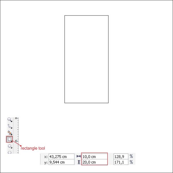 Now that we have our worksheet set, now we will begin to create the Front Side, first go to the “Rectangle Tool “, you can found it on the left toolbar, make a box shape and then make the box shape resized into 10 x 20 cm.